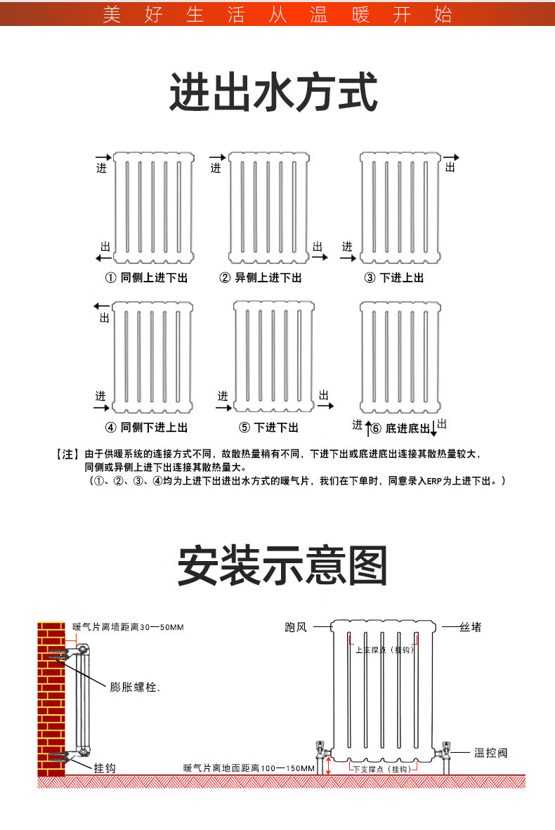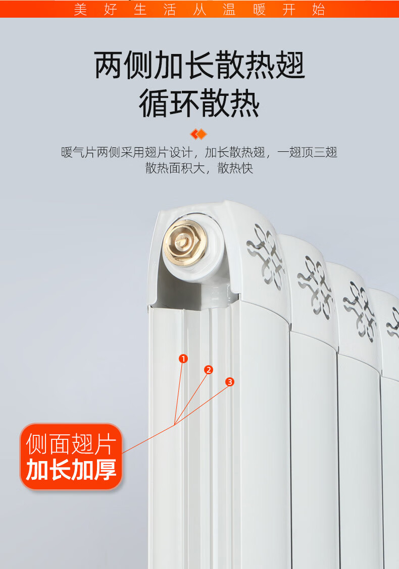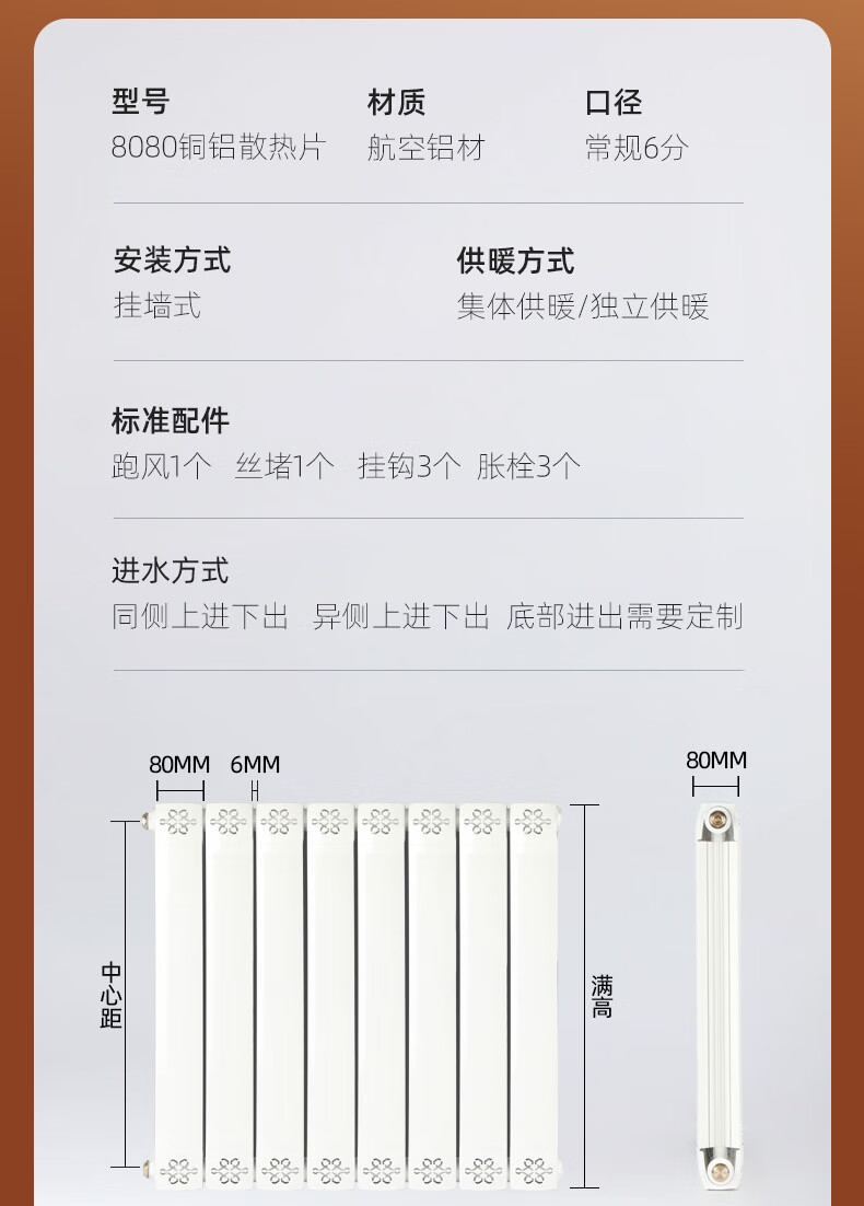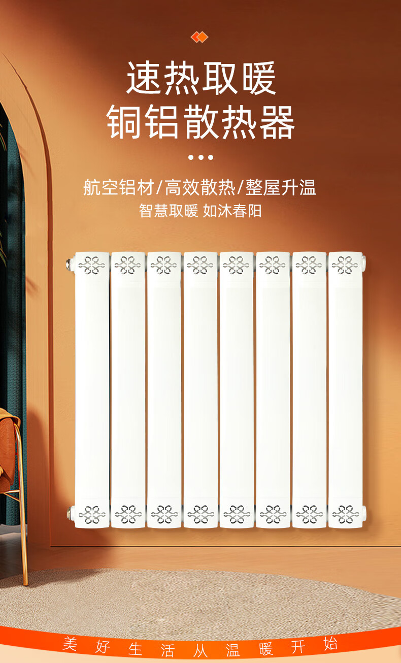 Radiator, household water heating, copper-aluminum composite radiator, wall-mounted boiler radiator, bathroom floor heating, central heating, horizontal center distance 6006 columns (height 65, width 52cm)
