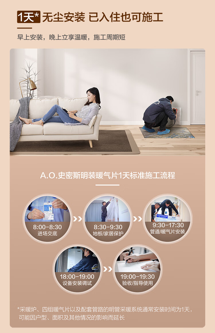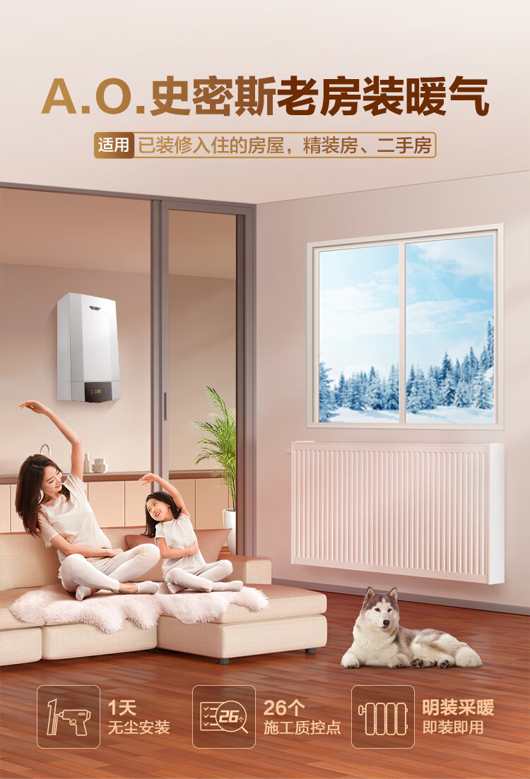 Millet Chengdu radiator household water heating whole house heating ao Smith wall-mounted boiler floor heating system household complete equipment appointment door-to-door design