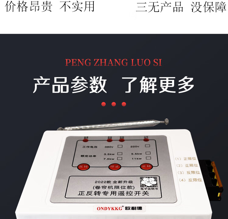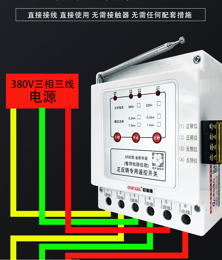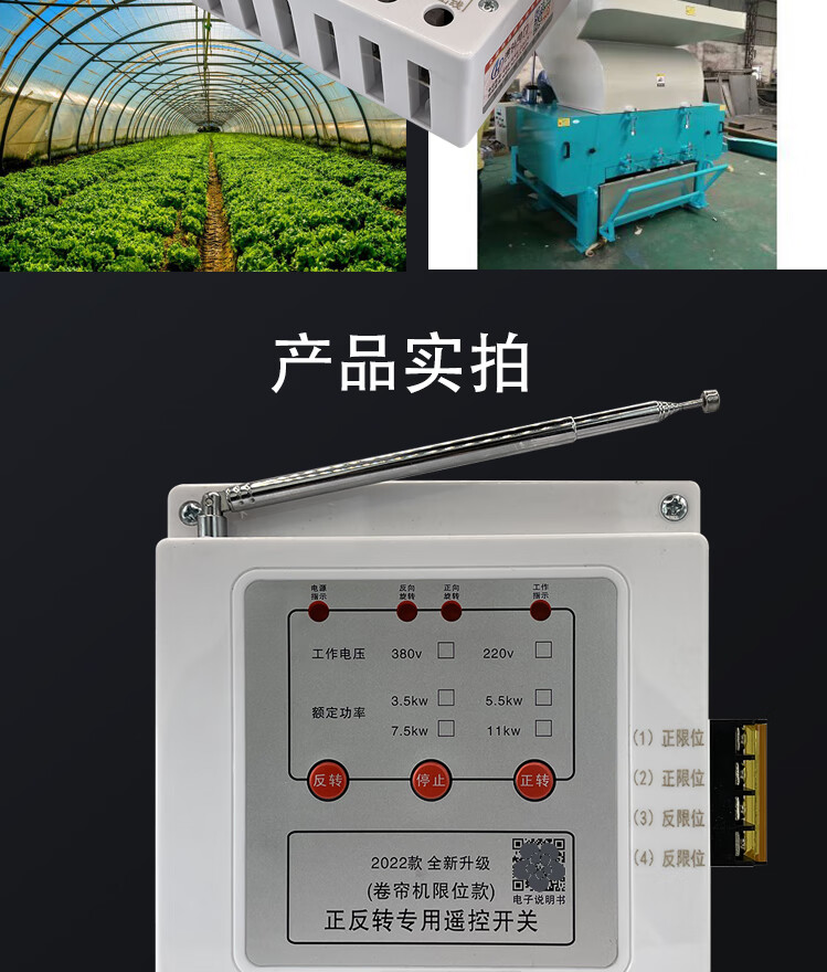 Greenhouse roller shutter machine forward and reverse remote control 380v three-phase reverse motor forward and reverse with safety limit peak three-phase 3.5kw1km single remote control limit model (