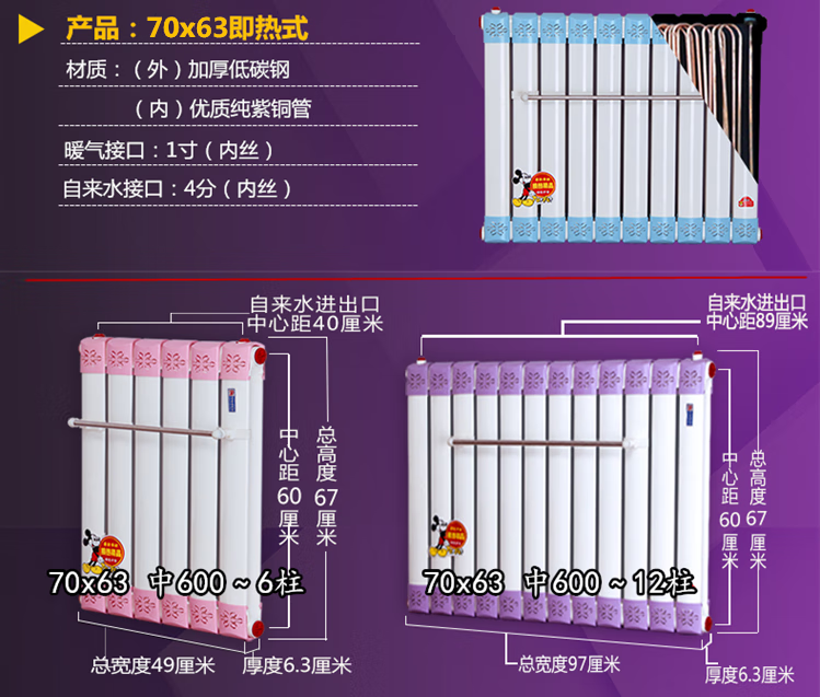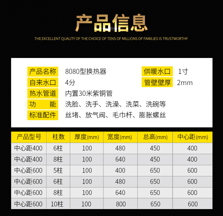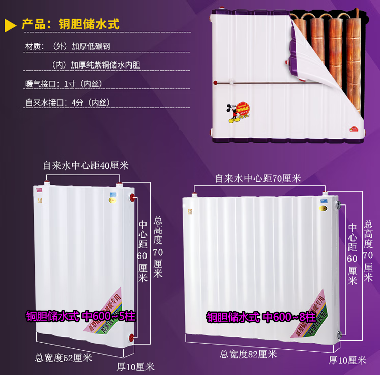 Millet radiator household heat exchanger over-water heating copper-aluminum hot water exchanger floor heating water storage type instant hot bath cooling square box 6008 column water storage type galvanized inner tank