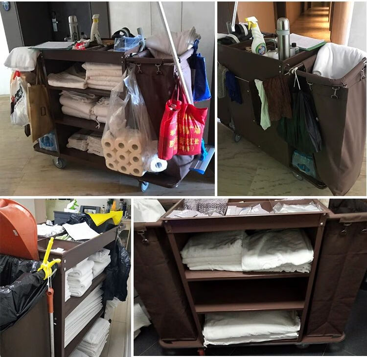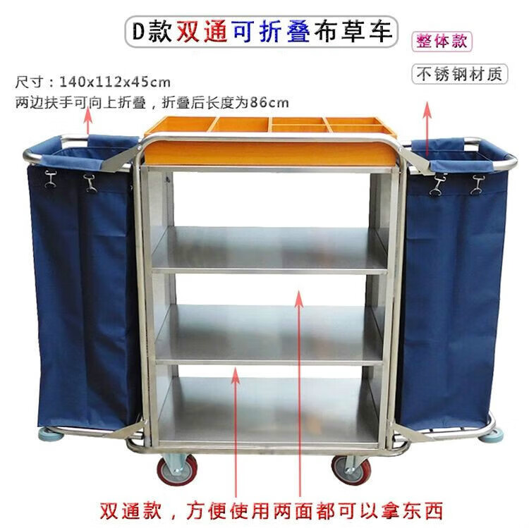 Hotel linen cart, hotel room service cart, stainless steel cart, double-sided cart, cleaning car, work cart, luxury iron double-sided service cart