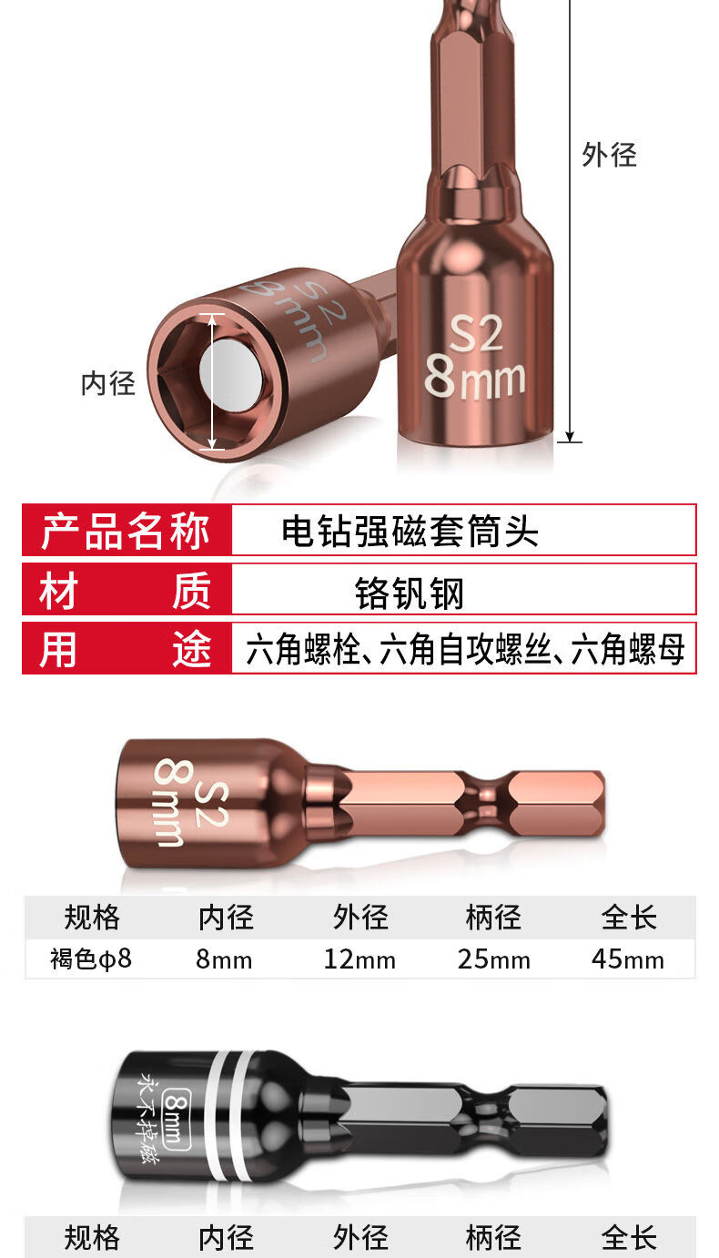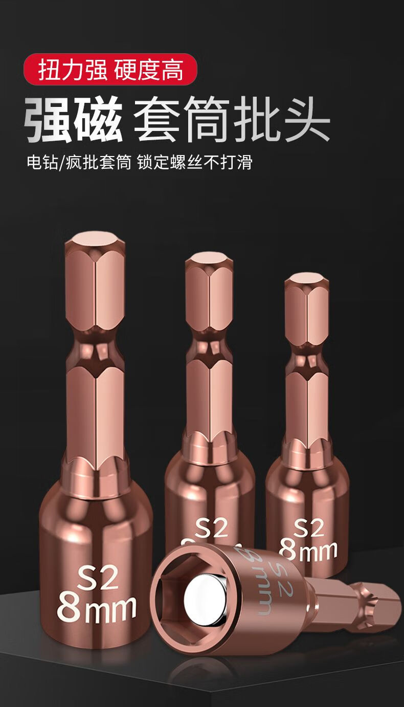 Delixi Electric Wrench Socket Head Hexagonal Wind Batch Socket Hand Electric Drill Strong Magnetic Screwdriver Bit Head Delixi S2 Material 8mm Super Magnetic 3 Pieces