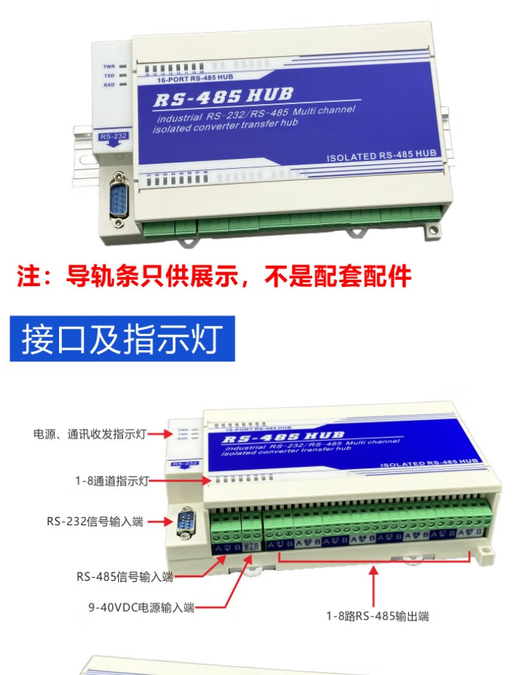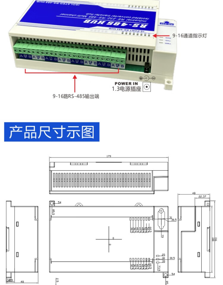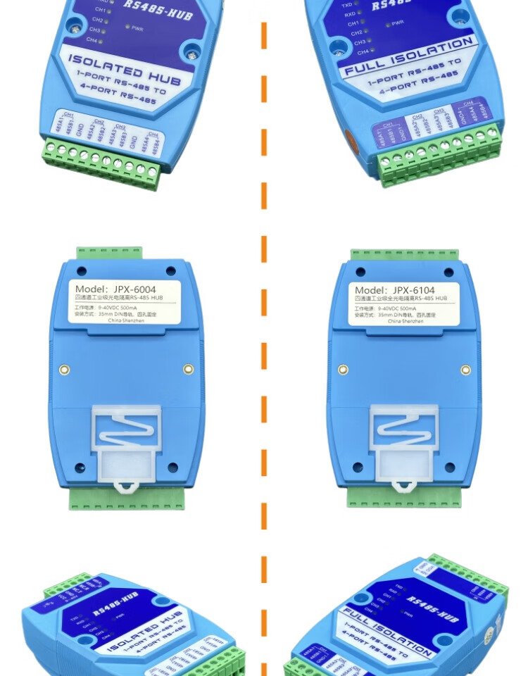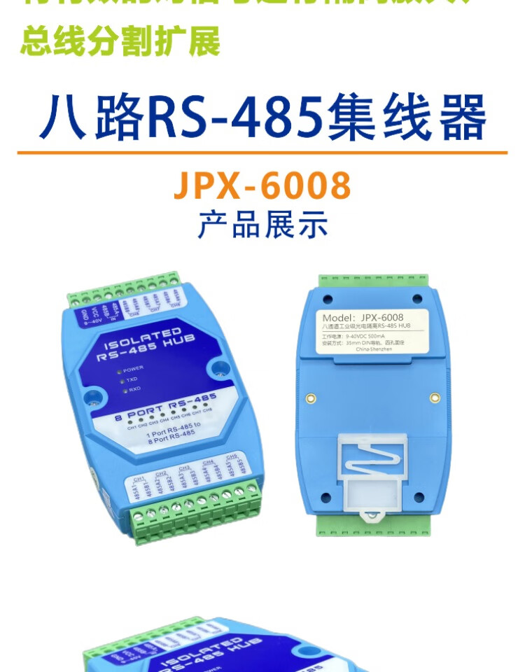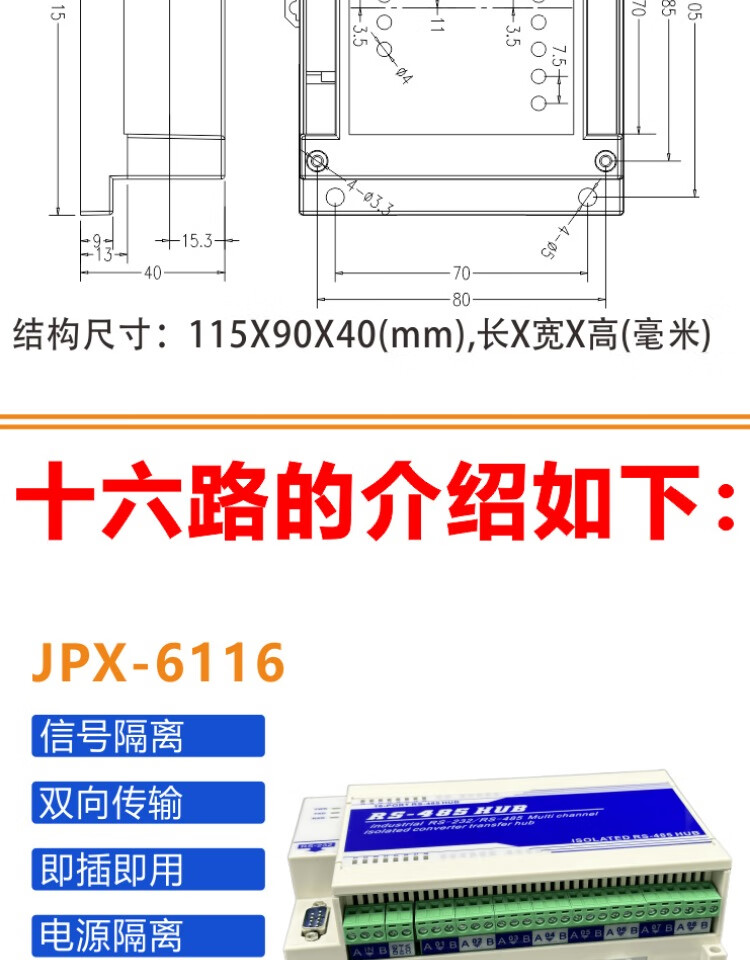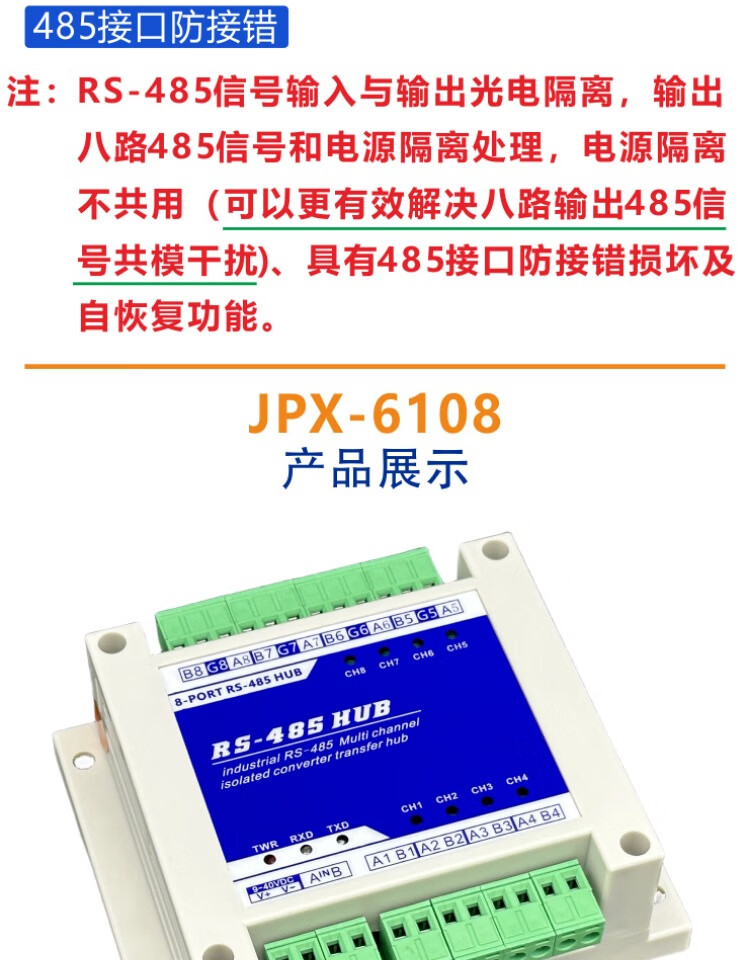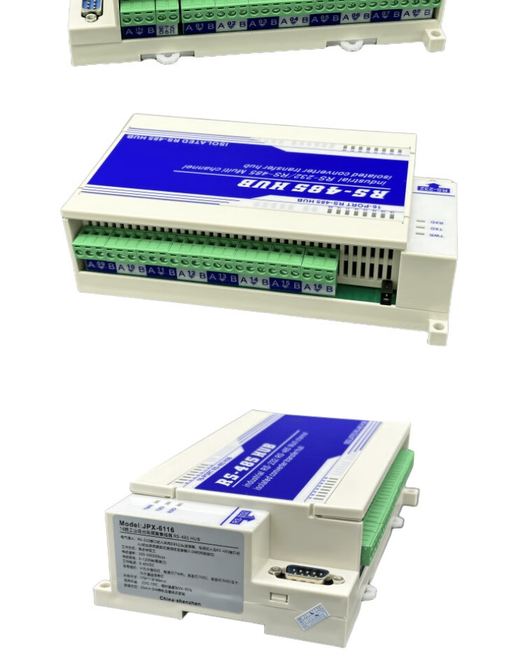 Industrial grade 2/4/8/16-channel RS485 hub photoelectric isolation distributor bus segmentation extended lightning protection 16-channel RS485 hub JPX-6116 26dBm