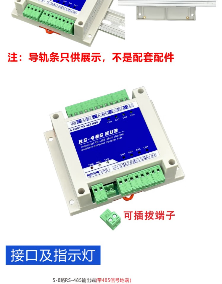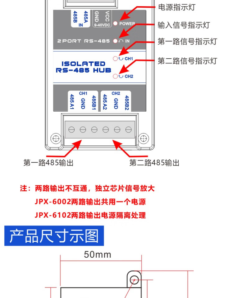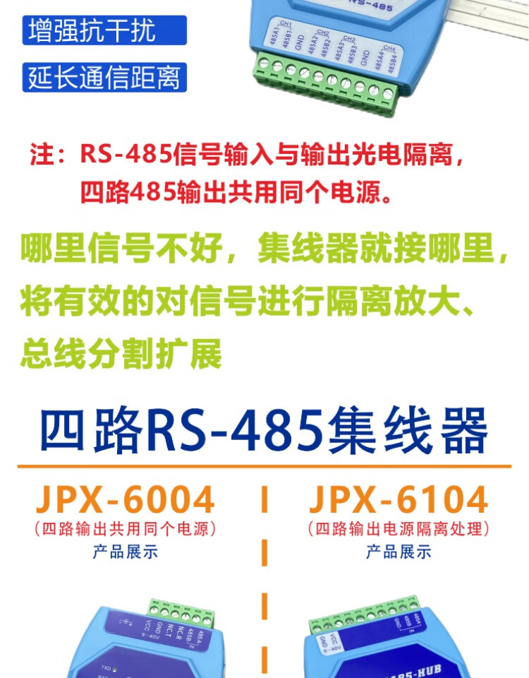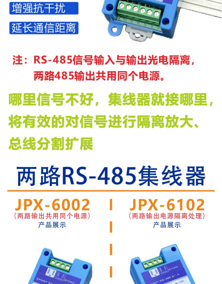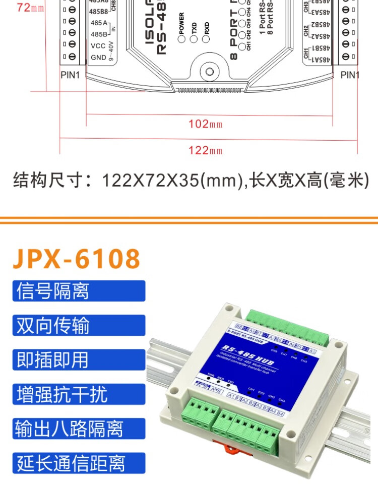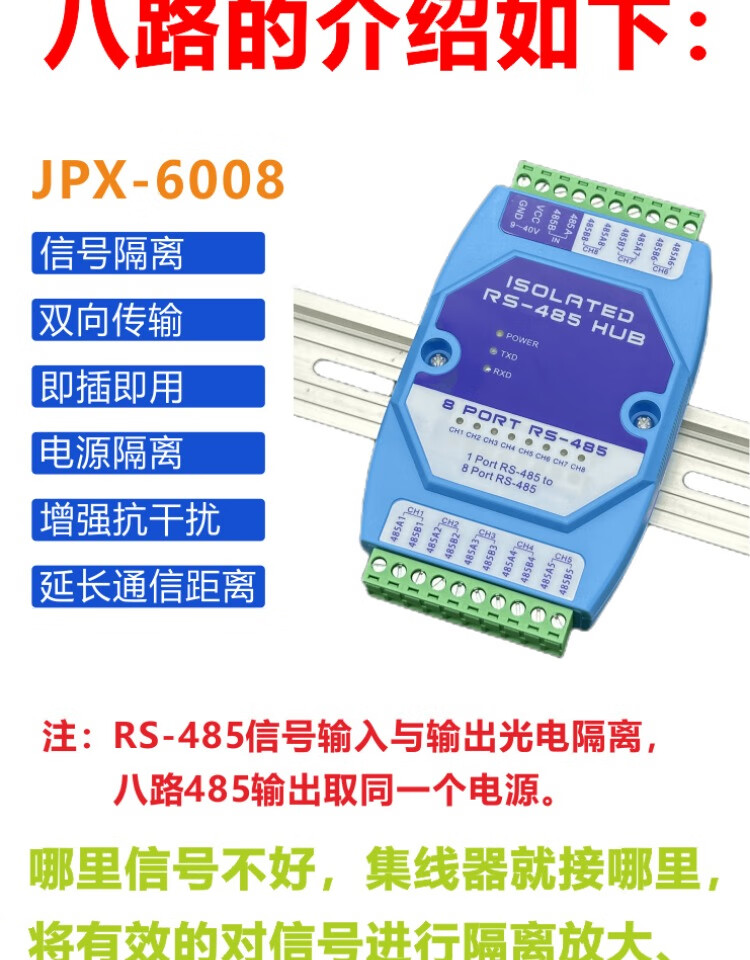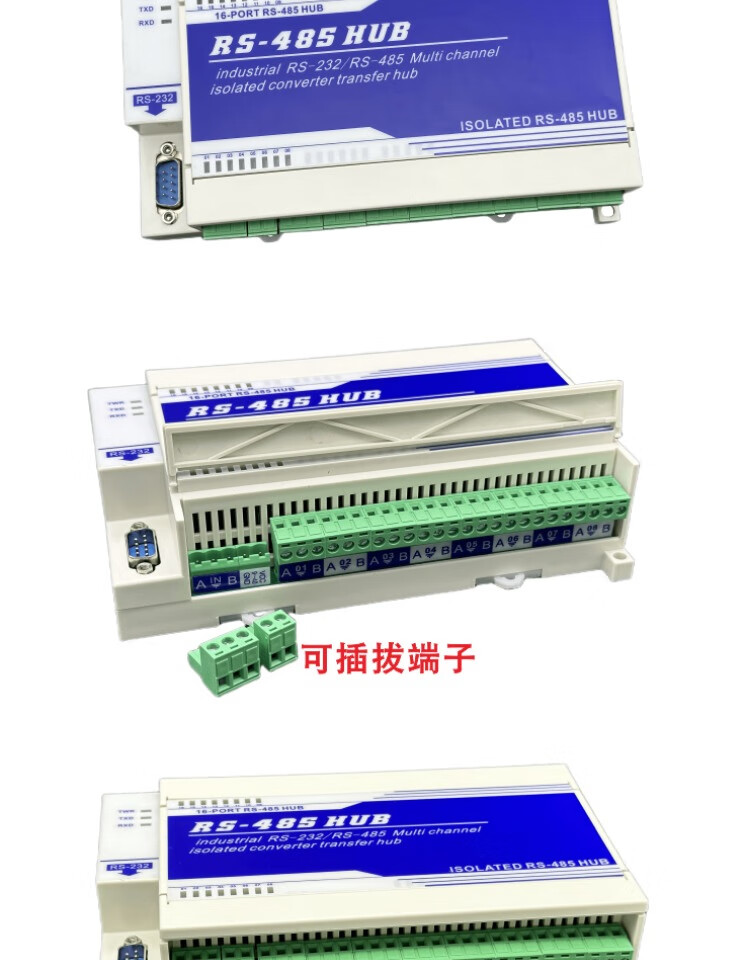 Industrial grade 2/4/8/16-channel RS485 hub photoelectric isolation distributor bus segmentation extended lightning protection 16-channel RS485 hub JPX-6116 26dBm