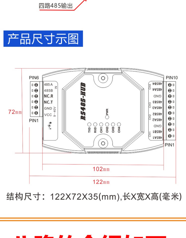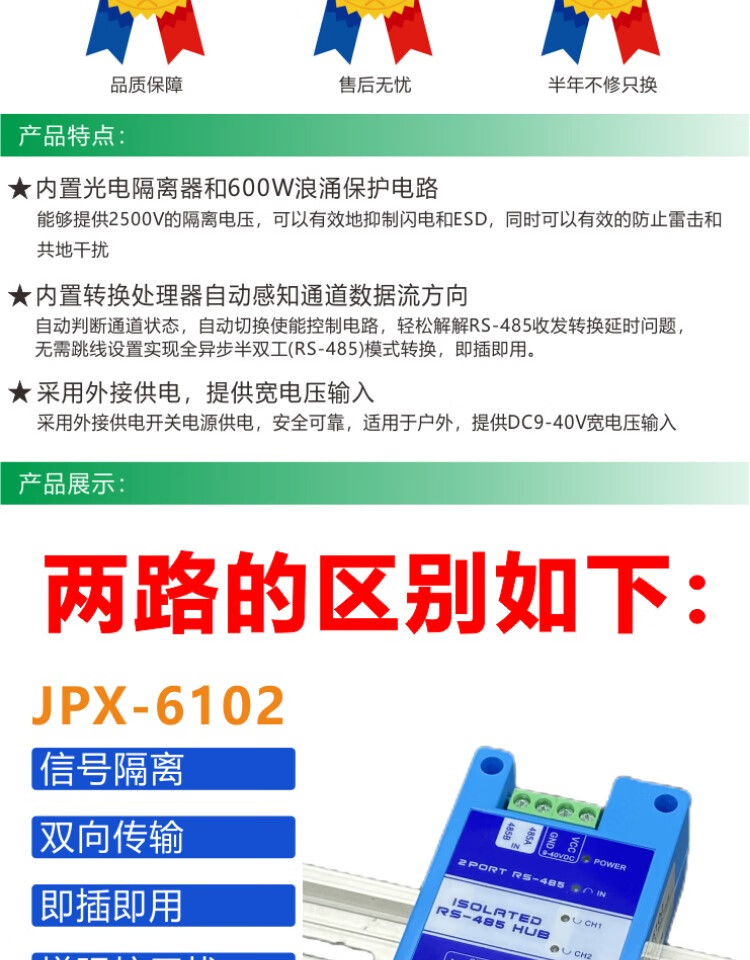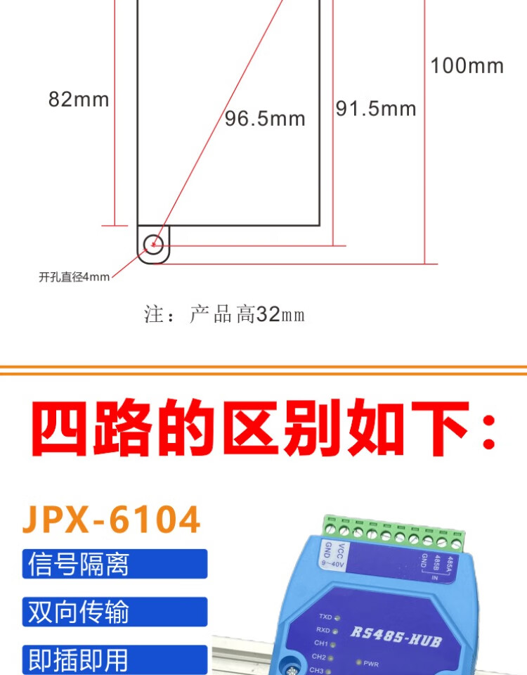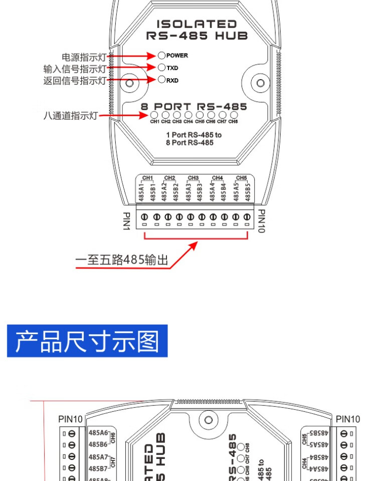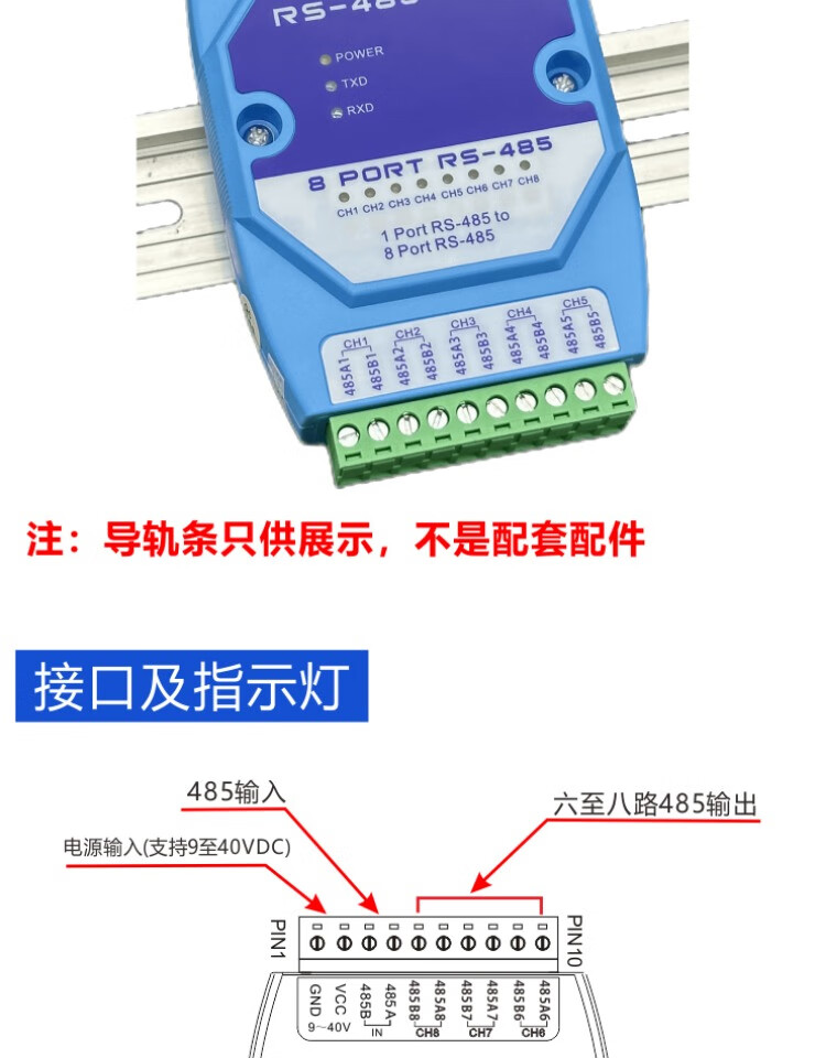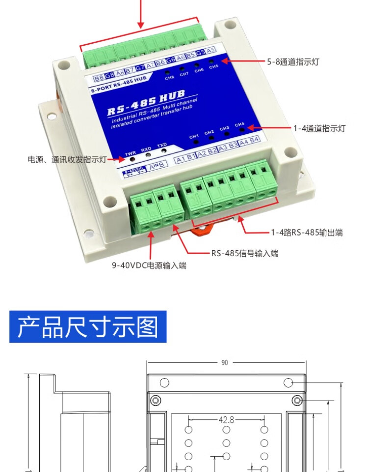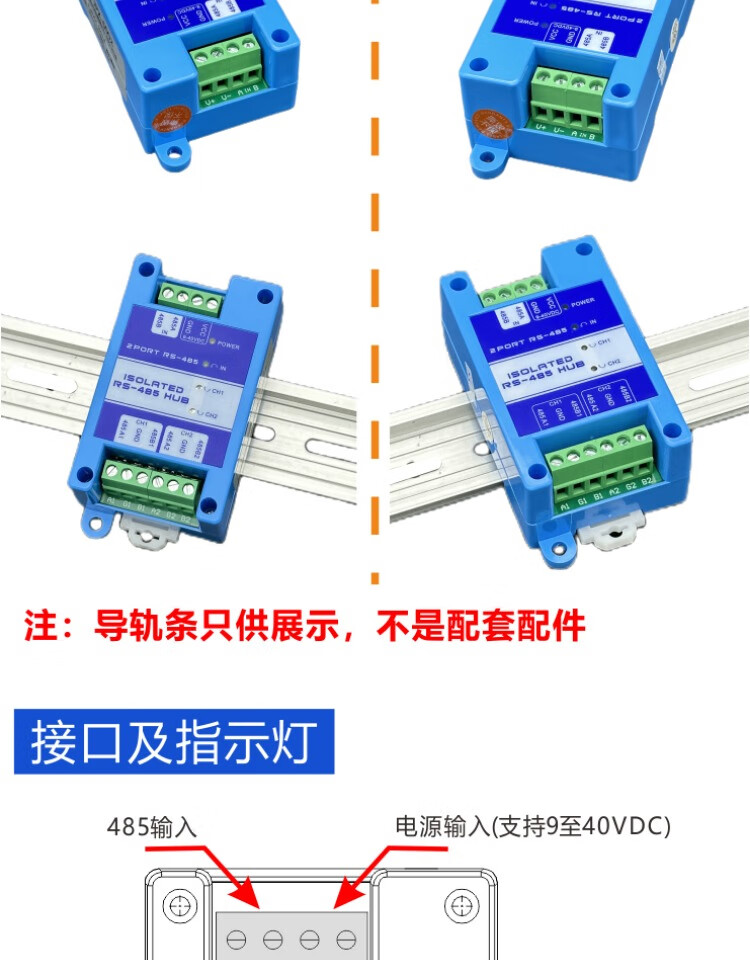 Industrial grade 2/4/8/16-channel RS485 hub photoelectric isolation distributor bus segmentation extended lightning protection 16-channel RS485 hub JPX-6116 26dBm
