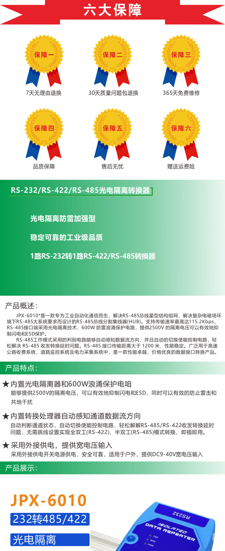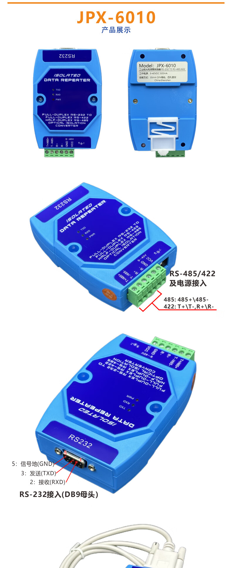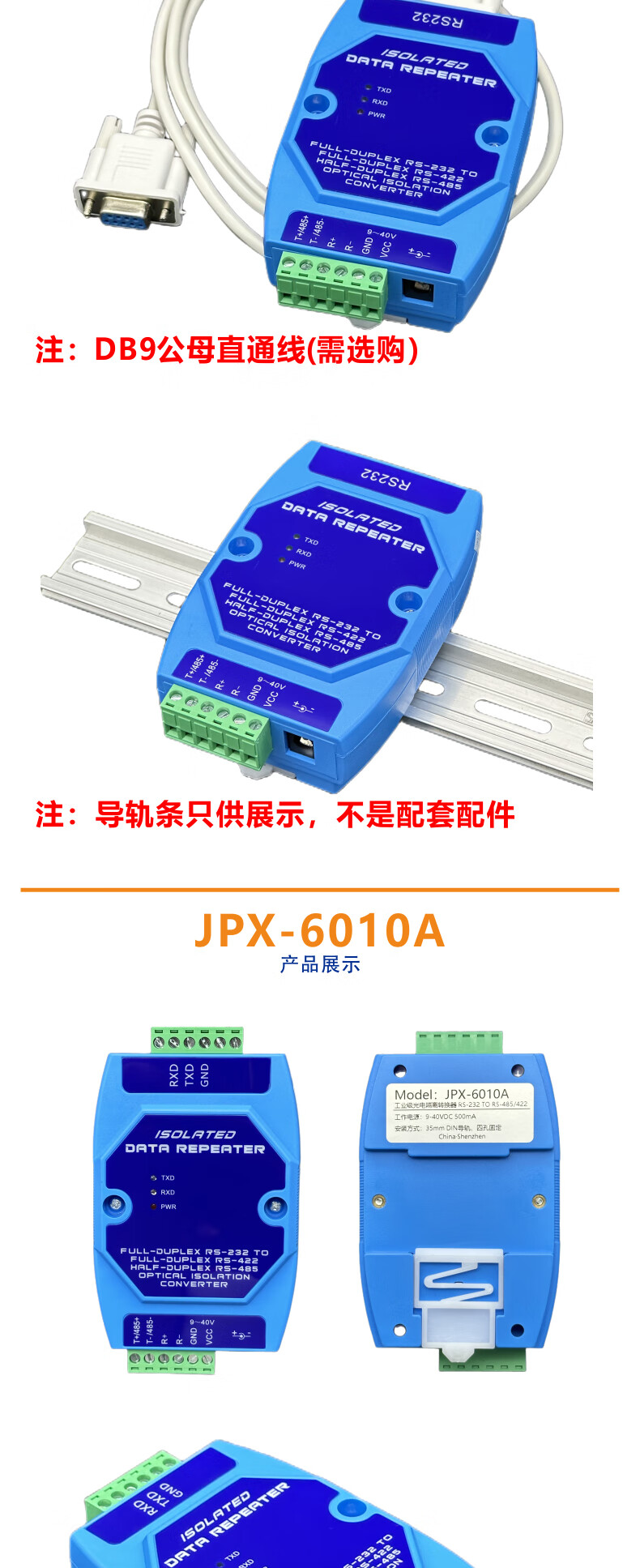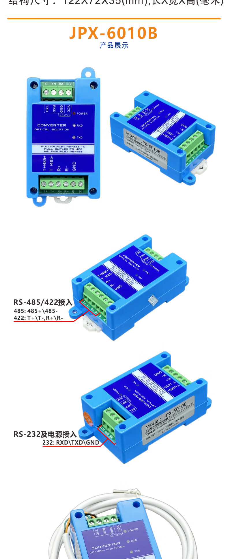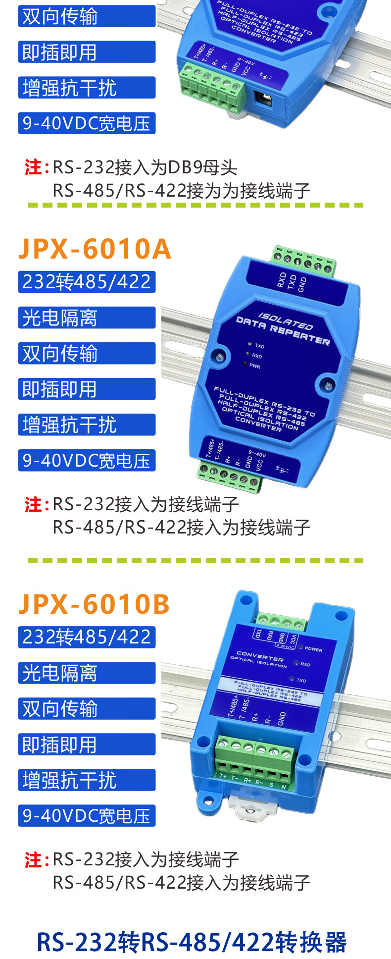 232 to 485/422 photoelectric isolation converter active lightning protection RS232 to RS485/RS422 bidirectional conversion host JPX-6010A