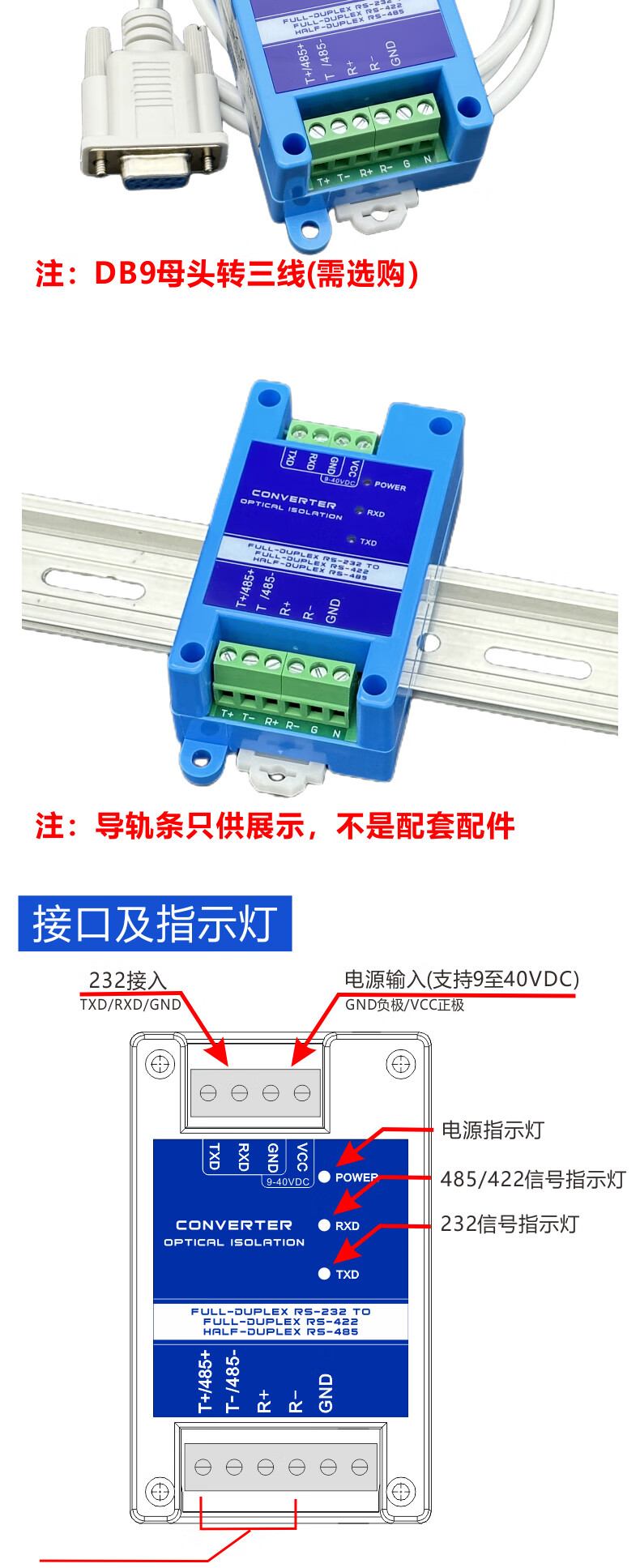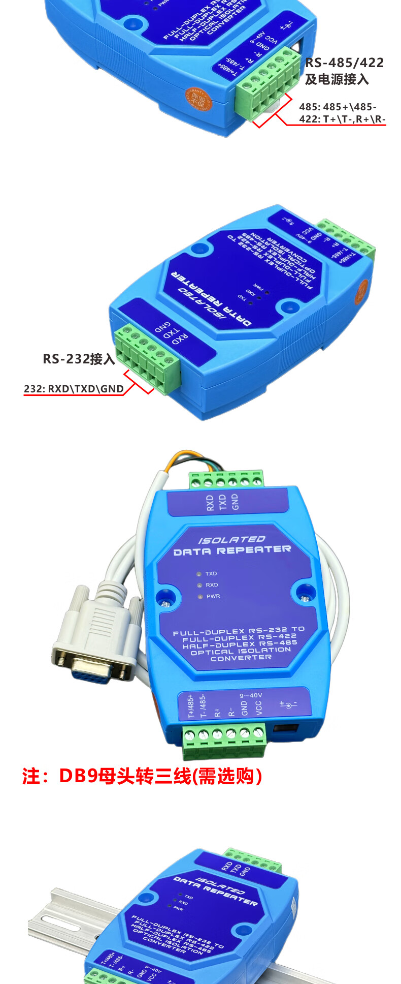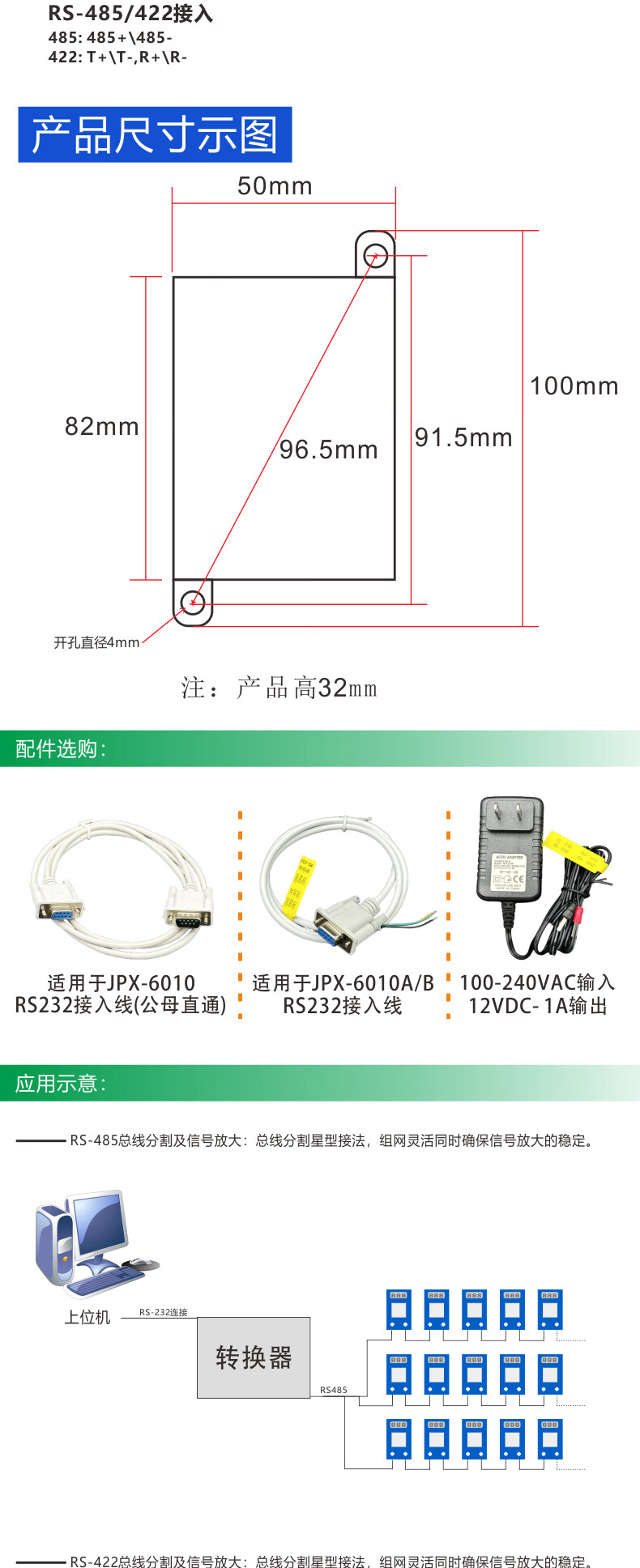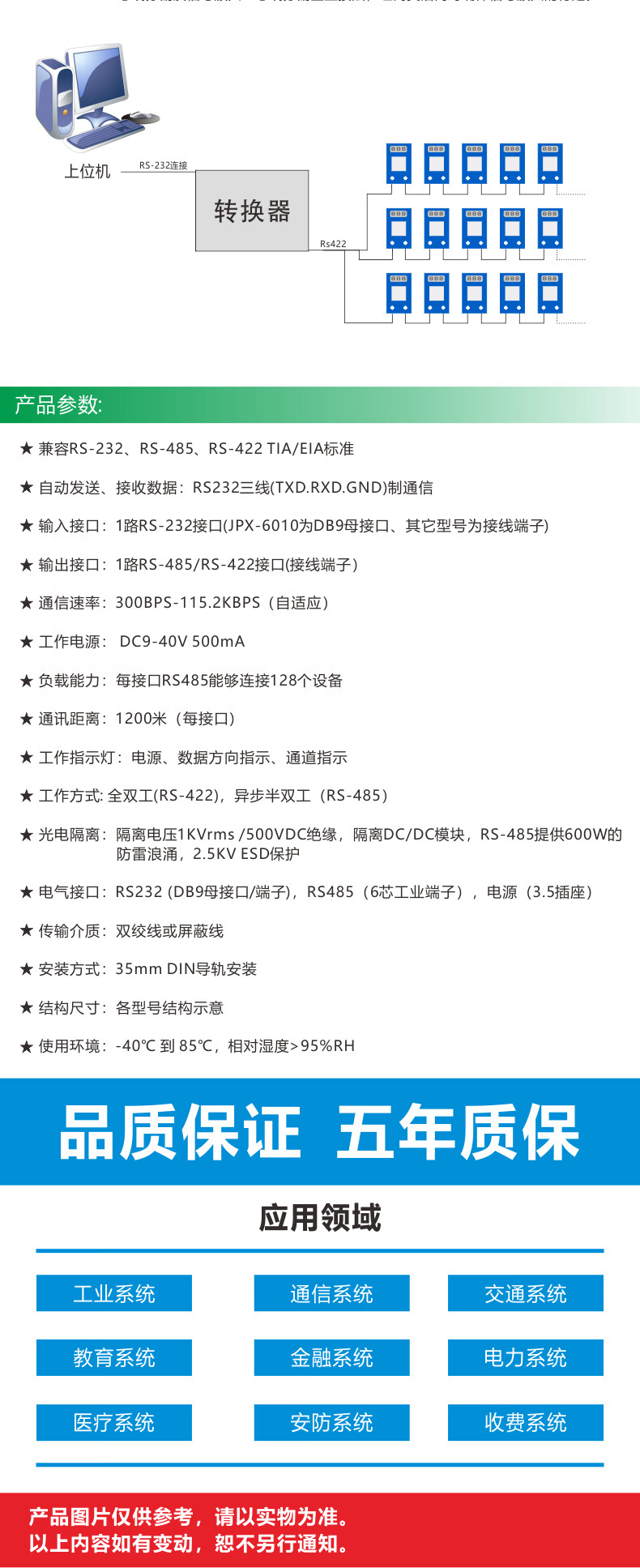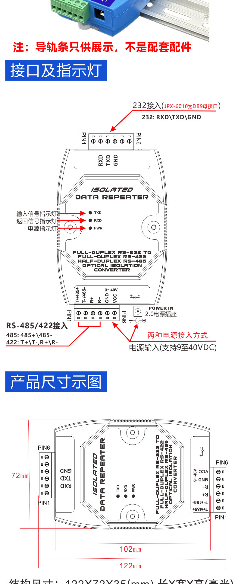 232 to 485/422 photoelectric isolation converter active lightning protection RS232 to RS485/RS422 bidirectional conversion host JPX-6010A