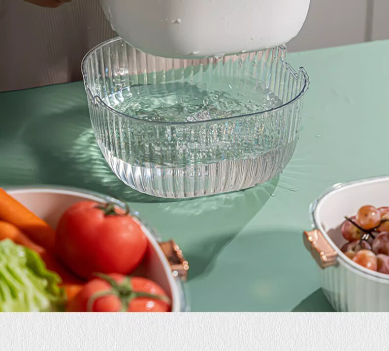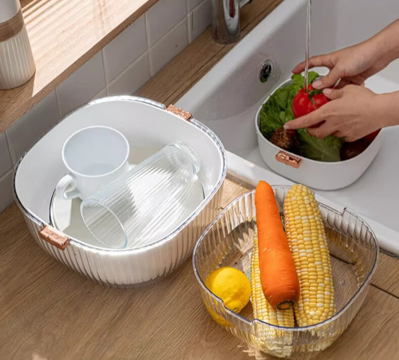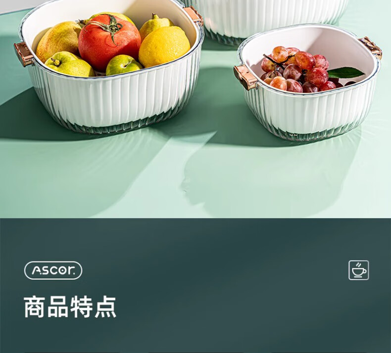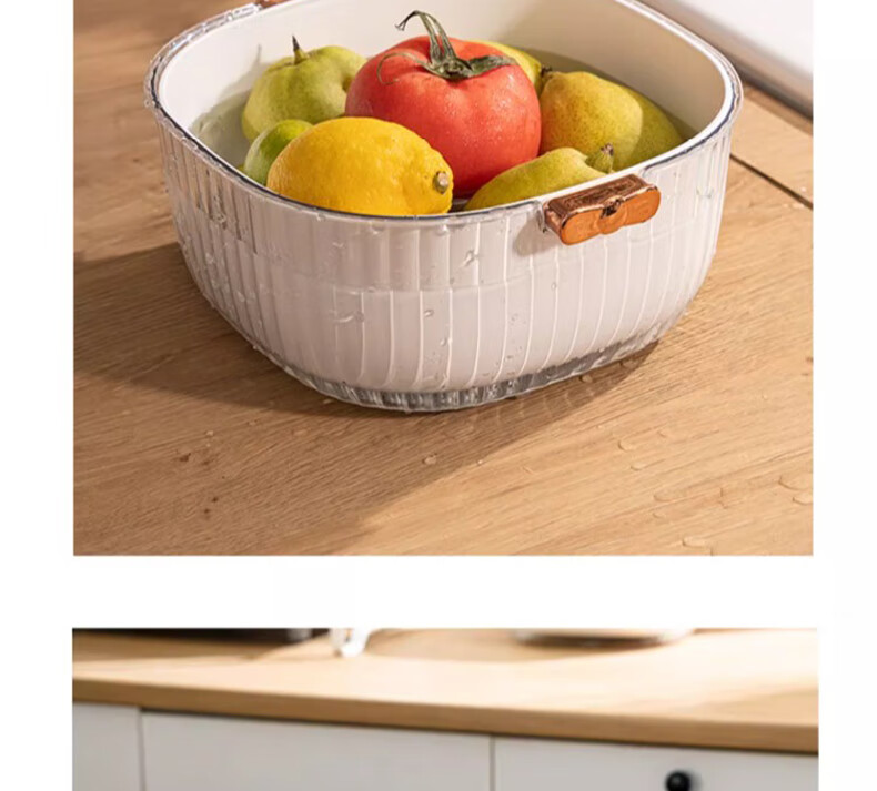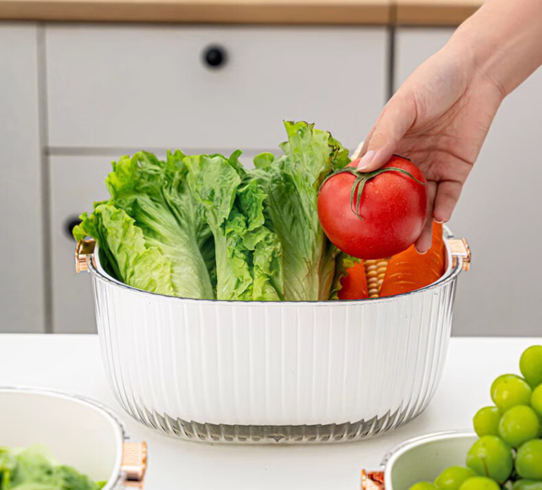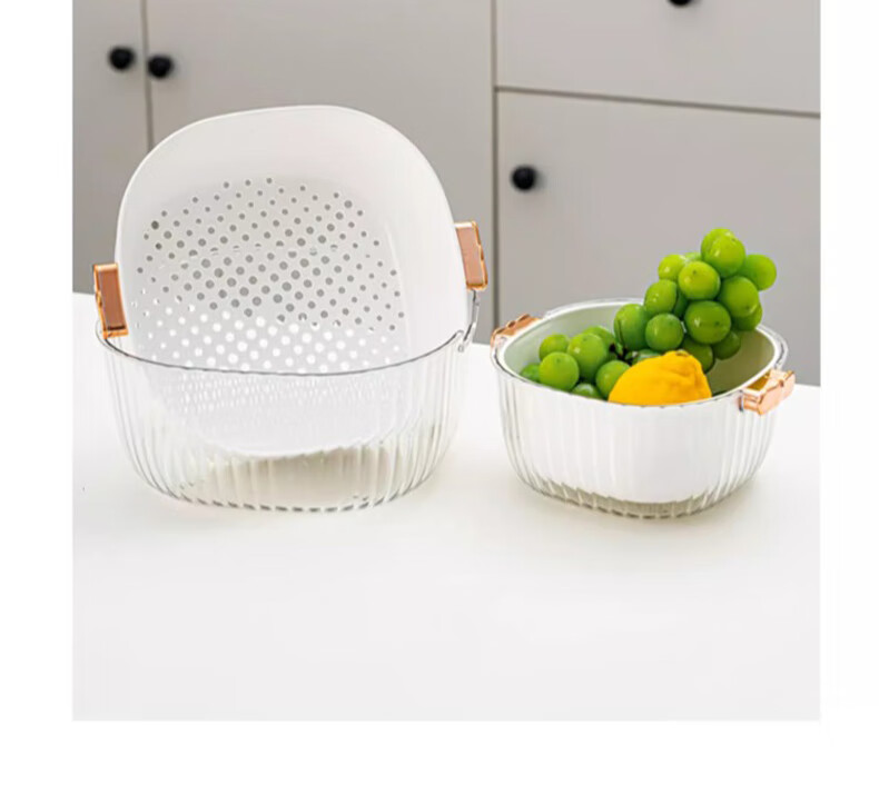 Ax washable vegetable basin drain basket fruit plate living room household water filter vegetable basket coffee table rice cleaning artifact double-layer basin sieve vegetable basin medium thickened double layer milk white