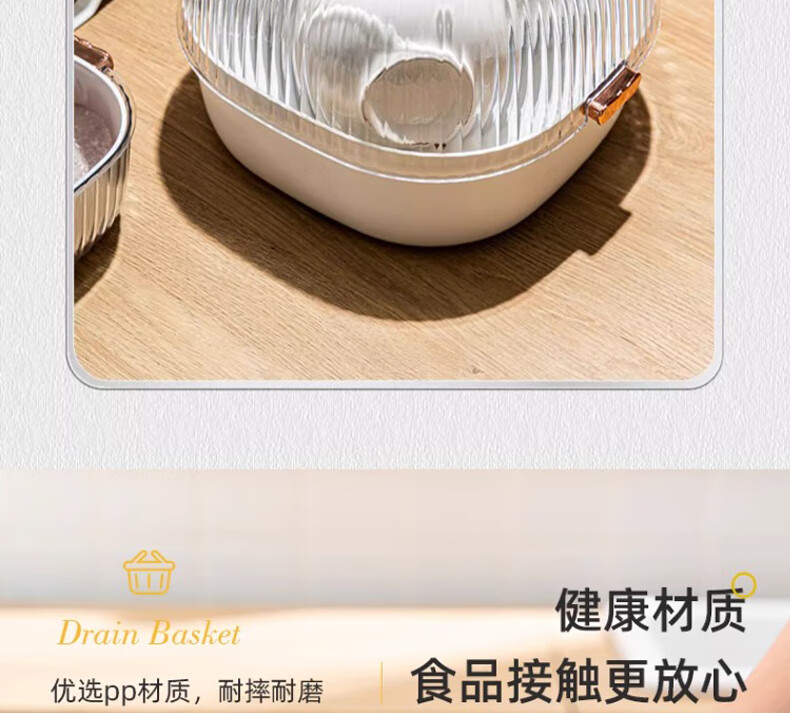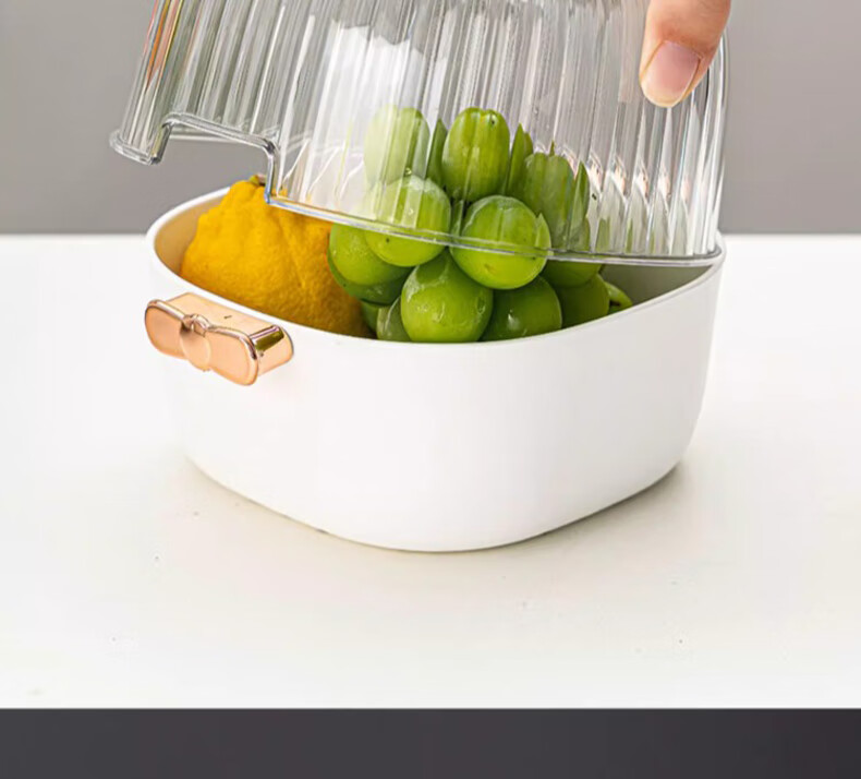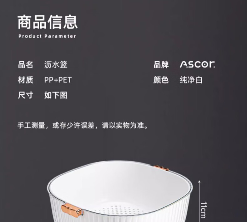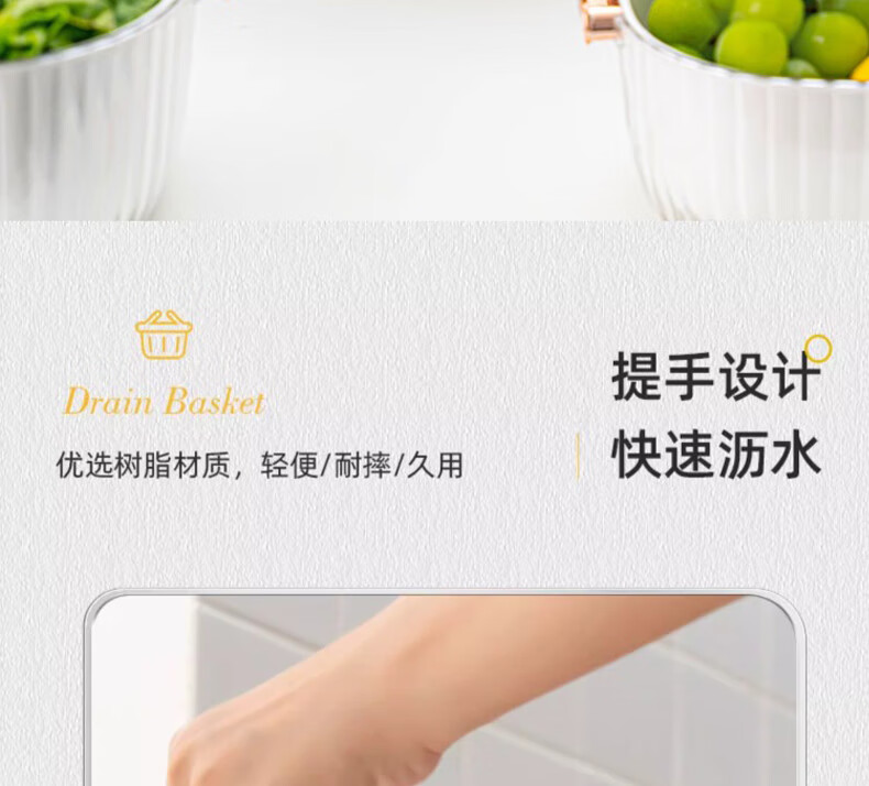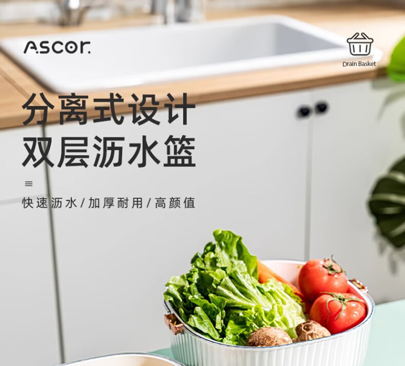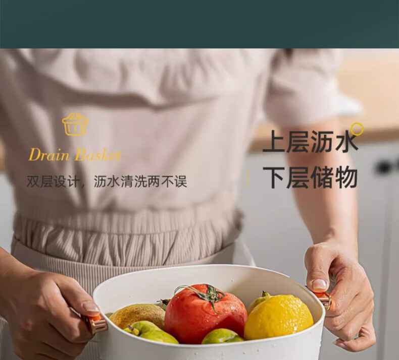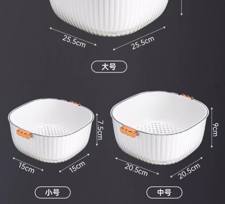 Ax washable vegetable basin drain basket fruit plate living room household water filter vegetable basket coffee table rice cleaning artifact double-layer basin sieve vegetable basin medium thickened double layer milk white