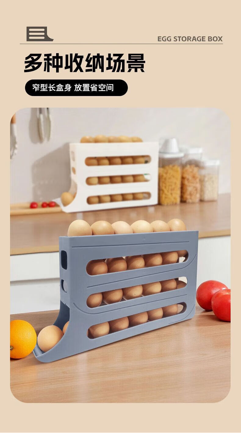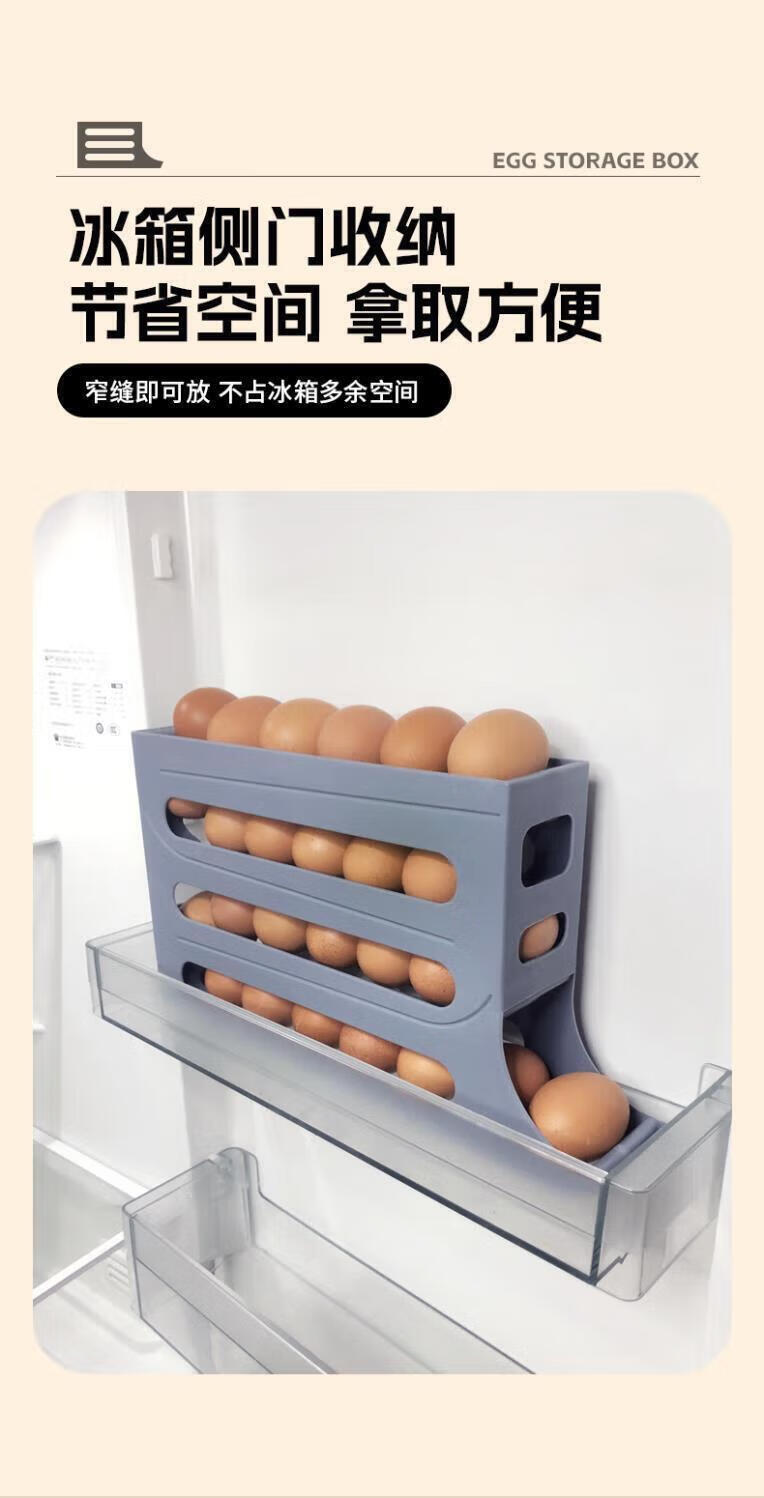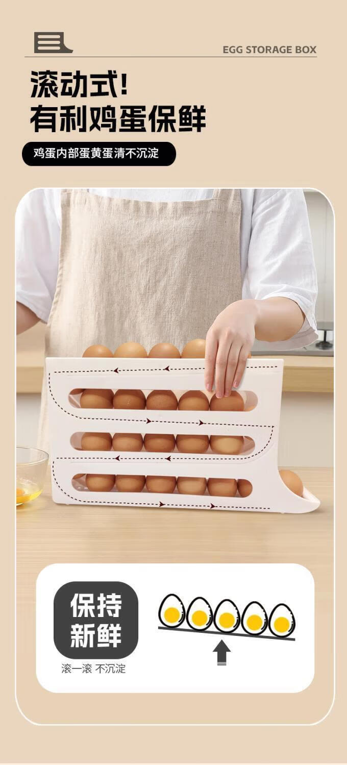 JIMANG egg storage box refrigerator side door storage box rolling egg food grade egg rack automatic rolling egg egg box crisper glacier white can hold 30 pieces/automatic rolling egg