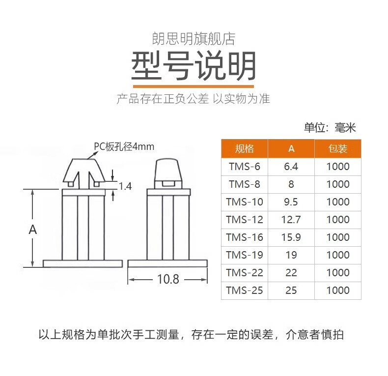 Langsiming flat bottom isolation column nylon PCB board isolation column plastic spacer column circuit board bracket support column fixed column TMS TMS-6 (100 pieces)