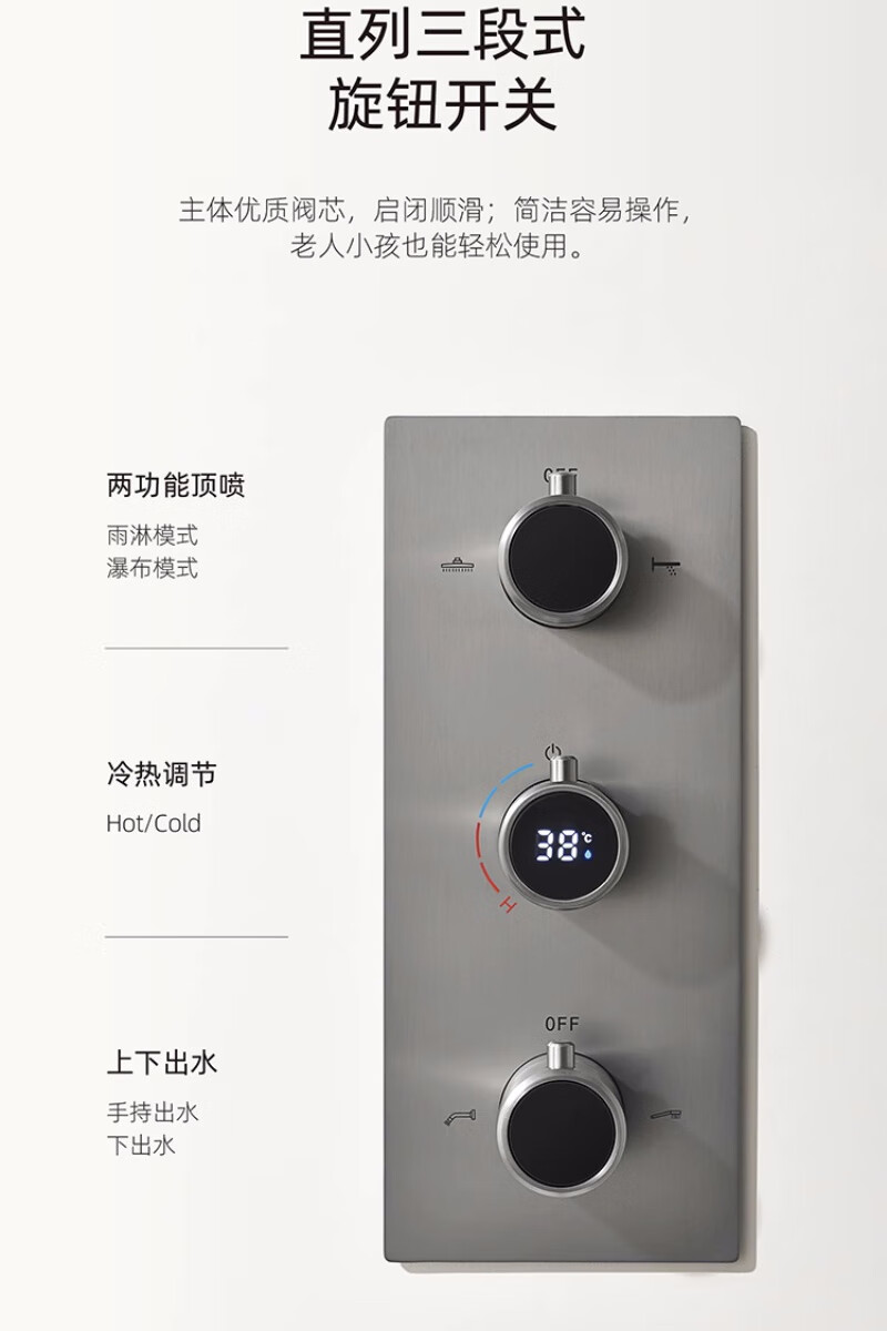 TOTO gun gray full copper concealed hot melt integrated pre-embedded wall shower set digital display shower faucet gun gray (3 functions hot and cold water)