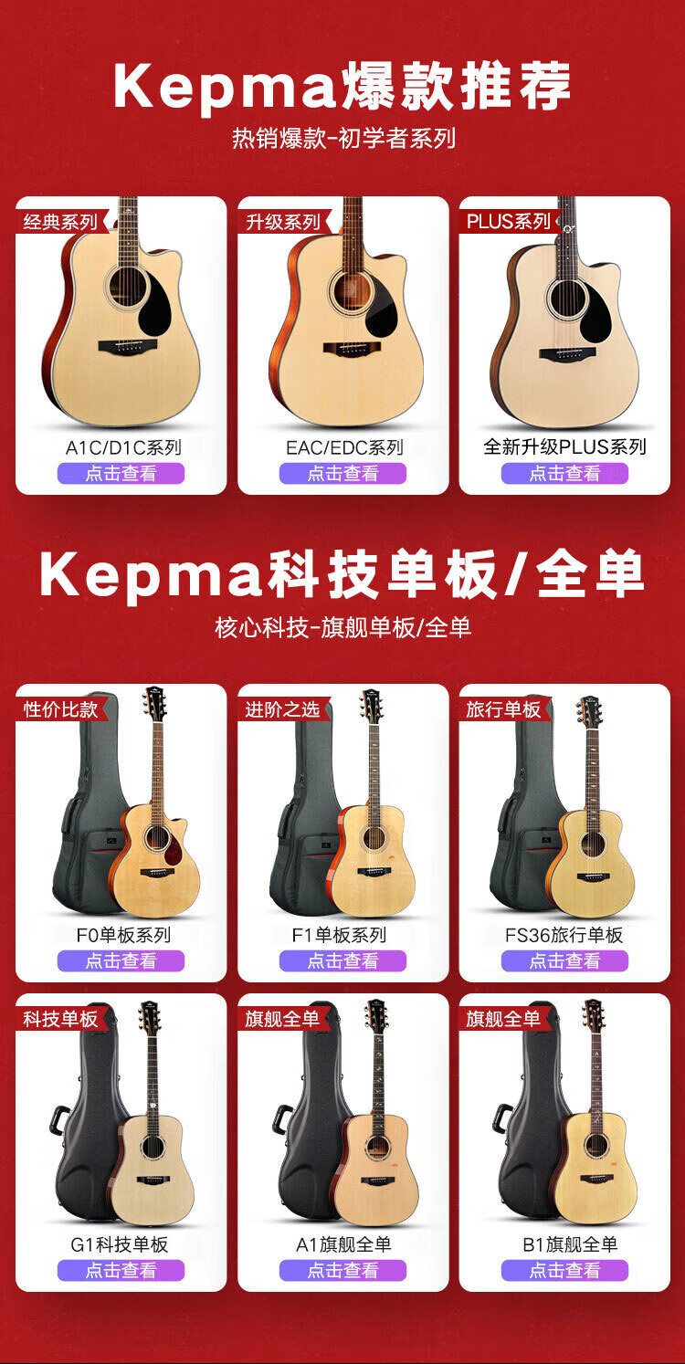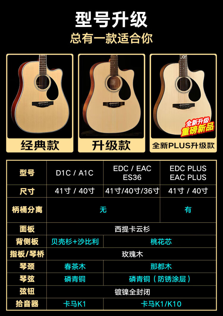 KEPMA EDC/EAC/D1C/A1C guitar flagship folk Kama Kama wooden guitar beginner electric box for men and women 36 inches children's model ES36 wood color