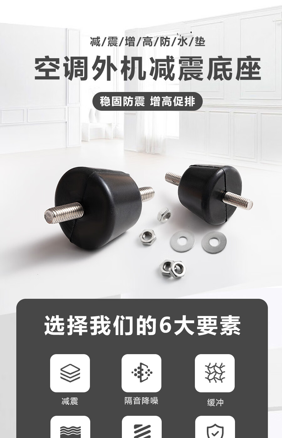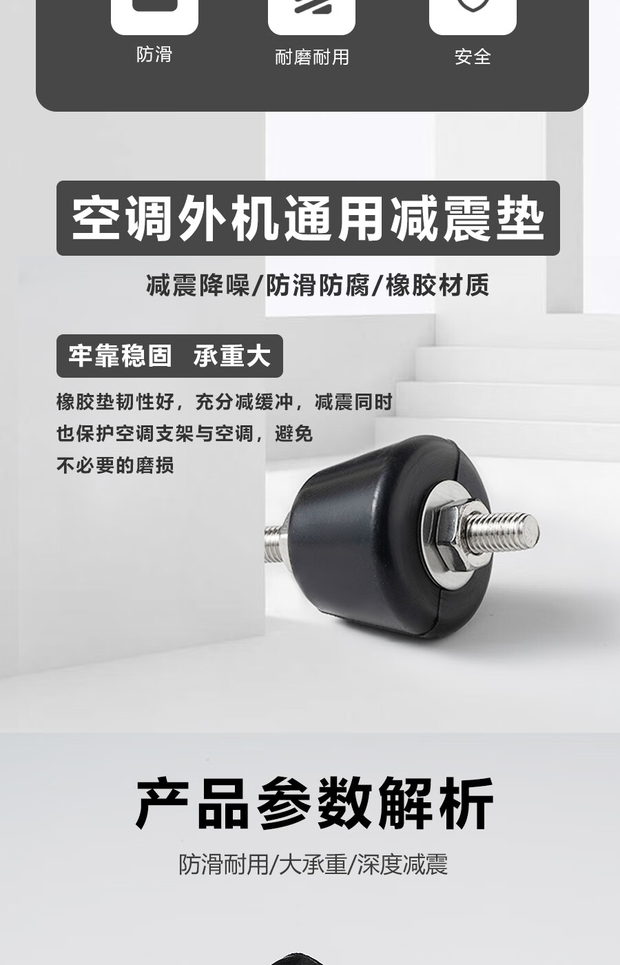 Suitable for Midea Haier Gree Xiaomi air conditioner outdoor unit bracket shock-absorbing pad soundproof shock-proof noise reduction anti-slip rubber pad with screw 1P 1.5P 2P 3P air conditioner available (201 stainless steel screw