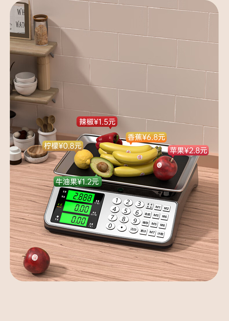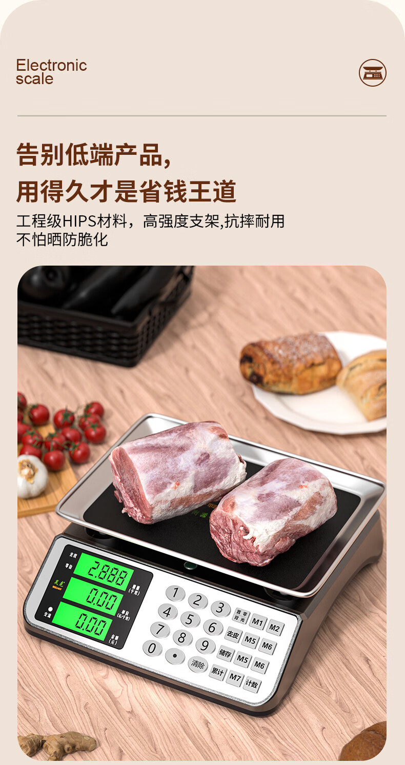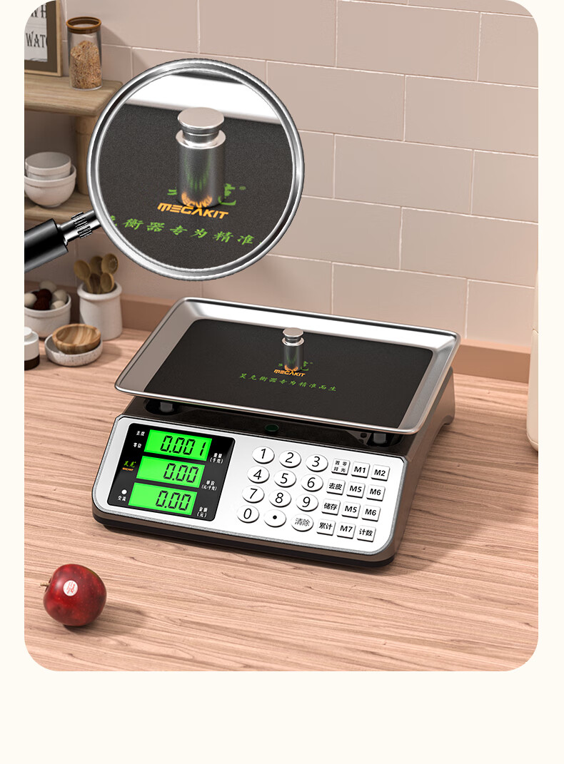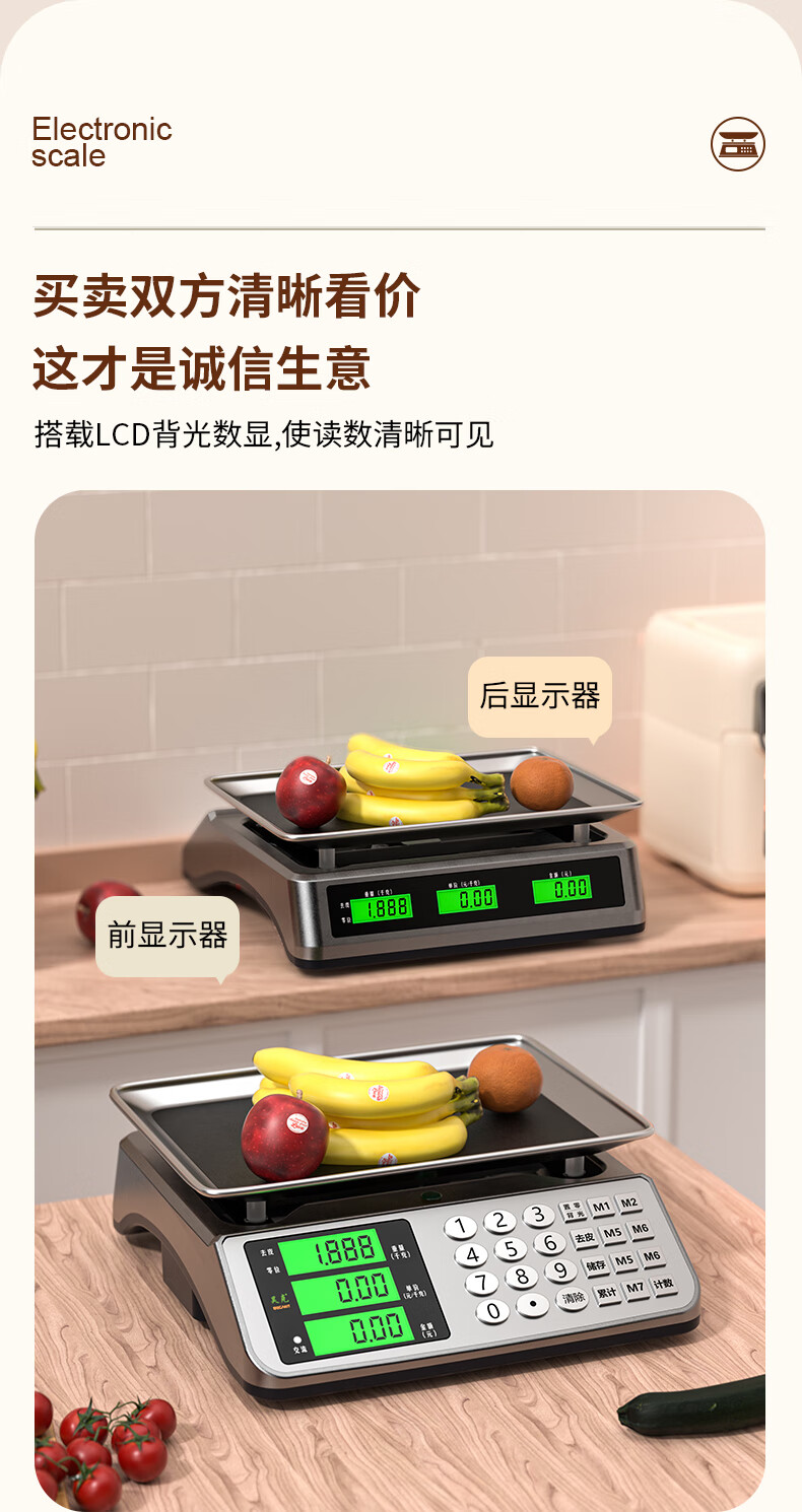 Haoke high-precision 30 kg electronic scale for commercial use, small scale, accurate 1 gram weighing scale, supermarket vegetable stall charging, three-proof model - LCD black characters - Steel flat plate - Stable 1 gram accuracy