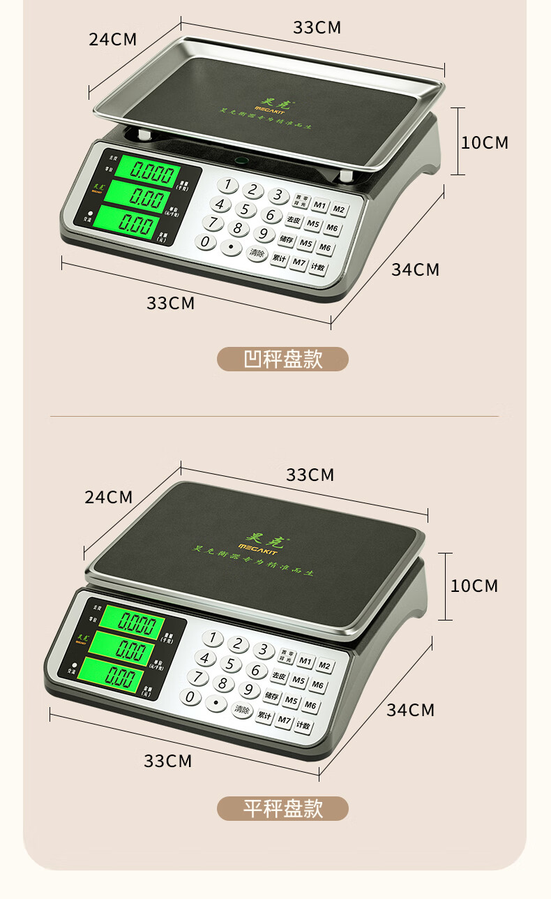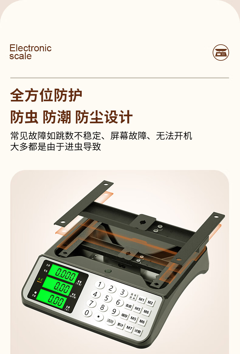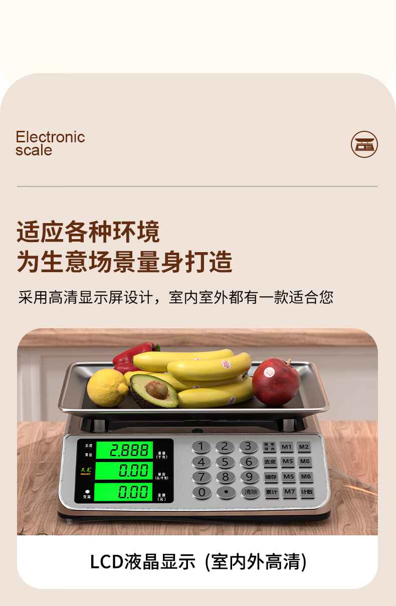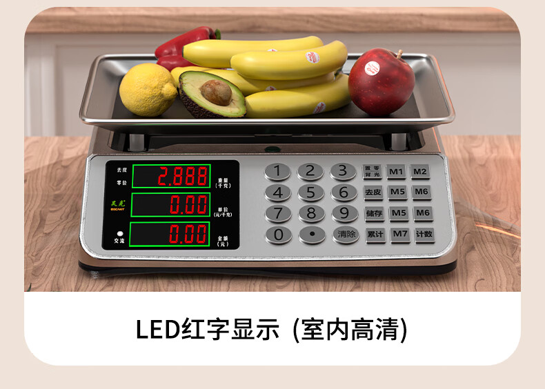 Haoke high-precision 30 kg electronic scale for commercial use, small scale, accurate 1 gram weighing scale, supermarket vegetable stall charging, three-proof model - LCD black characters - Steel flat plate - Stable 1 gram accuracy