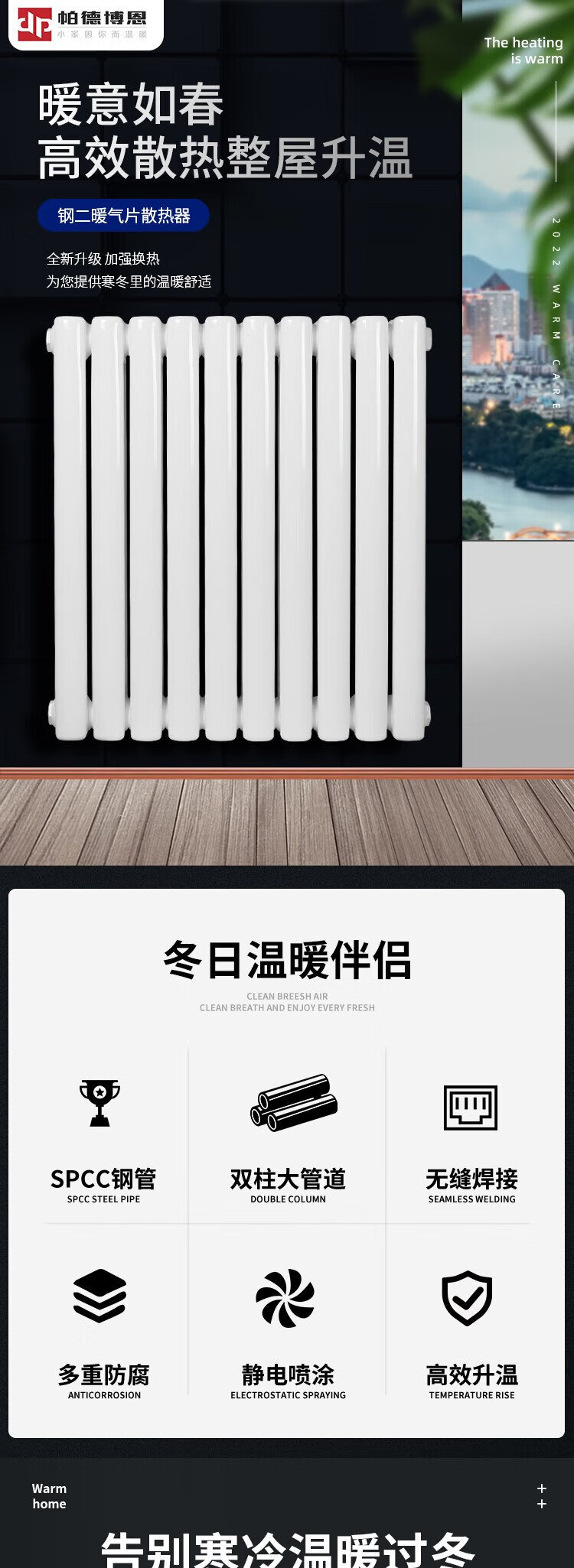 Paderborn radiator large water channel household wall-mounted central heating self-heating radiator steel water radiator 60-12 columns heating 11-12 square meters