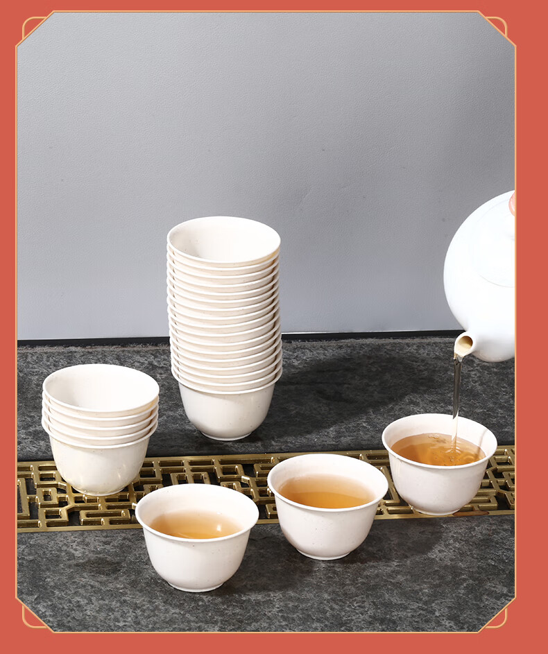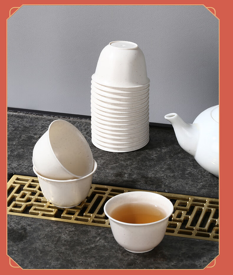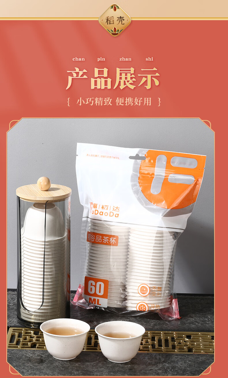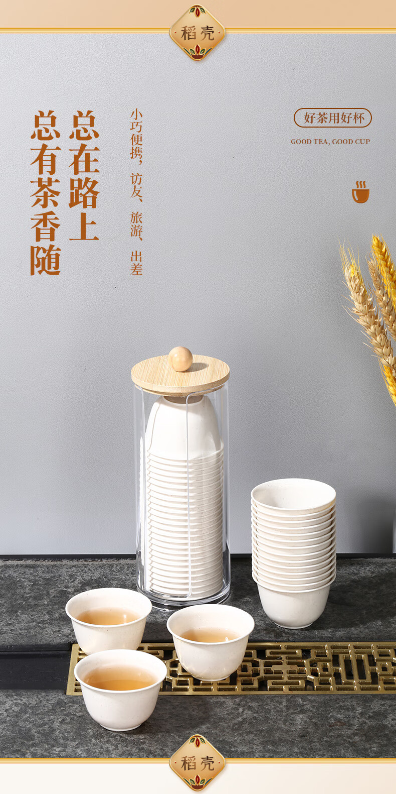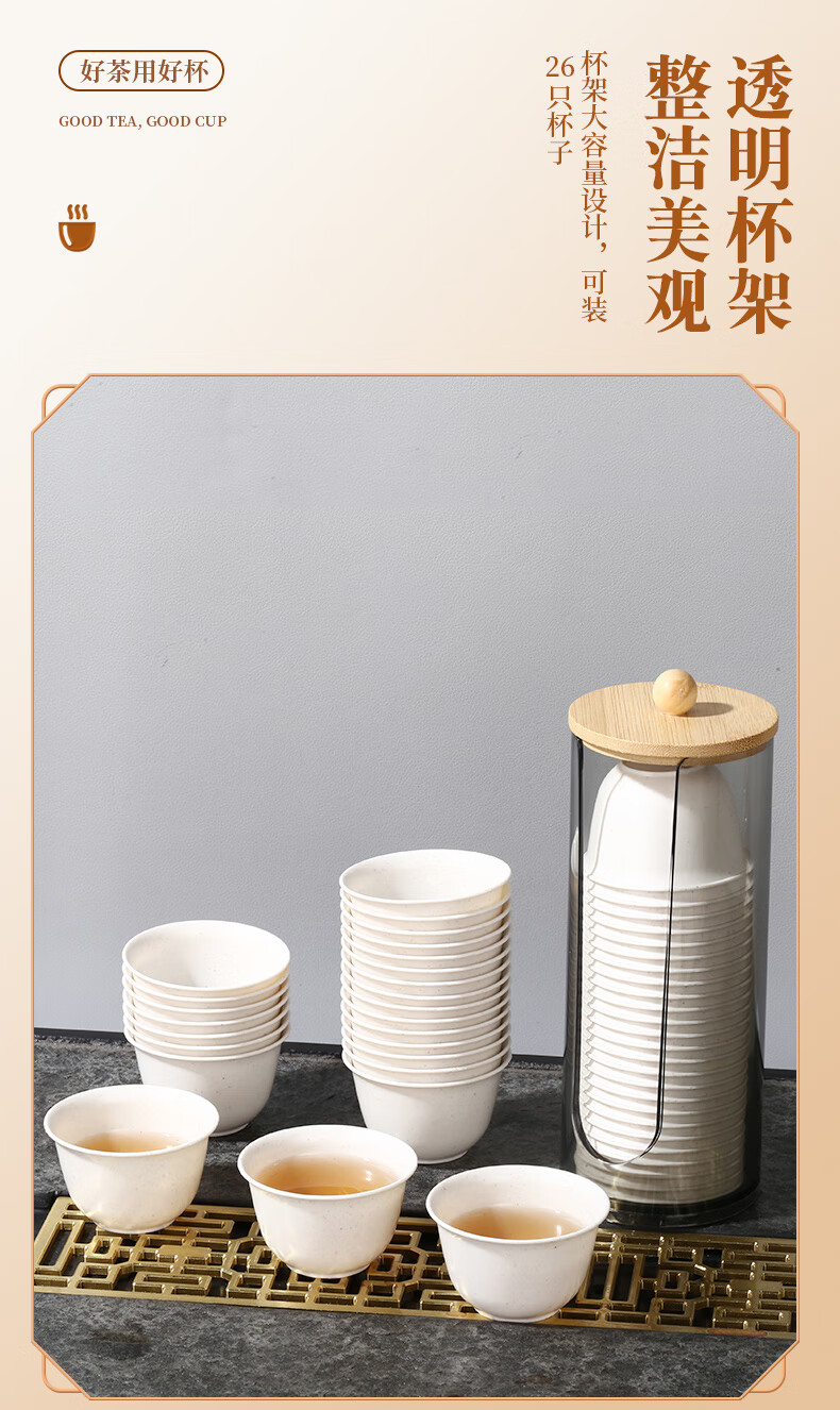 Heat-resistant disposable kung fu tea cup with storage cup holder rice husk tea cup tea reception 60ml high-end tea cup Daoxiang cup 60ML 6 pack 300 only with high-end storage rack