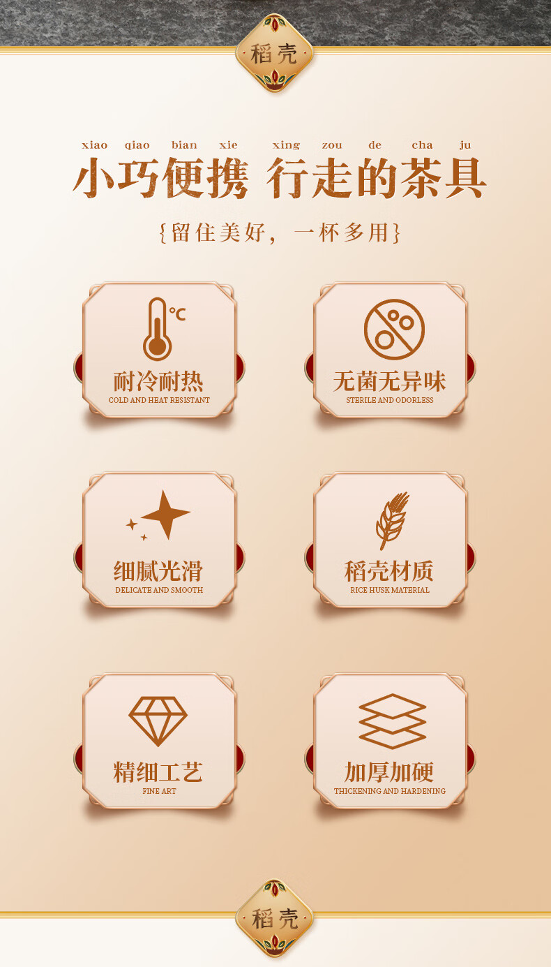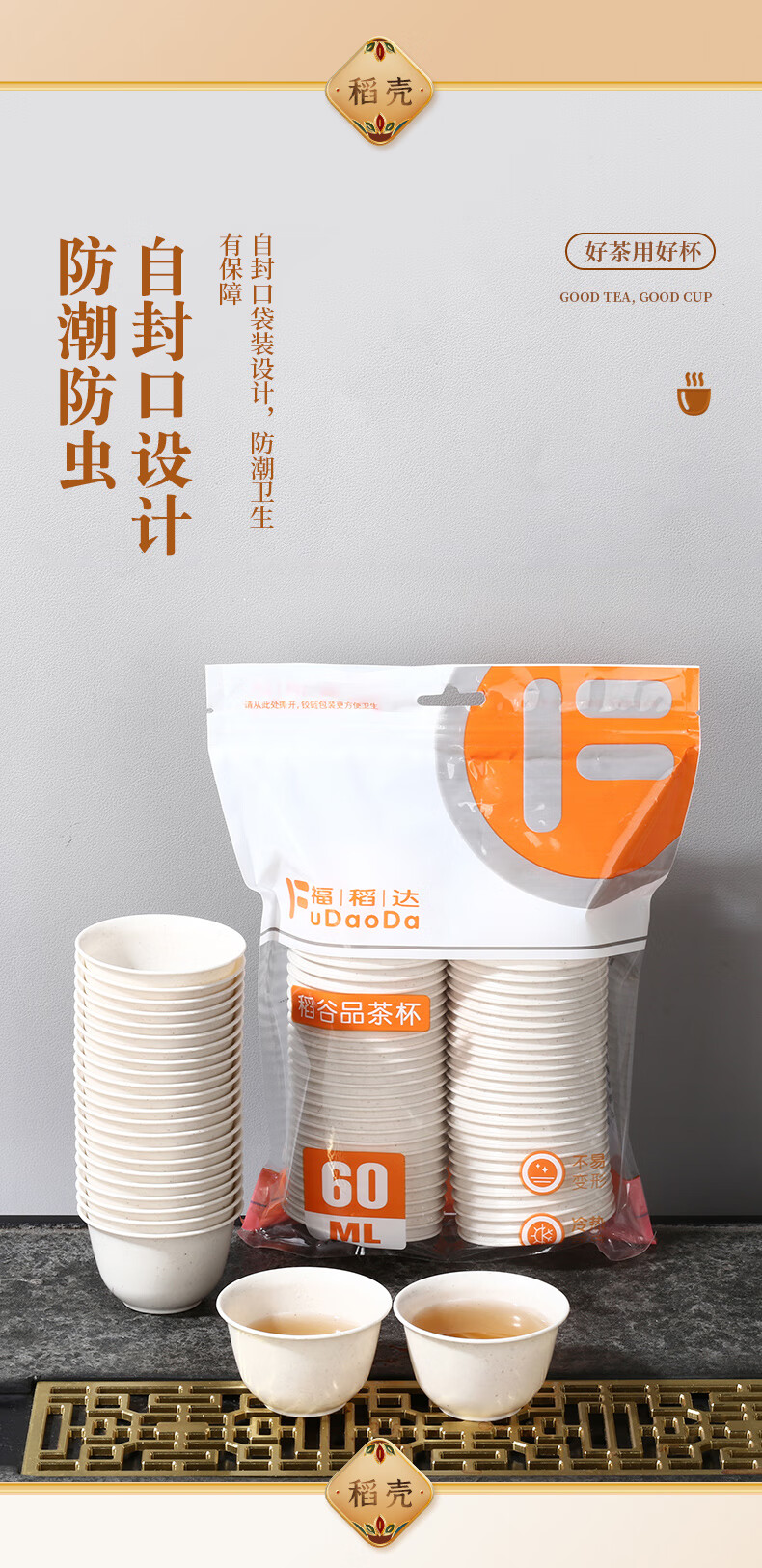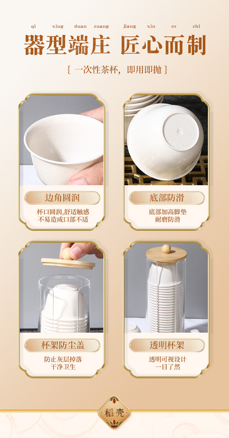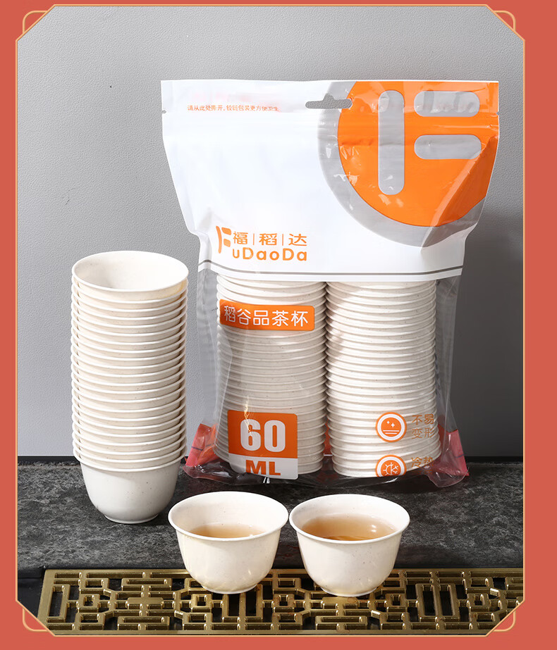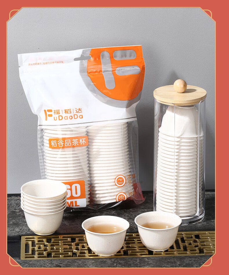 Heat-resistant disposable kung fu tea cup with storage cup holder rice husk tea cup tea reception 60ml high-end tea cup Daoxiang cup 60ML 6 pack 300 only with high-end storage rack