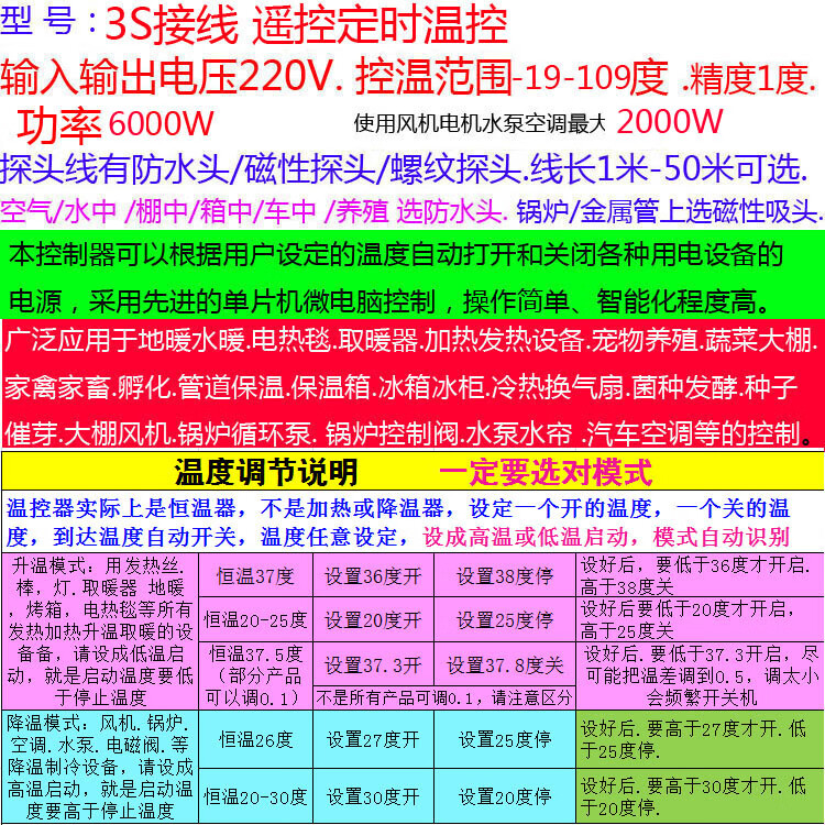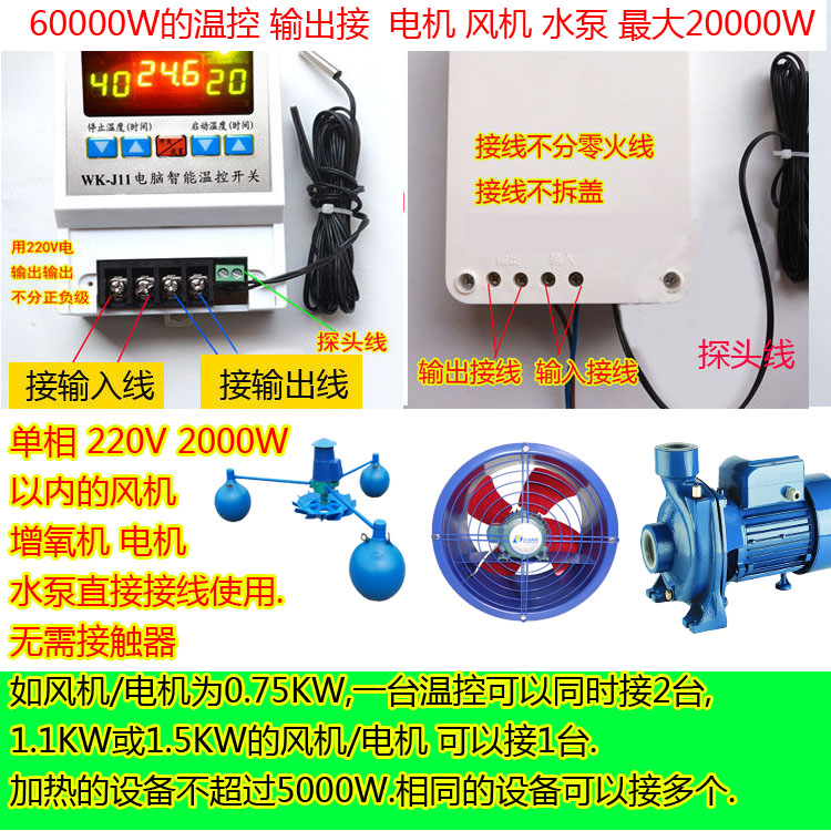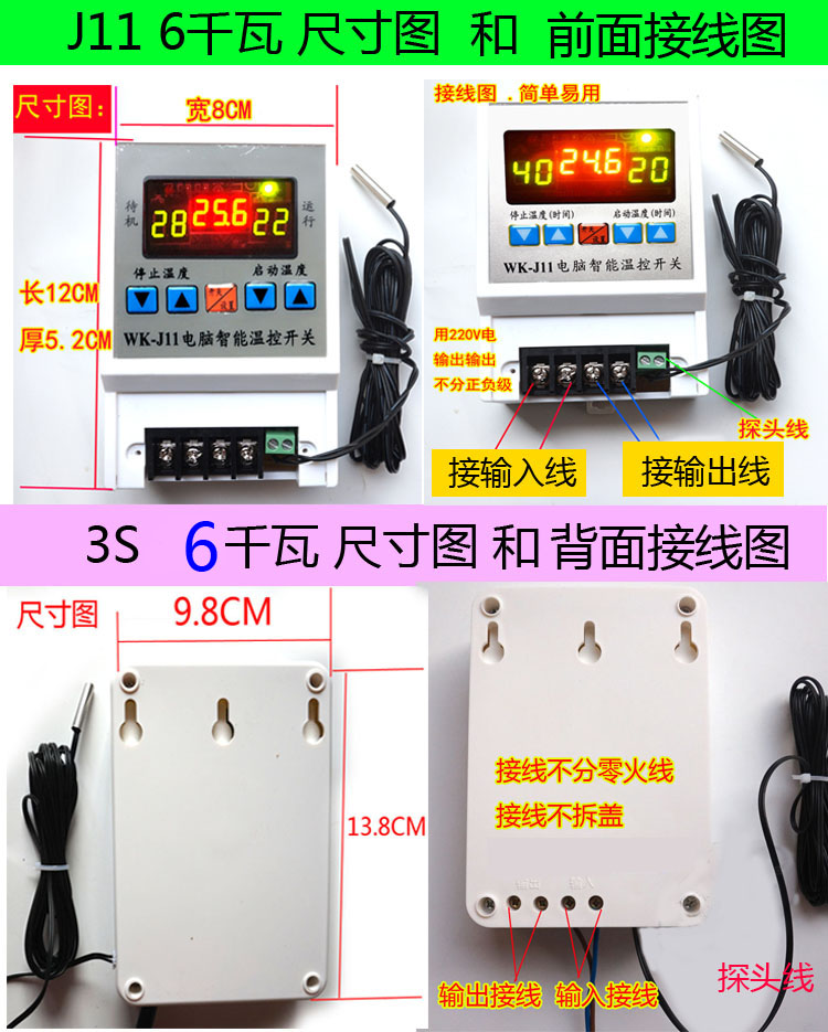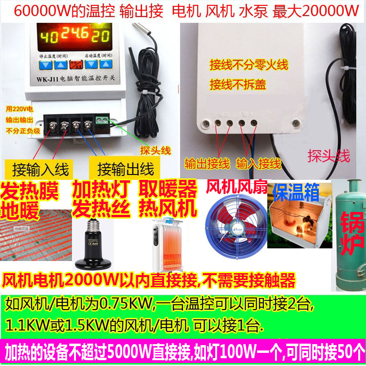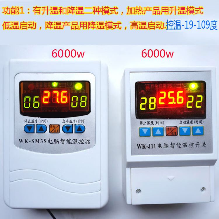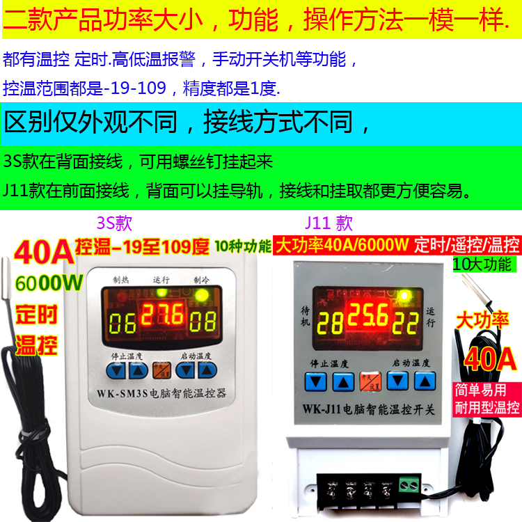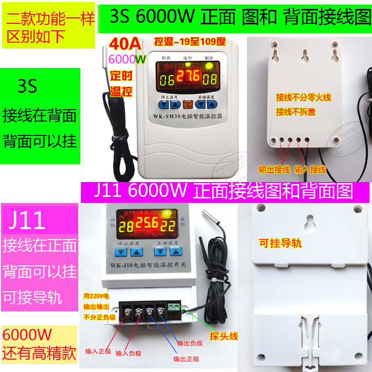 Thermostat 6000W High Power Temperature Controller Heater Fan Switch Freezer Climbing Pet Breeding Shed Pump Chi J11 6kW Timed Temperature Control + 10m Waterproof Line
