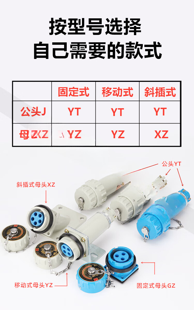 Yueqing Youtai explosion-proof connector aviation plug and socket three-phase four-five pole non-sparking plug YT/Chi 60A/63A single-phase three-pole 3-core fixed YT/GZ