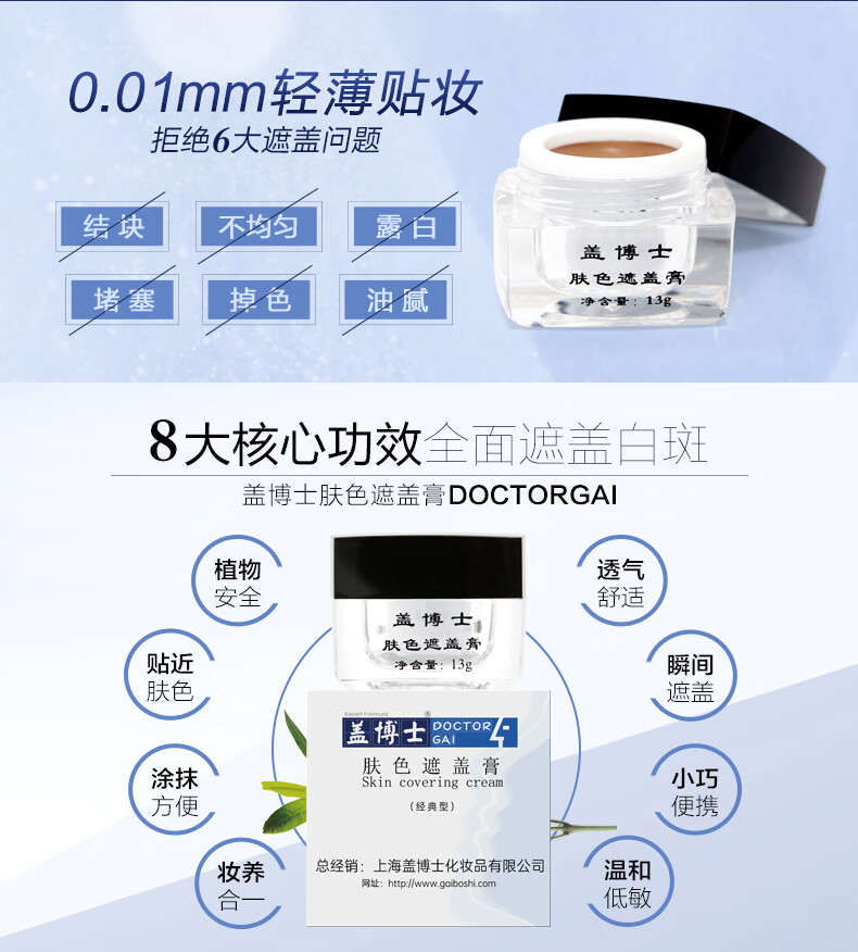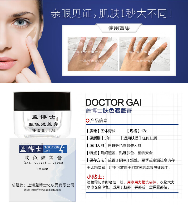 Dr. Gai Vitiligo Covering Cream Vitiligo Covering Cream Instant Color Portable Emergency External Application Concealer 13g Skin Color 13g