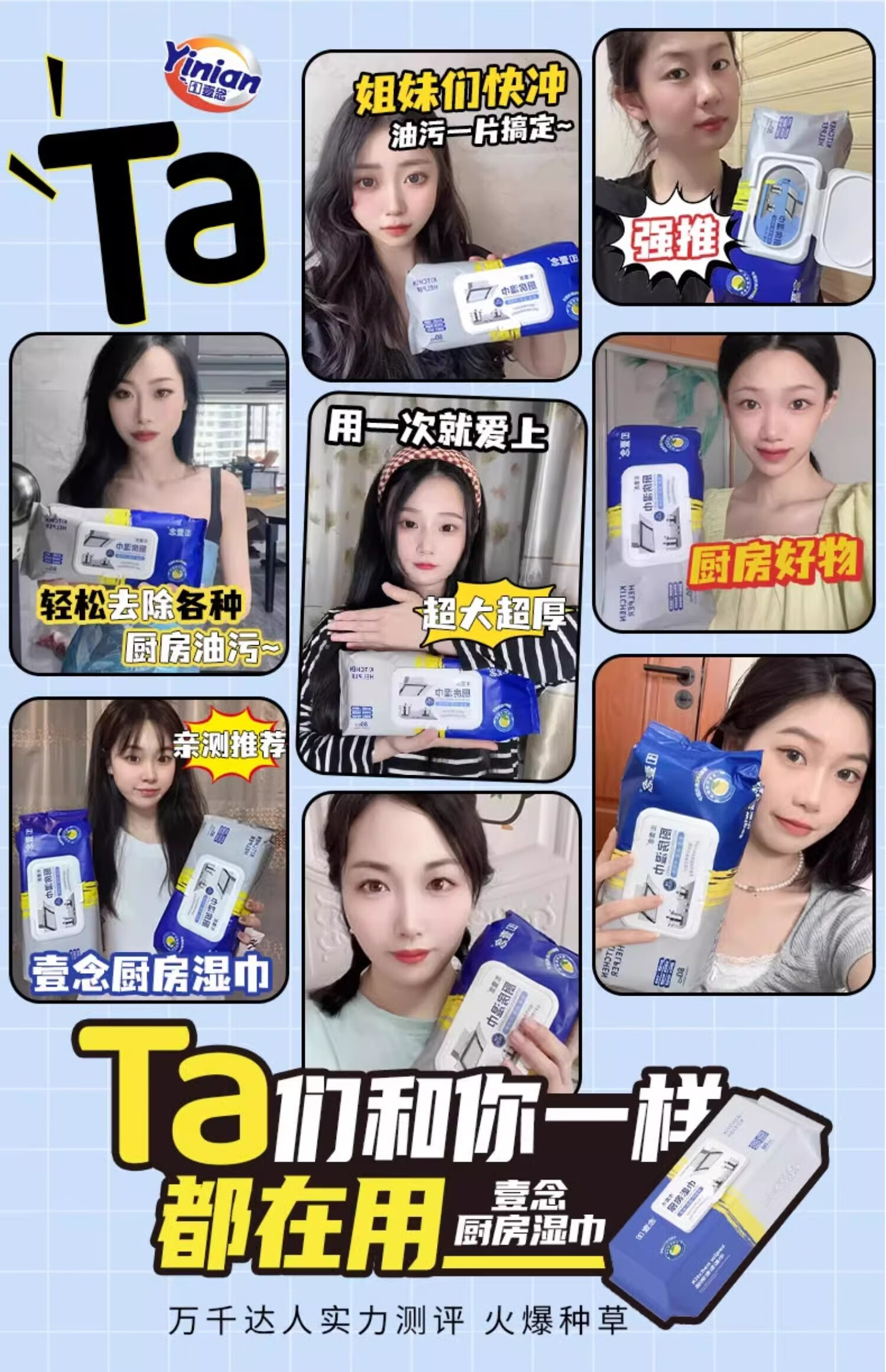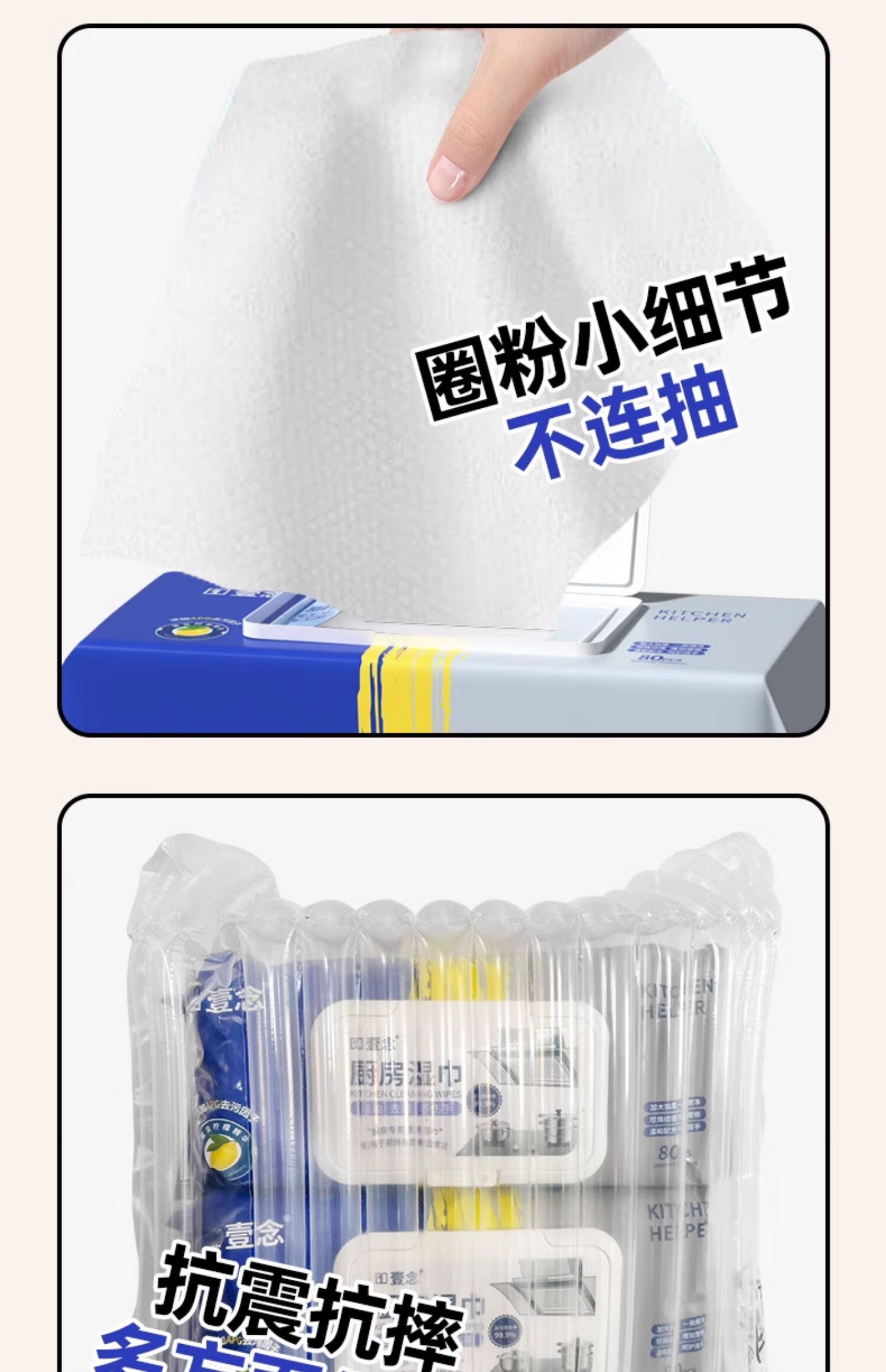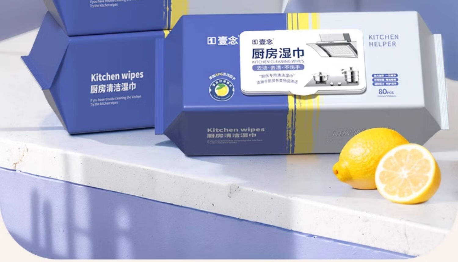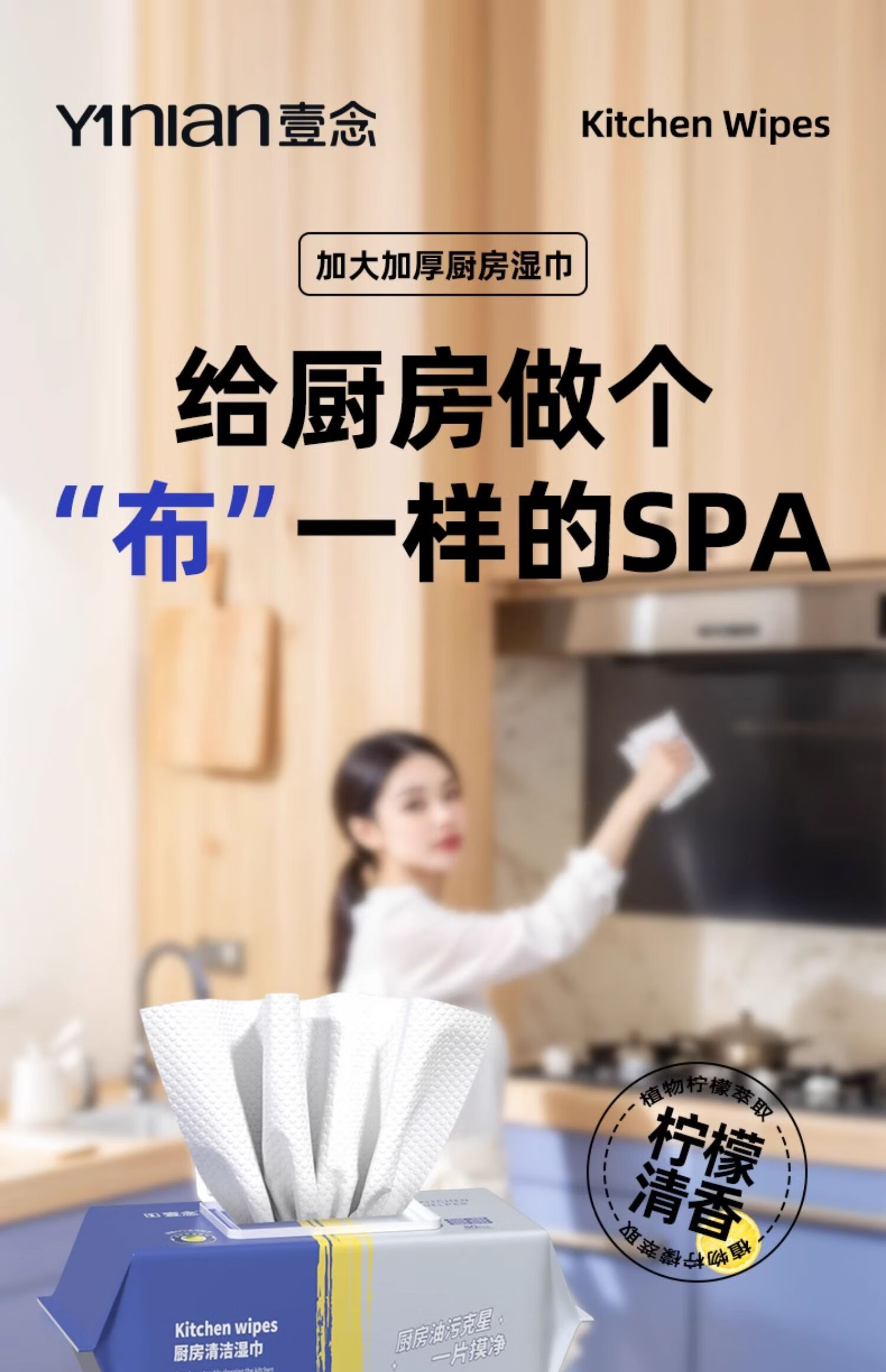 Yi Nian kitchen wipes to remove oil and stains, household range hood cleaning, powerful oil removal wipes, enlarged and thickened rags, 3 layers, 80 puffs * 2 packs, 160 pieces, enlarged and thickened, free 2 small packs