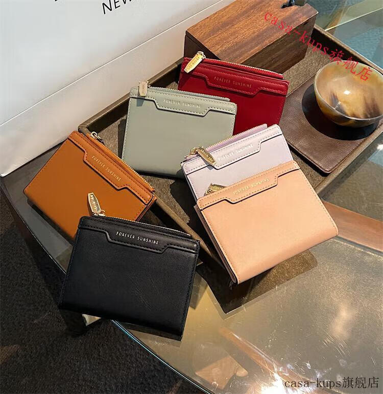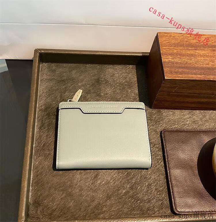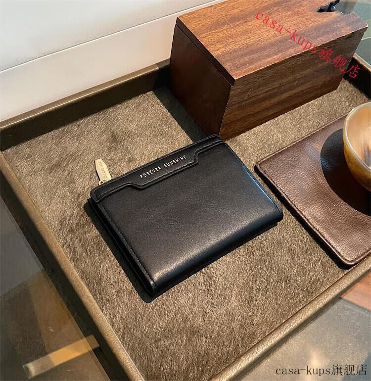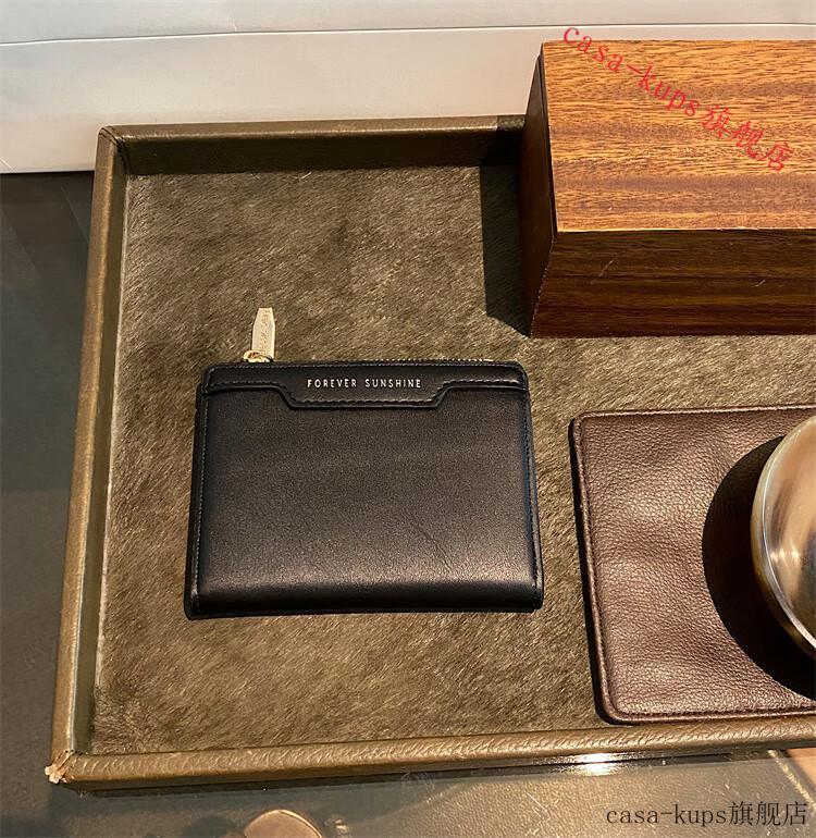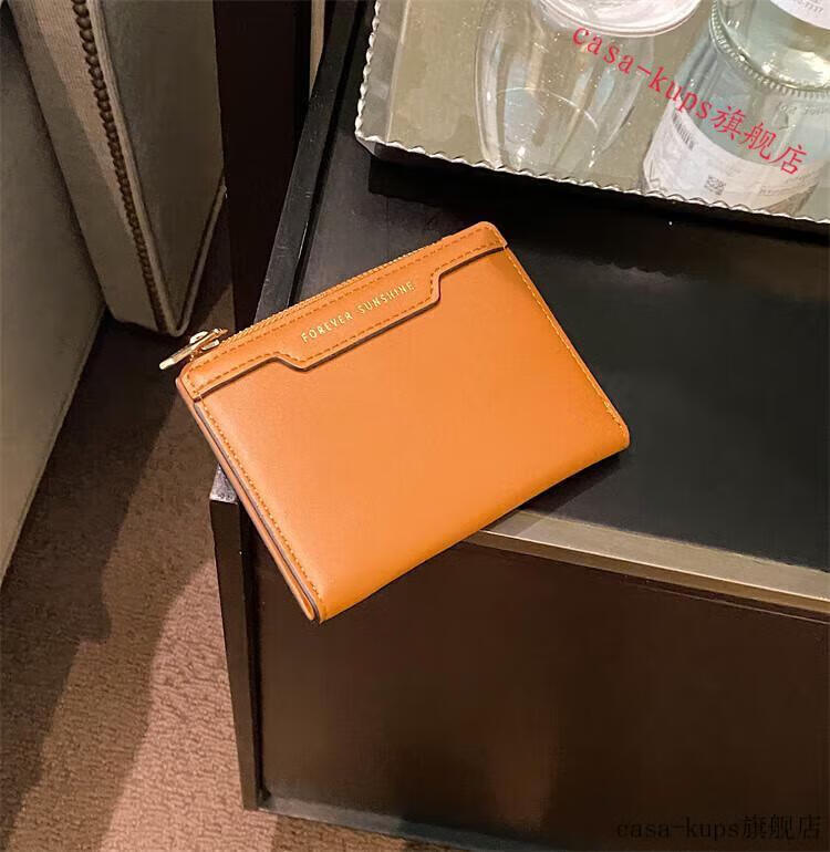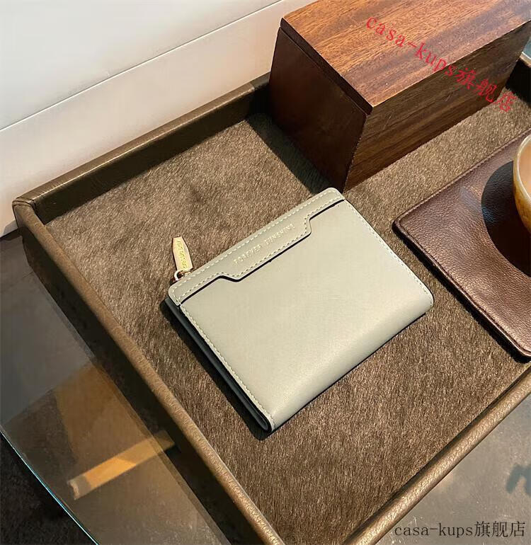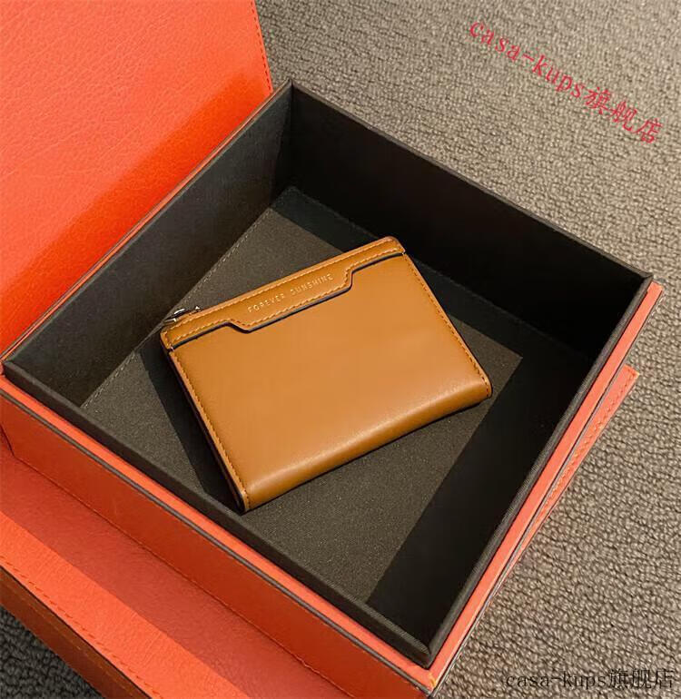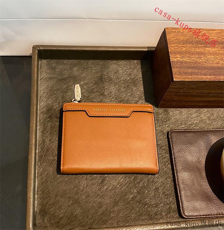 Casa-kups women's bag niche high-end wallet women's short thin multi-card zipper buckle retro soft leather student card bag brown
