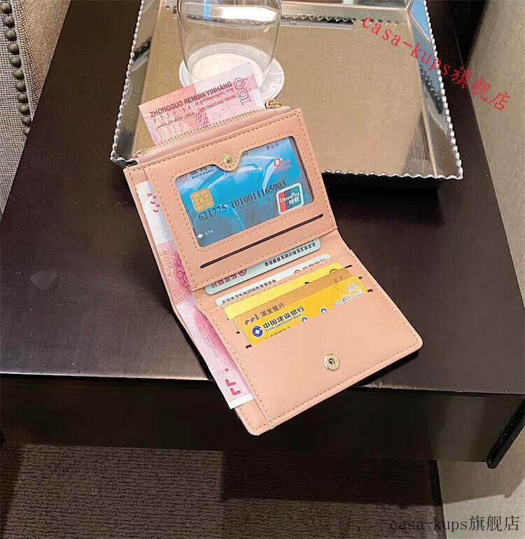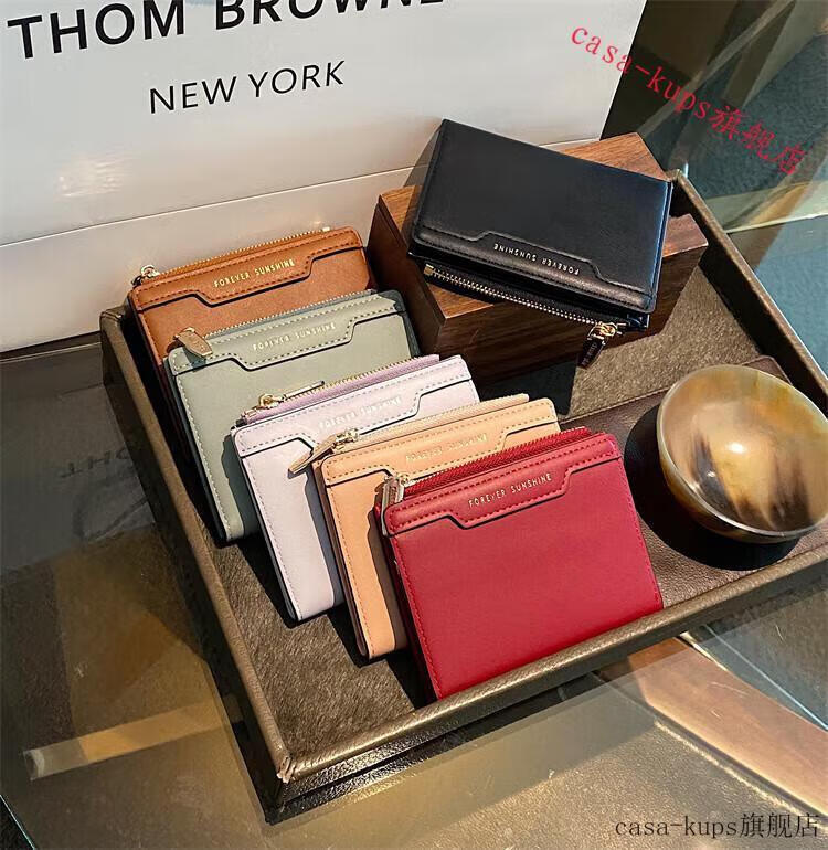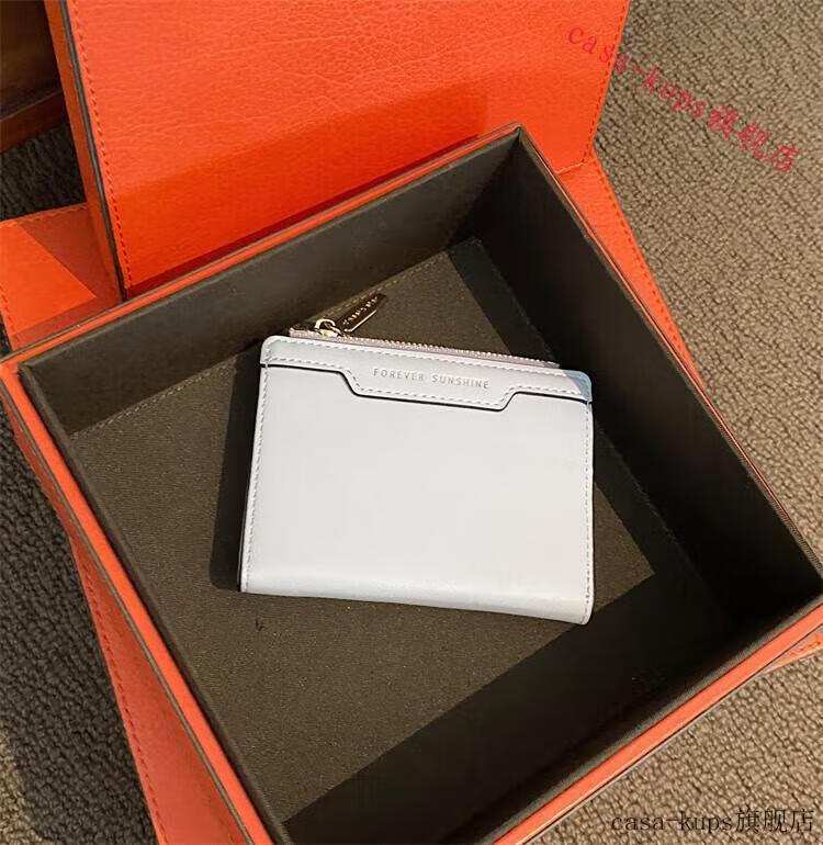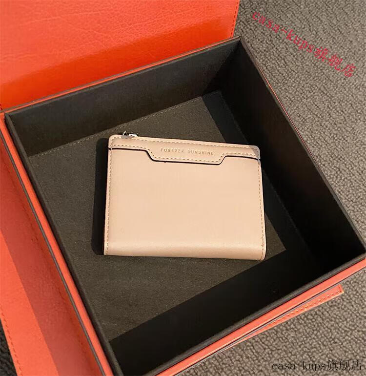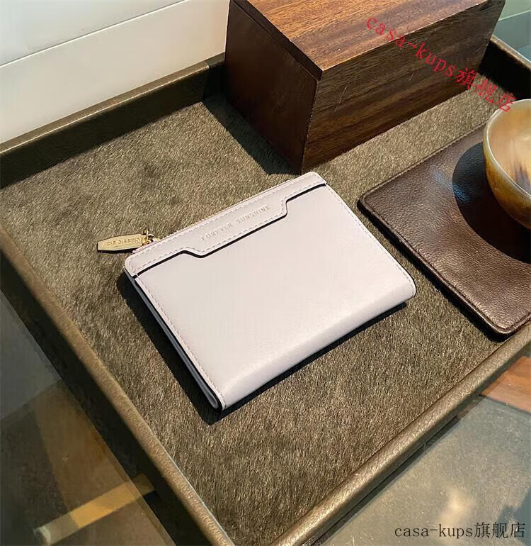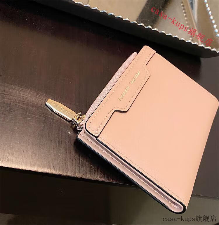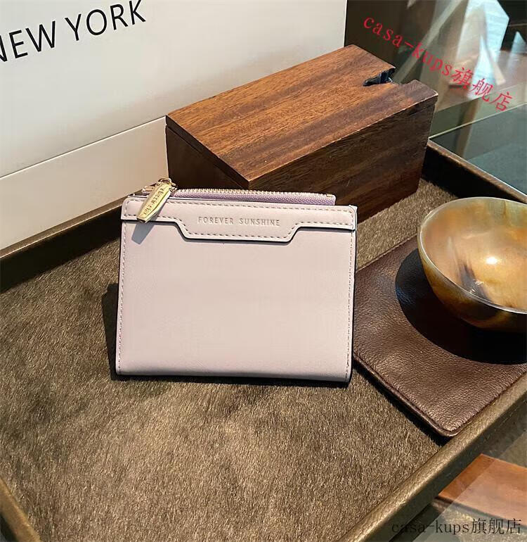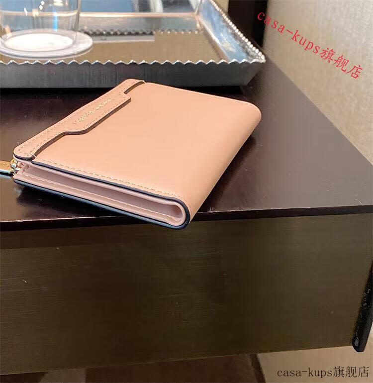 Casa-kups women's bag niche high-end wallet women's short thin multi-card zipper buckle retro soft leather student card bag brown
