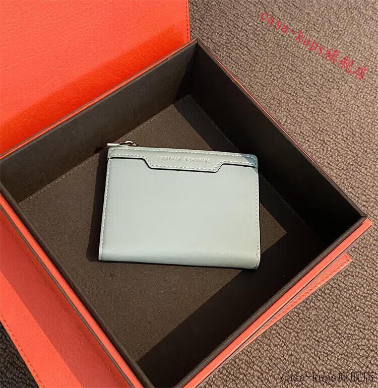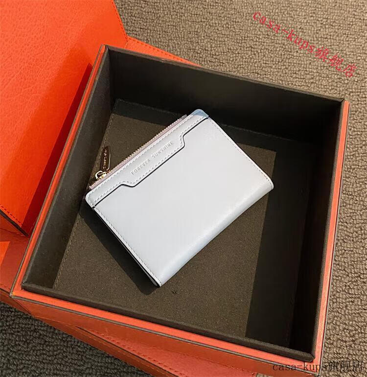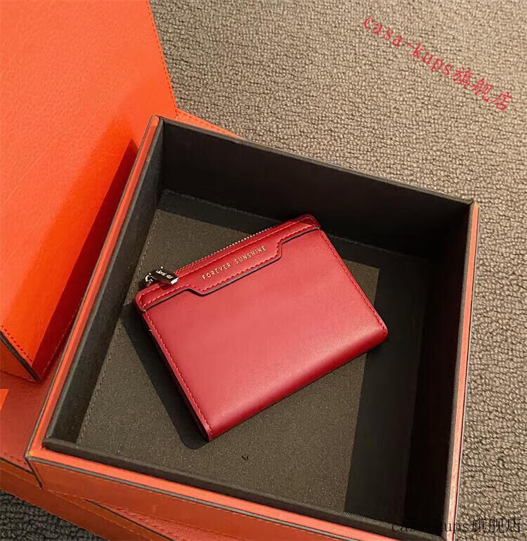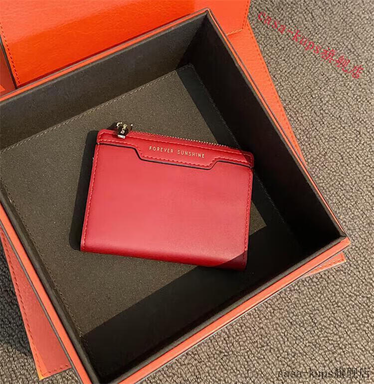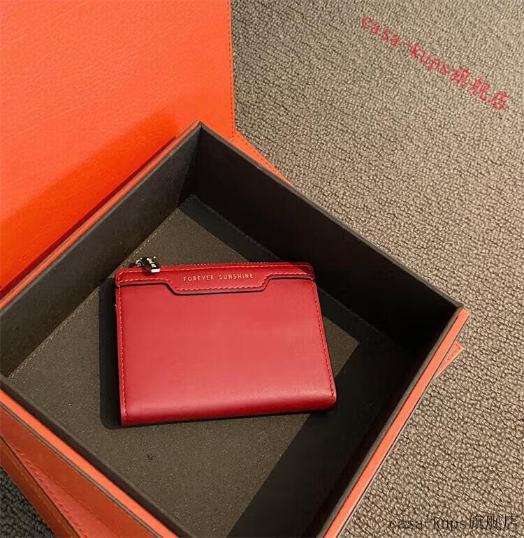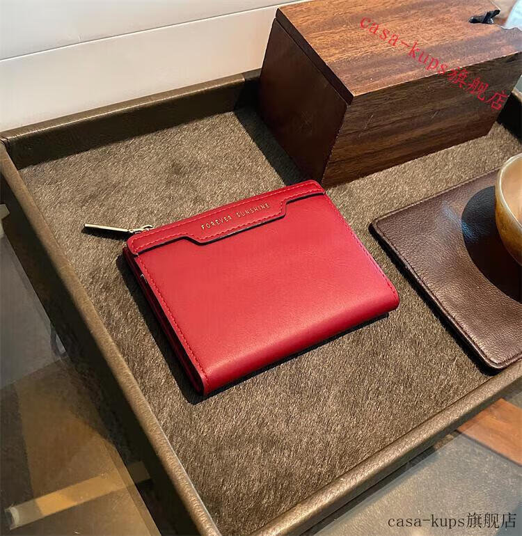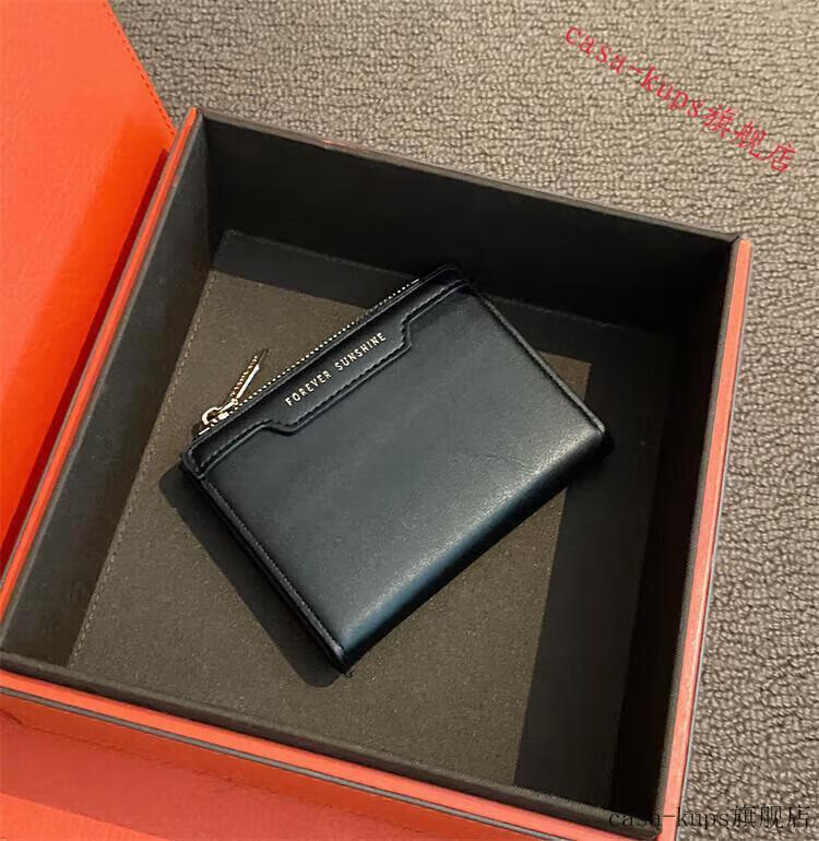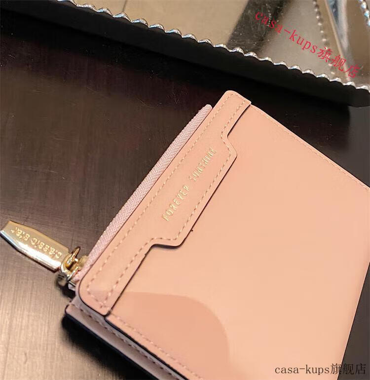 Casa-kups women's bag niche high-end wallet women's short thin multi-card zipper buckle retro soft leather student card bag brown