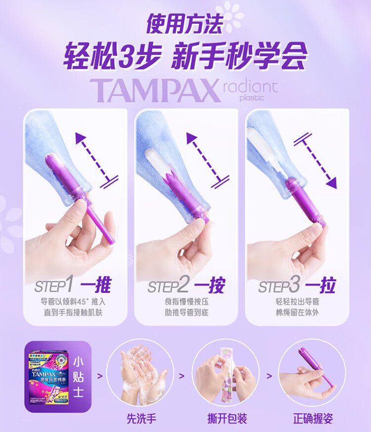 Tambis (TAMPAX) easy-to-push tampons, duct-type tampons, long ducts, built-in cotton swabs, sanitary napkins, swimming artifacts, imported long ducts, normal flow, 16 pieces