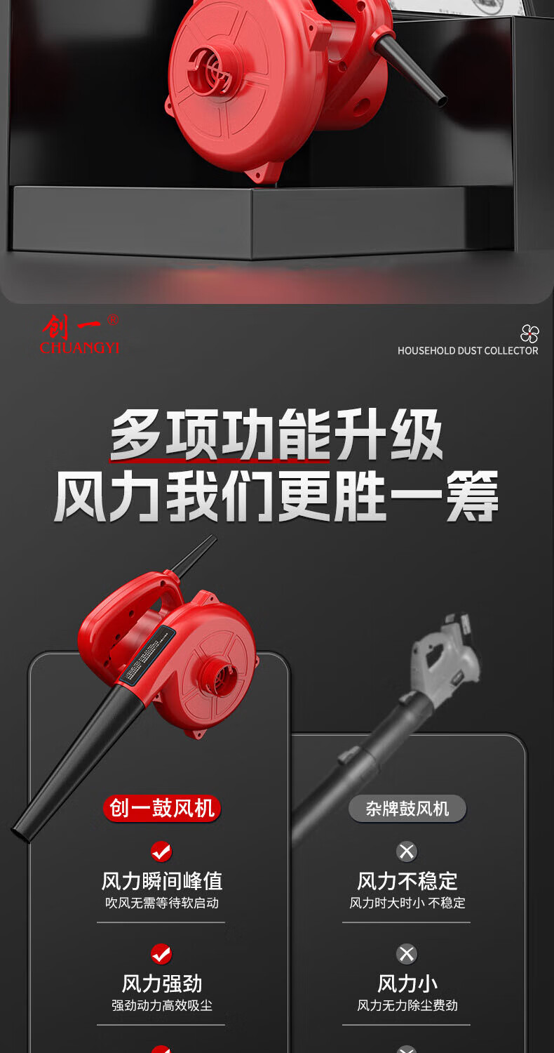 Chuangyi Multifunctional Household Cleaning Dust Collector Blower Industrial Hair Dryer Vacuum Cleaner Power Tool Computer Dust Removal Fixed Speed Model Blowing and Suction Dual-Purpose + Factory Standard Configuration