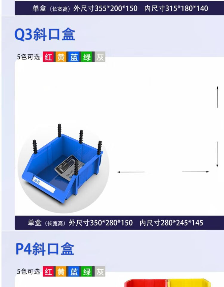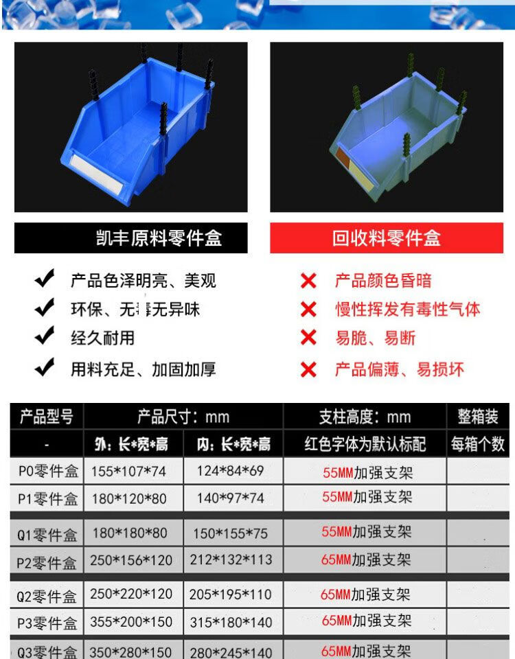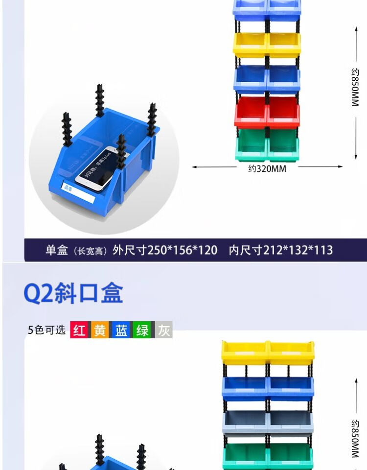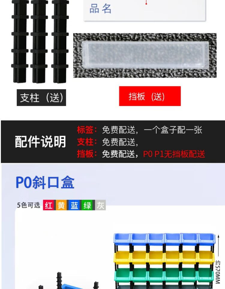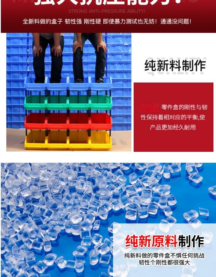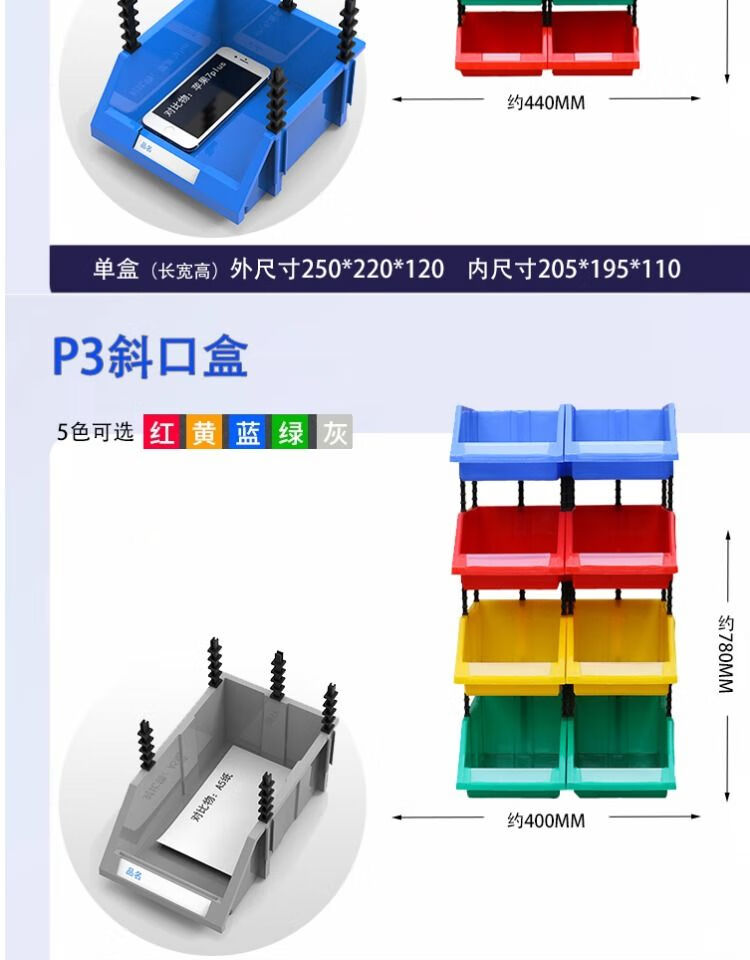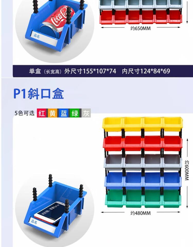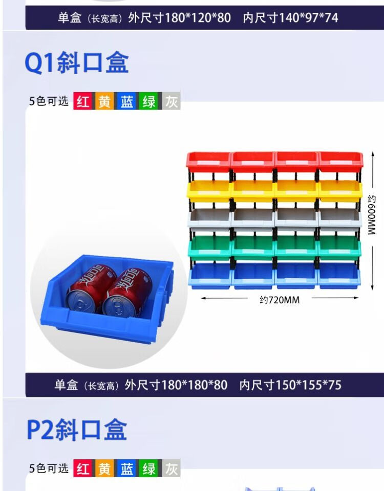 Warehouse oblique parts box plastic box screw box hardware storage box shelf tool box material box accessories box P1 (red) 180*120*80 thick version