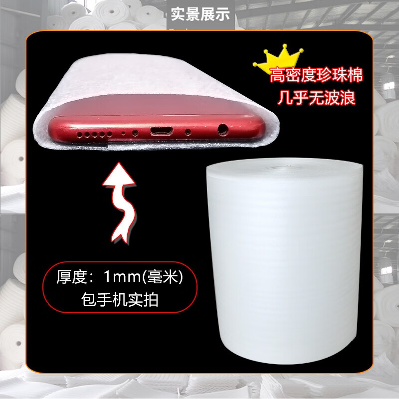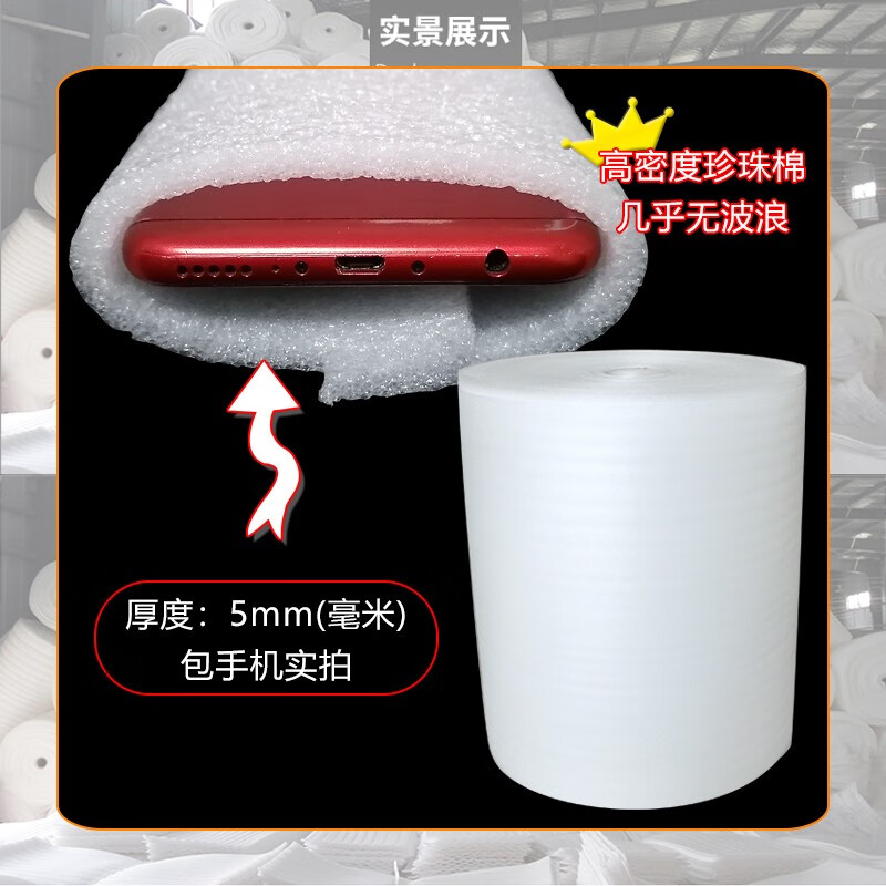 Wave-free high-density pearl cotton packing film filled with shock-proof and thickened furniture packing cotton express anti-fall filling furniture packing floor waterproof insulation pearl cotton thickness 20 mm * width 60 cm * length 2.5 meters