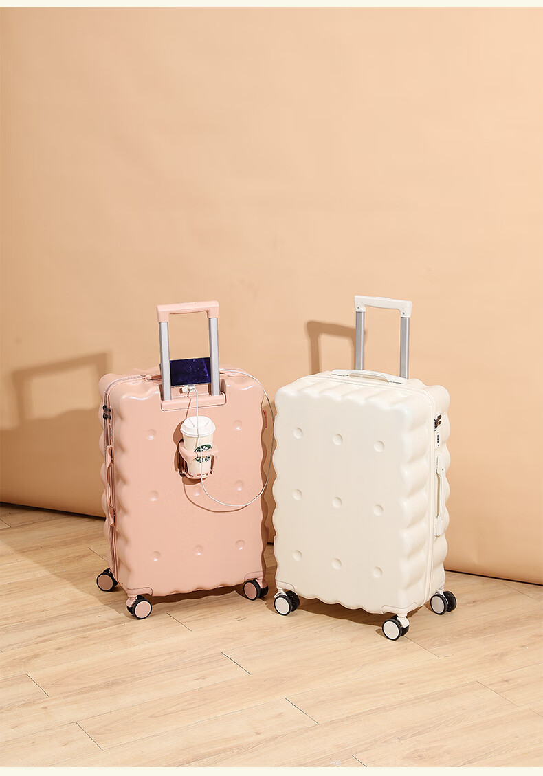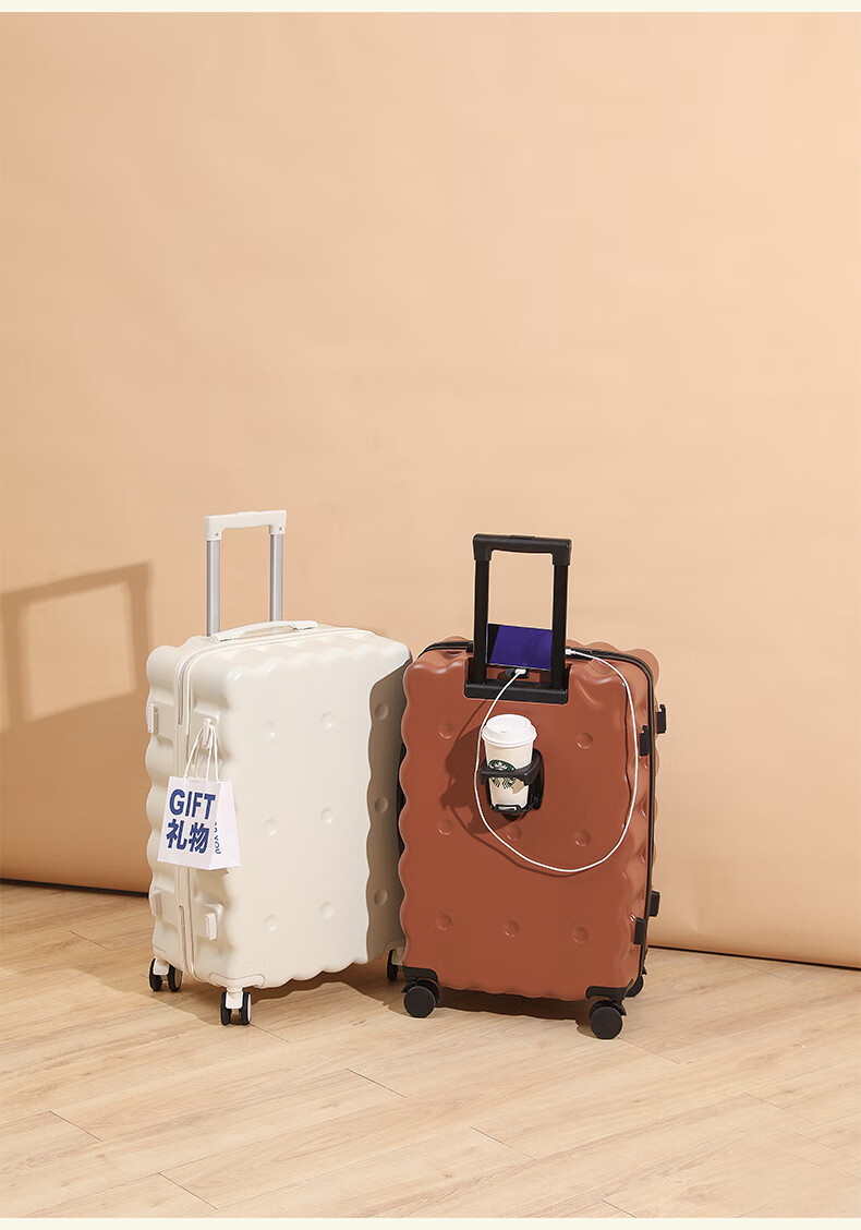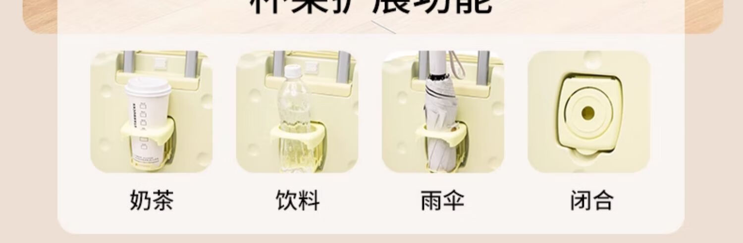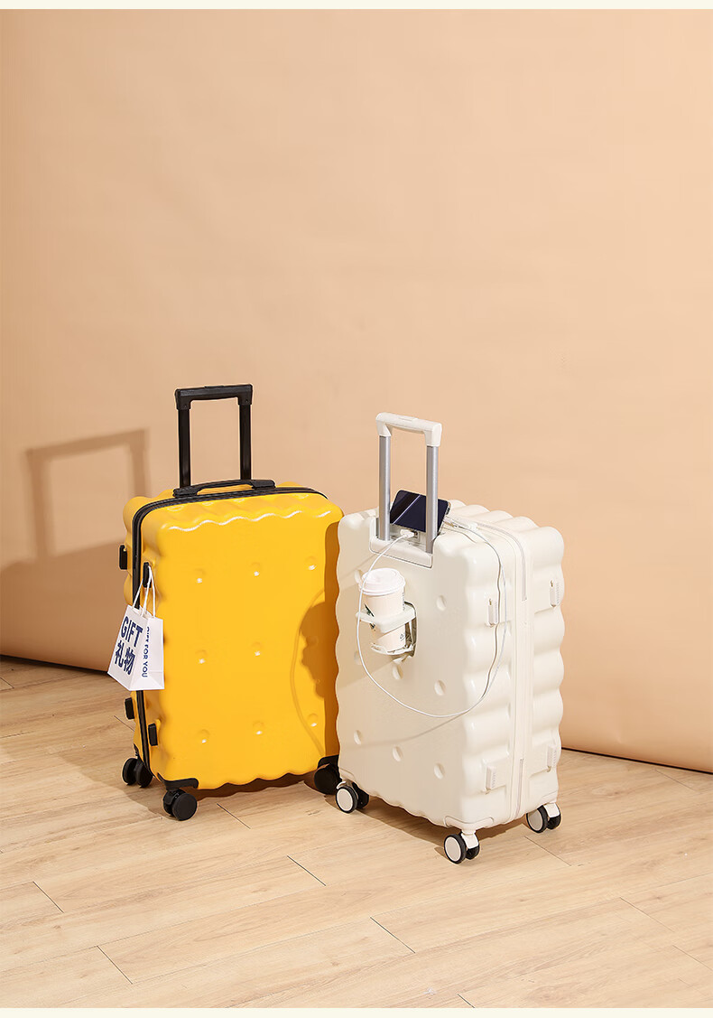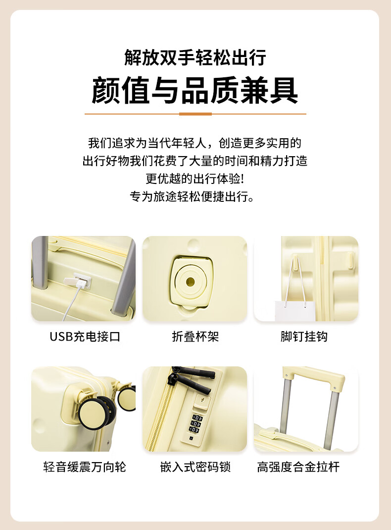 Ouyao high-looking suitcase can be carried on the plane small boarding case 2025 new multi-functional lightweight and durable travel suitcase cheese yellow USB charging port + cup holder + hook 20 inches free of charge for air boarding