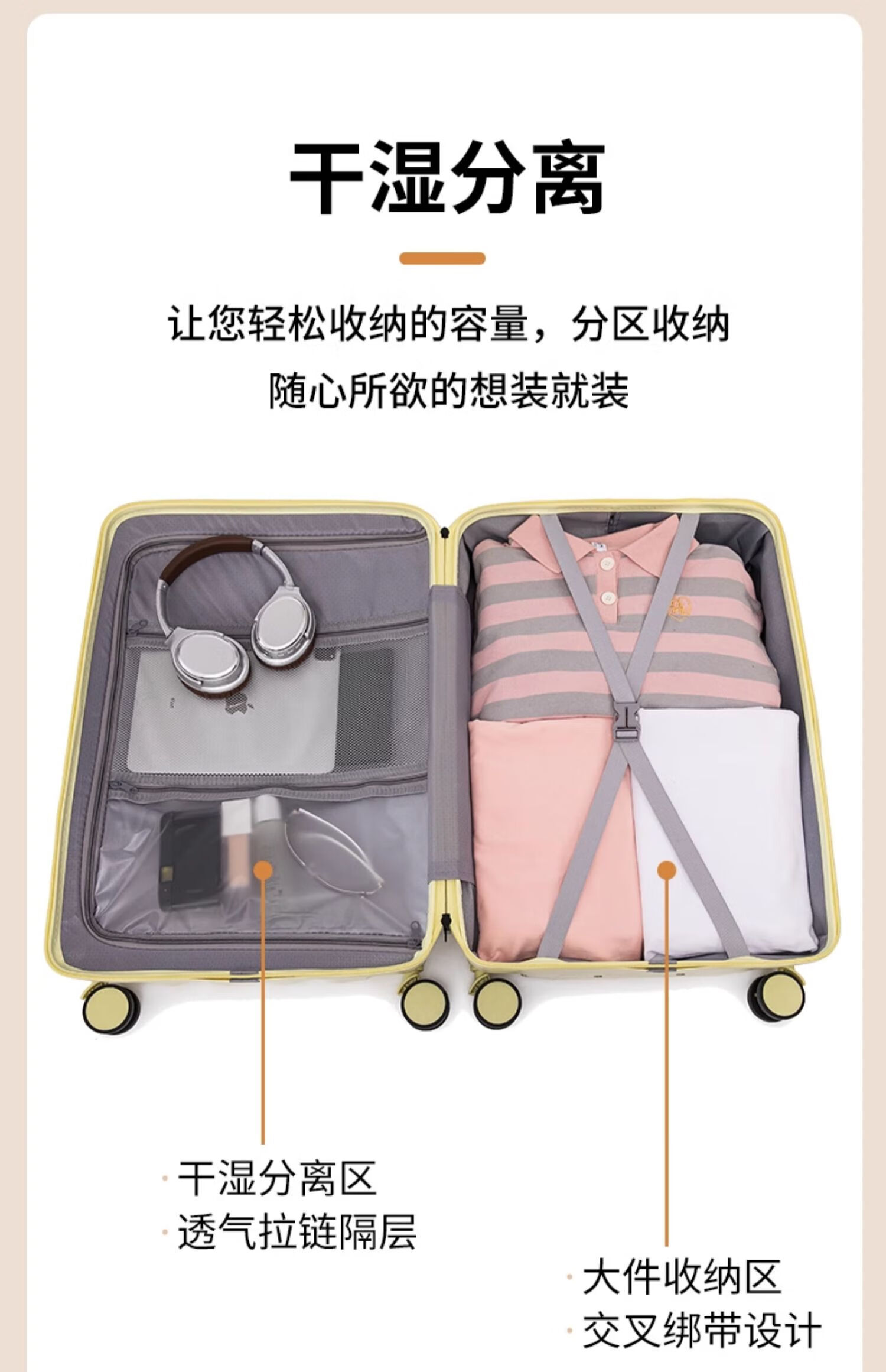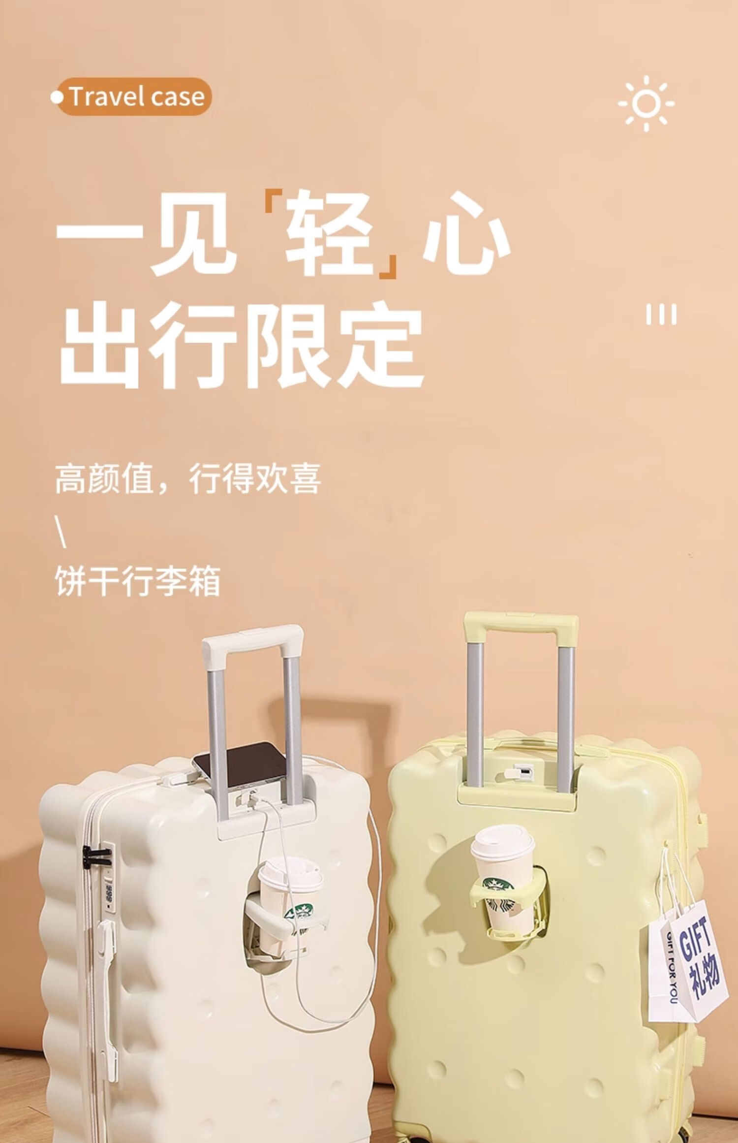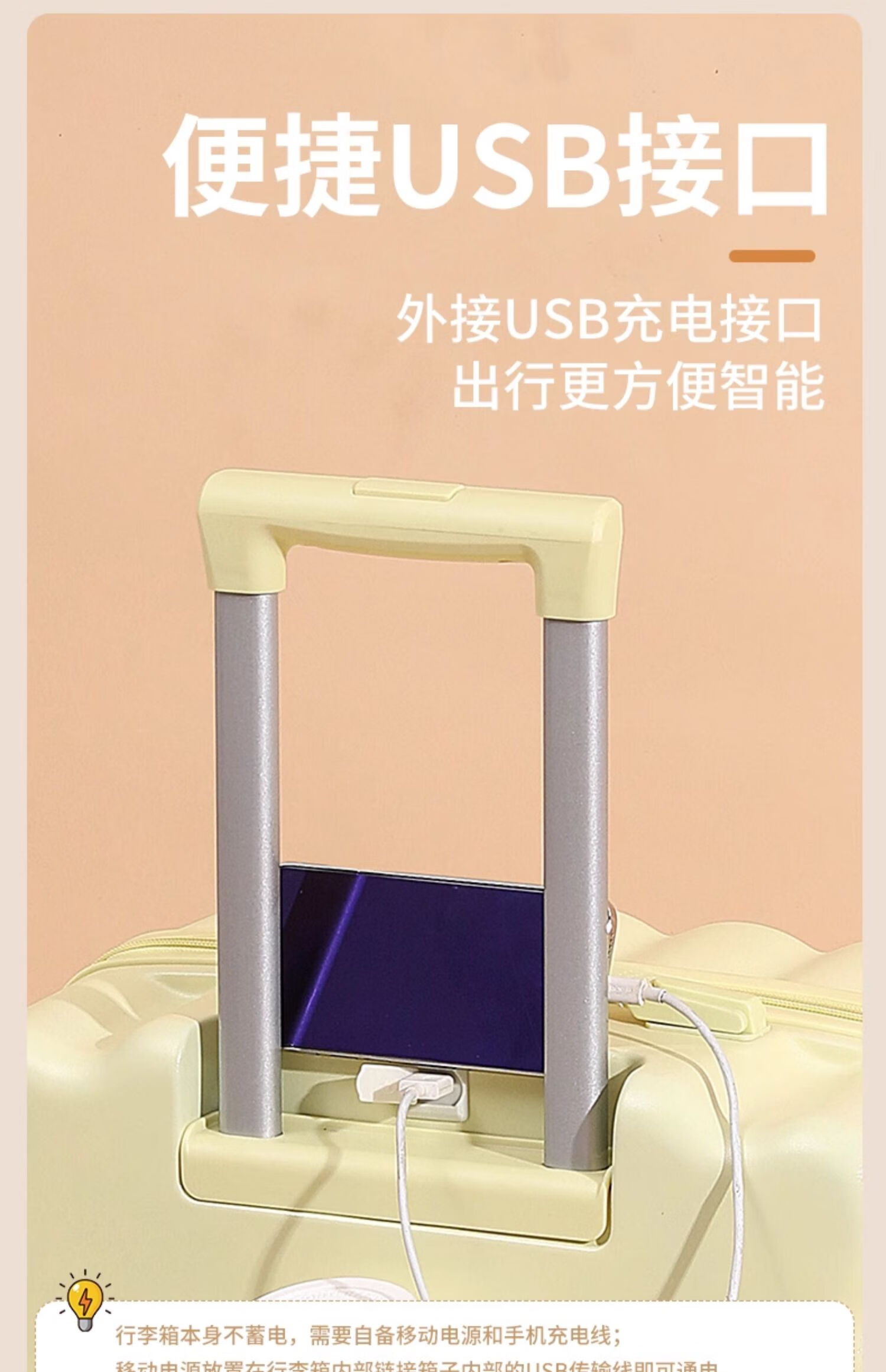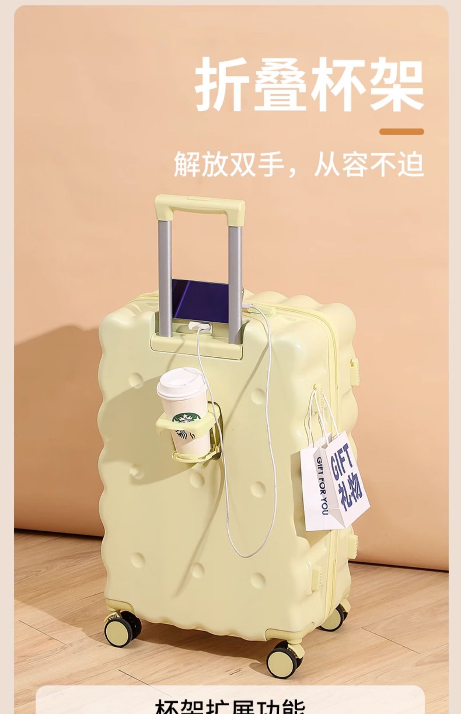 Ouyao high-looking suitcase can be carried on the plane small boarding case 2025 new multi-functional lightweight and durable travel suitcase cheese yellow USB charging port + cup holder + hook 20 inches free of charge for air boarding