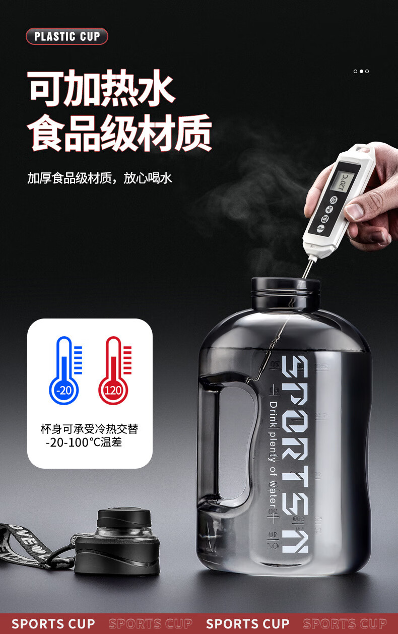 Little Kitchen Mouse 5000ml sports kettle, extra large drinking cup, large capacity, high temperature resistance, can hold tons of boiling water at construction sites, black with straw + cup cover, 5L 1 piece, no specifications