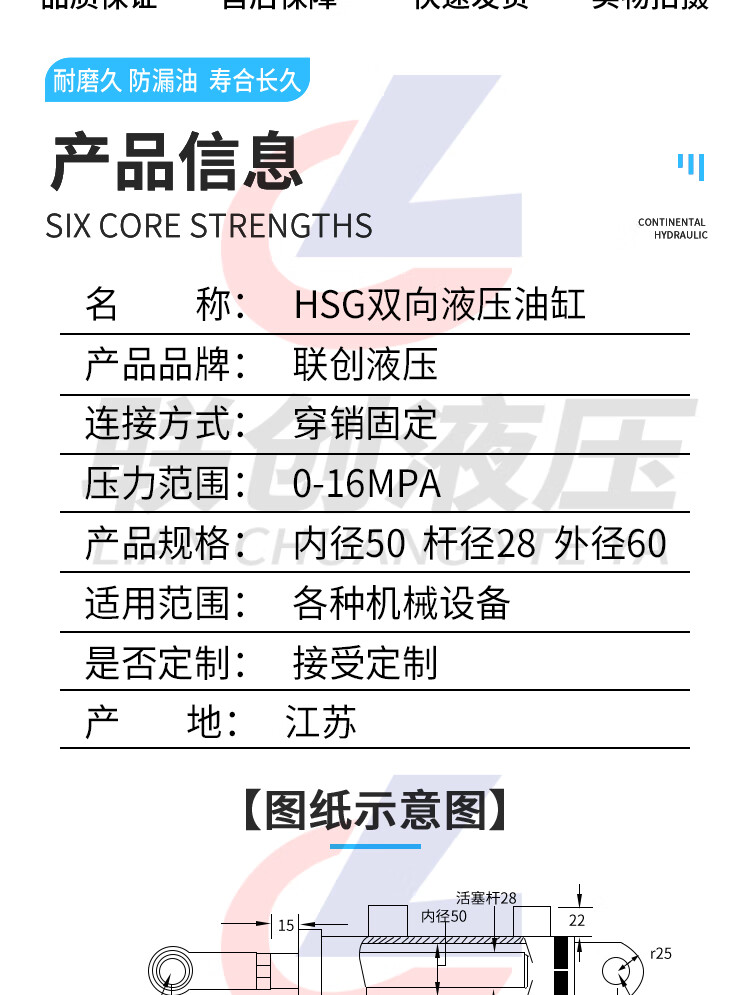 50 cylinder diameter hydraulic cylinder two-way hydraulic cylinder lifting oil jack 3 tons small hydraulic cylinder hydraulic jack 50*300 (solid electroplating)