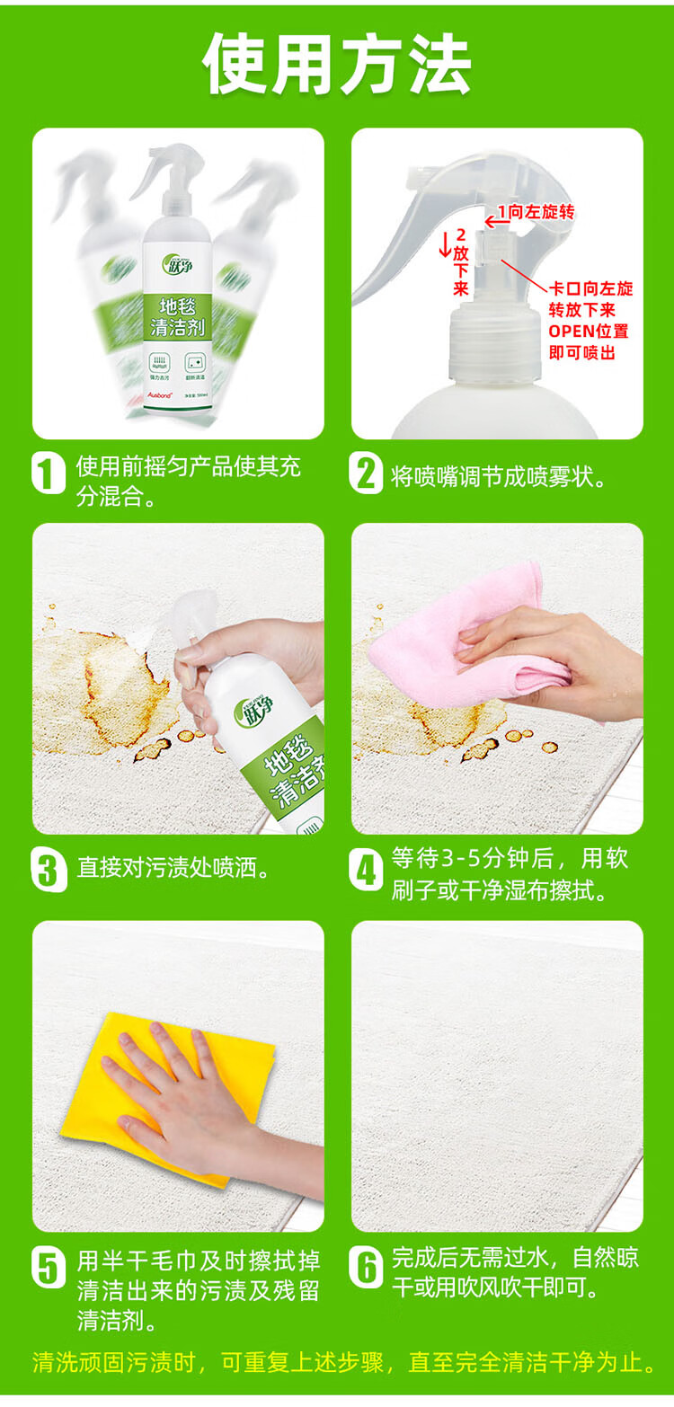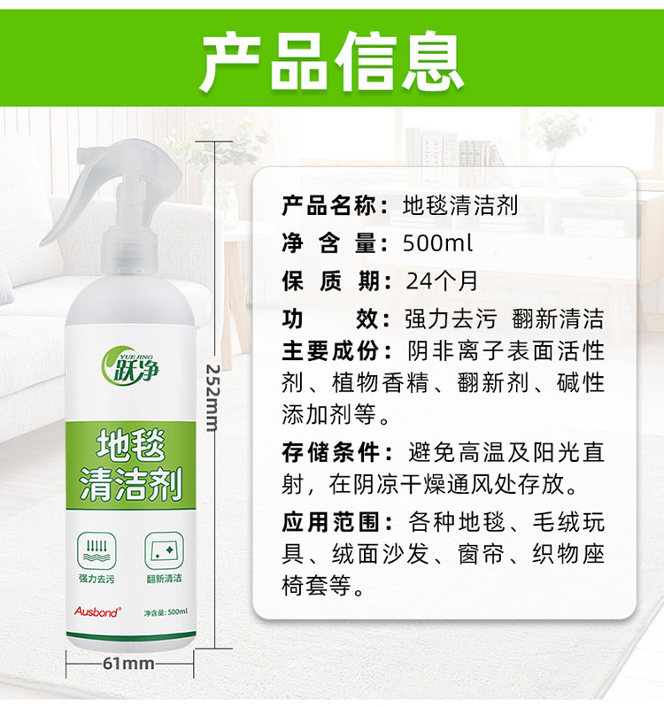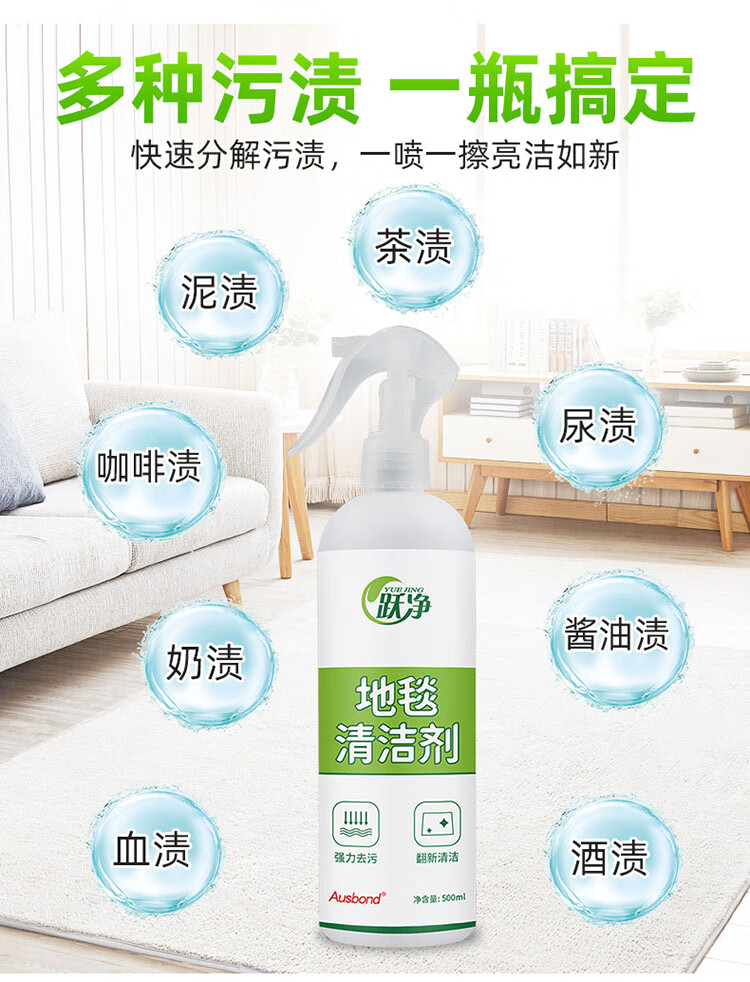 Yuejing Carpet Cleaner Household Floor Mat Liquid Weaving Sofa Hotel Water-free Washing to Remove Oil and Stains and Odor Wash Office Wool Blanket Fabric Wall Cloth Special Cleaning Mattress Detergent Dry Cleaning Agent Carpet Cleaner 500ML