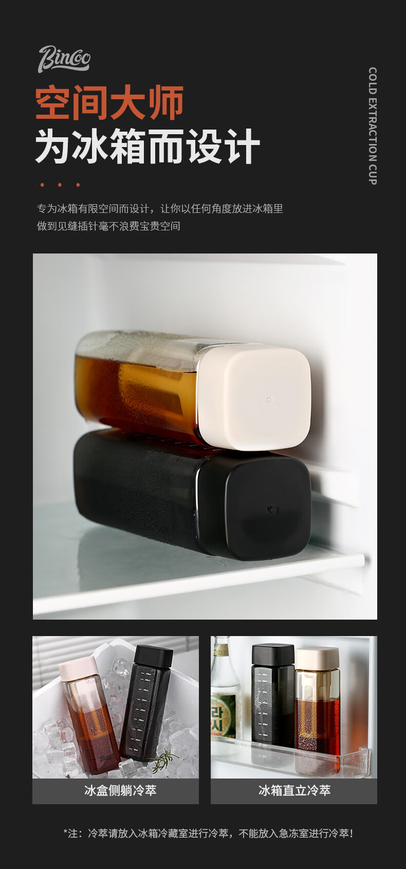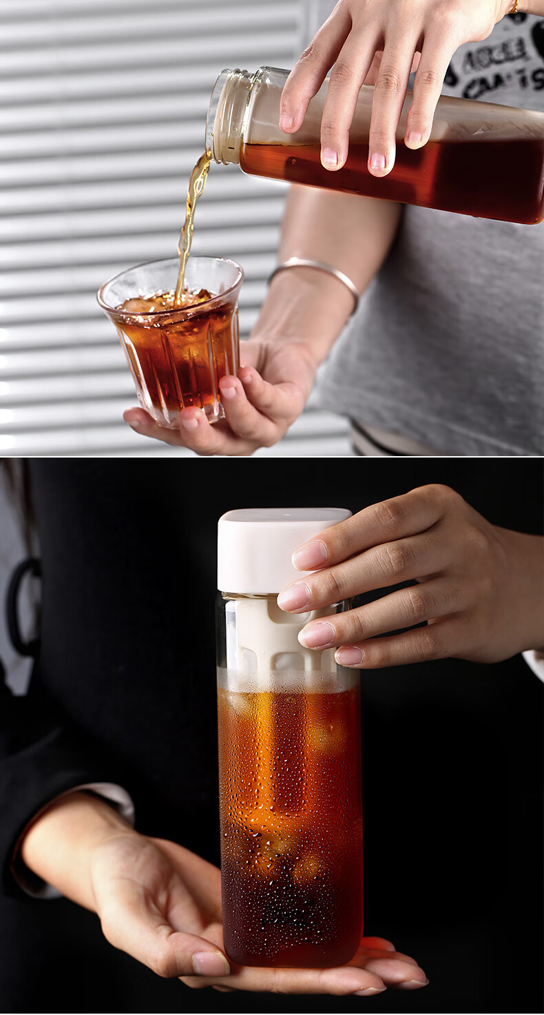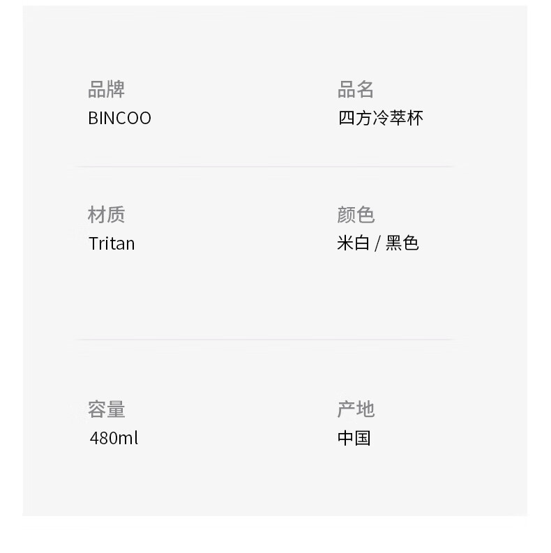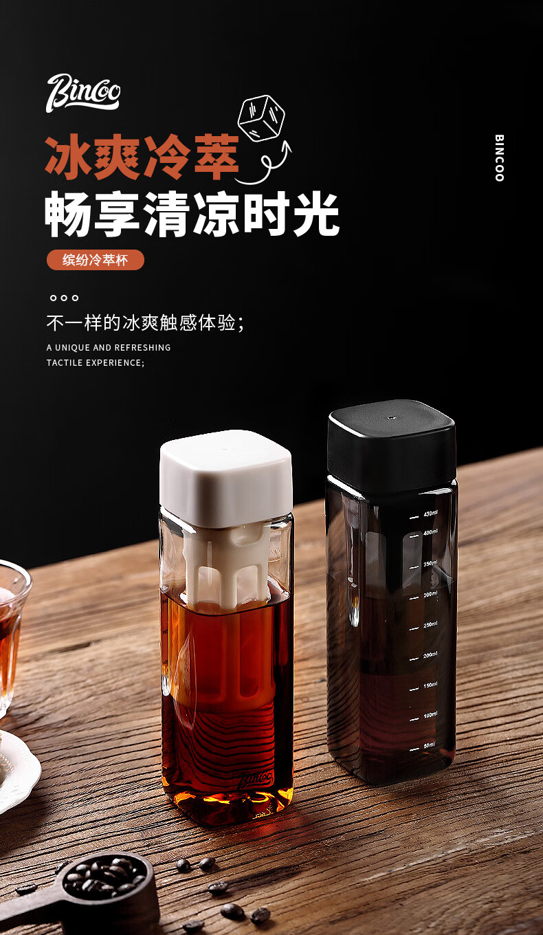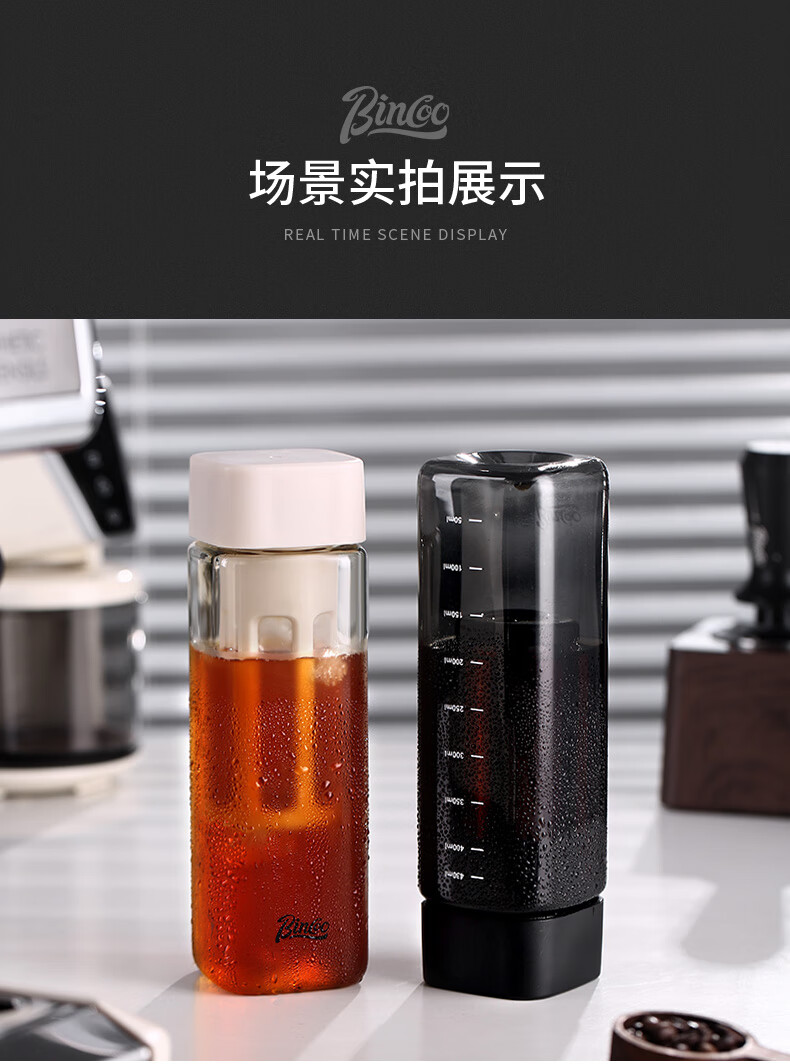 Bincoo Square Cold Brew Coffee Cup Portable Cold Brew Bottle Cold Brew Cup Tritan Water Cup American Cold Brew Black 480ml