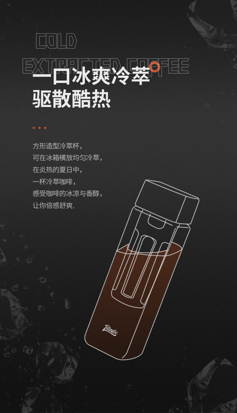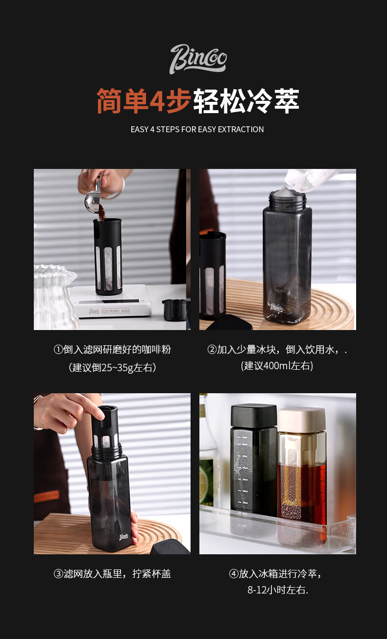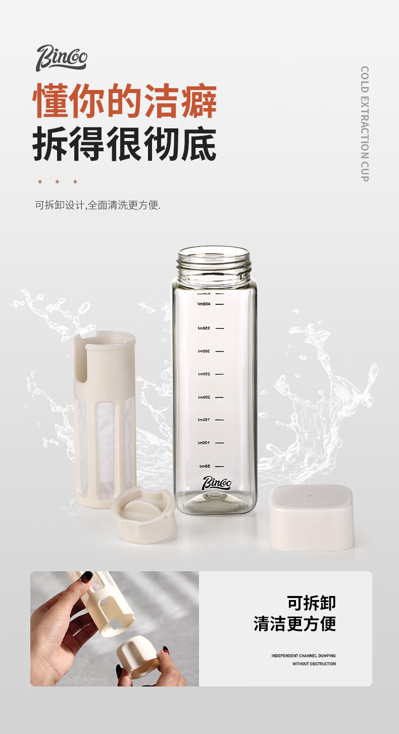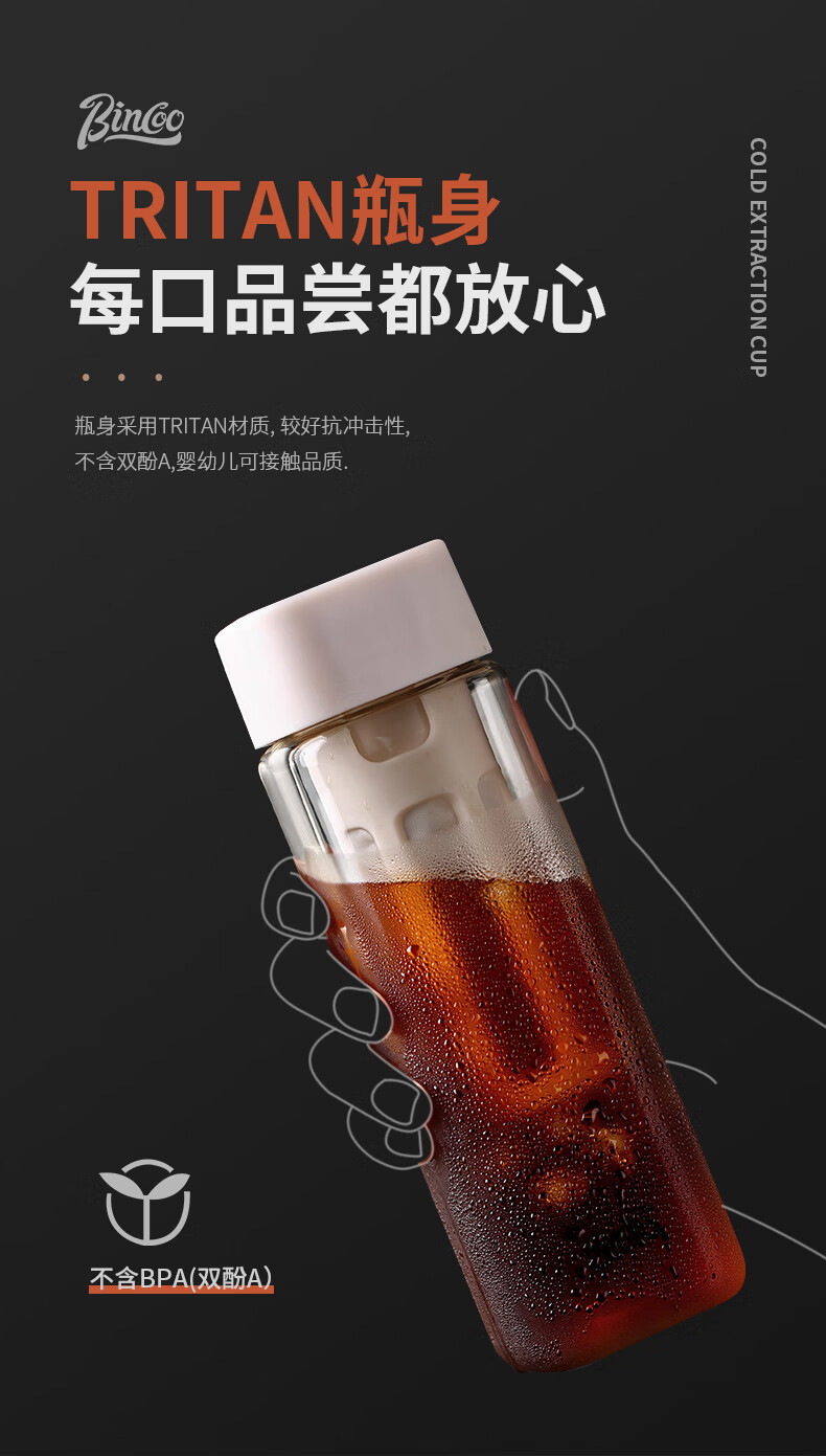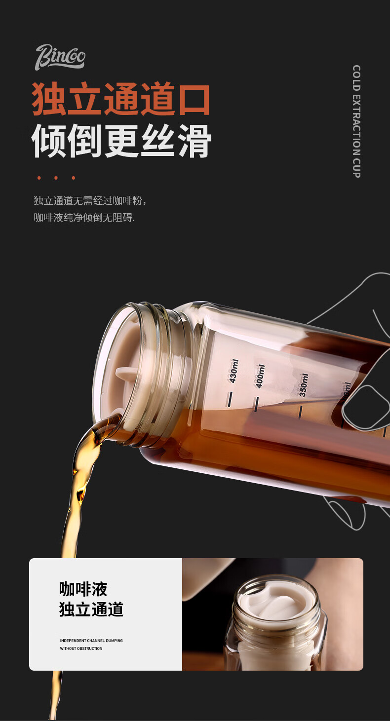 Bincoo Square Cold Brew Coffee Cup Portable Cold Brew Bottle Cold Brew Cup Tritan Water Cup American Cold Brew Black 480ml