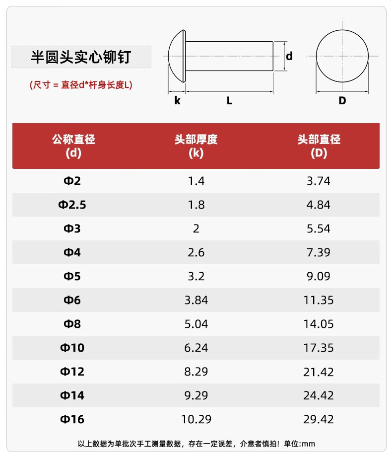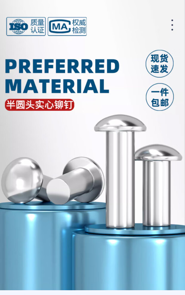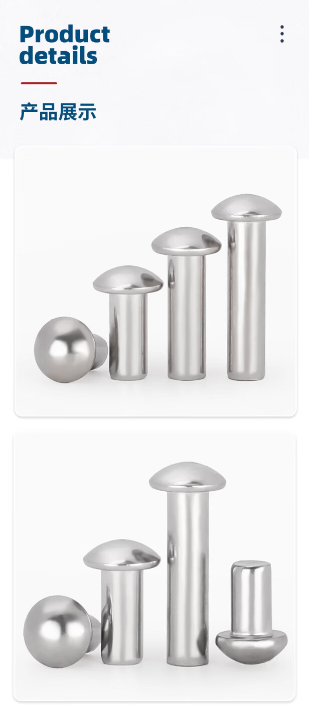 Tianzhuo Hardware GB867 304 stainless steel semi-round head solid rivet round head knock-type MM2M2.5M3M4M5M6M8-M16 M6*10 10 pcs