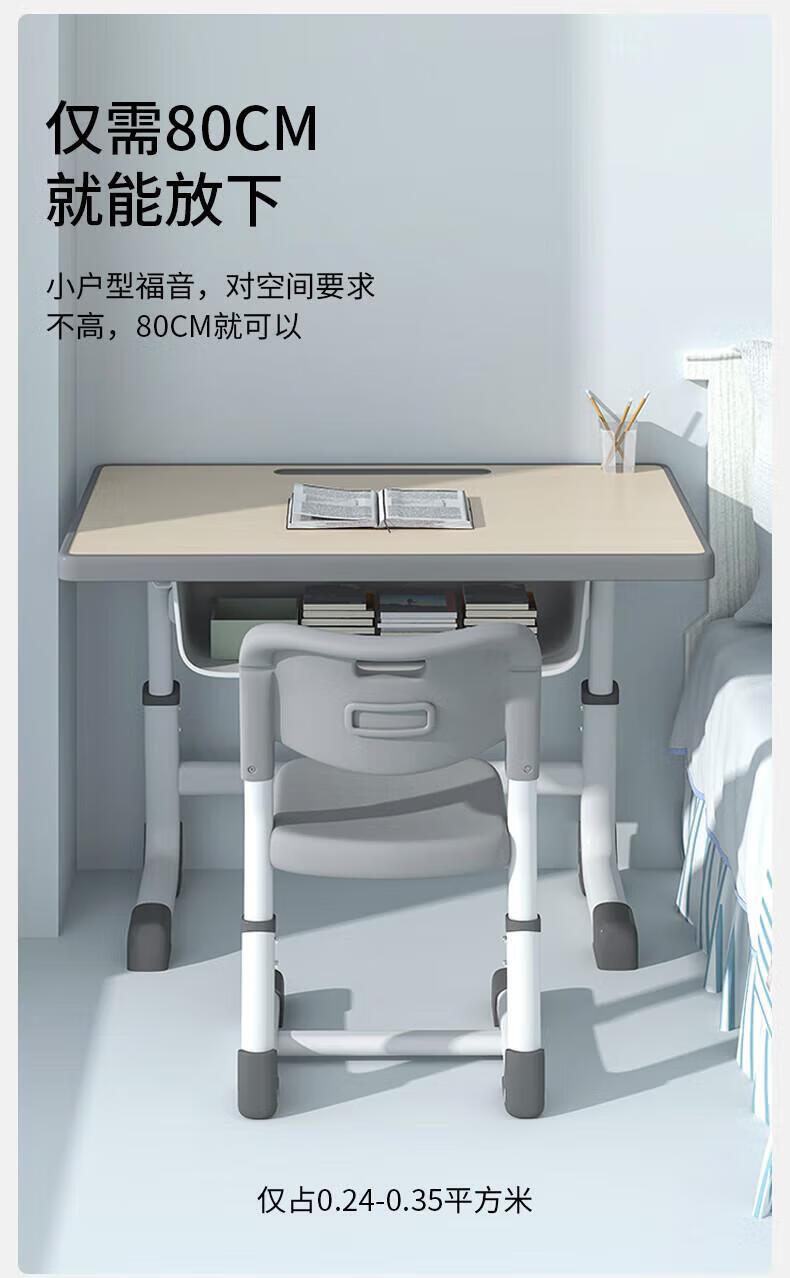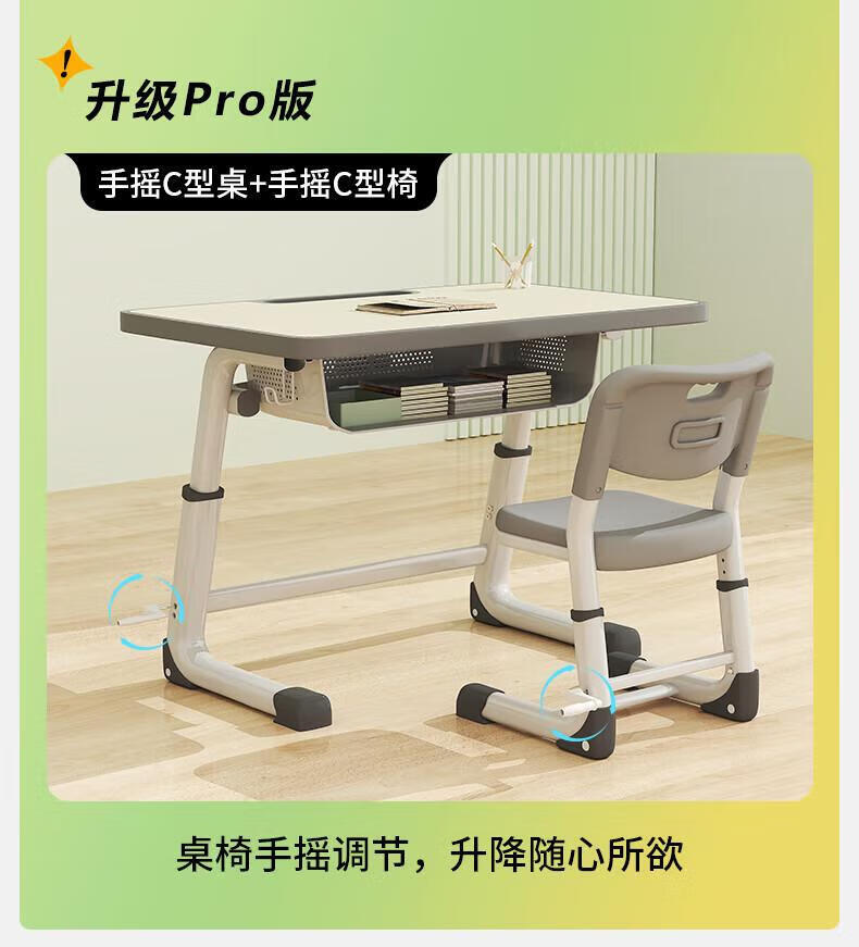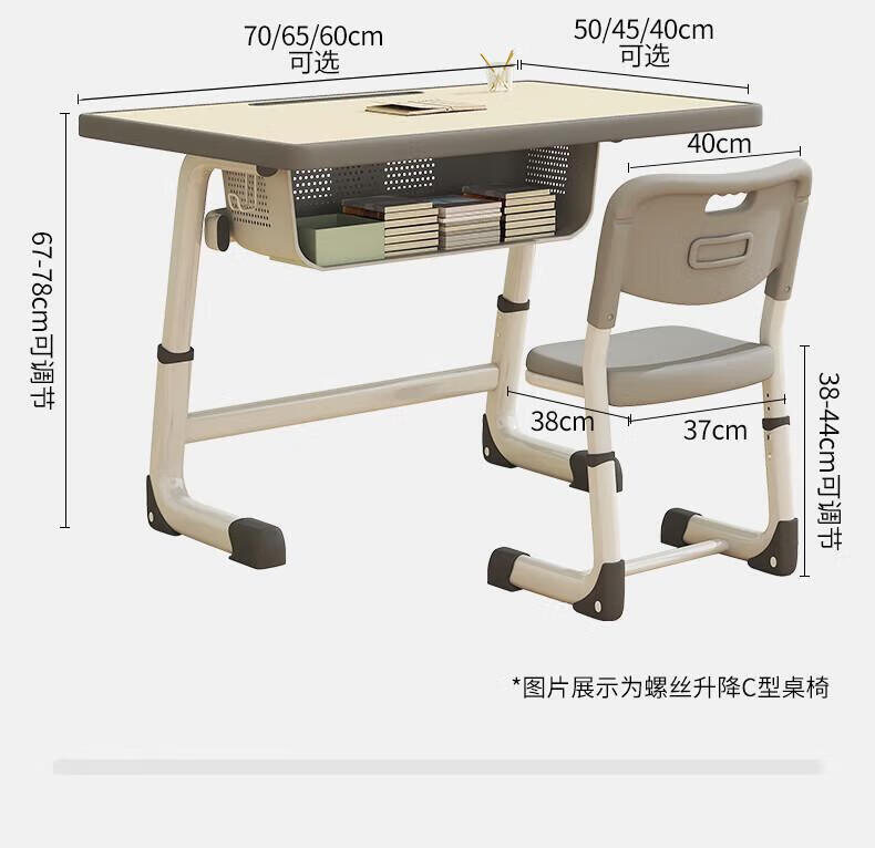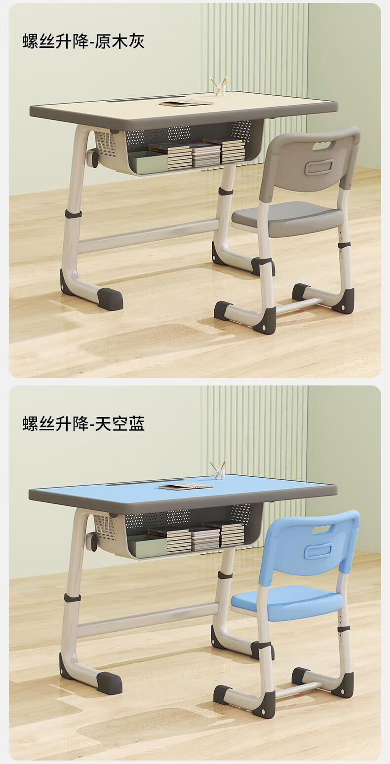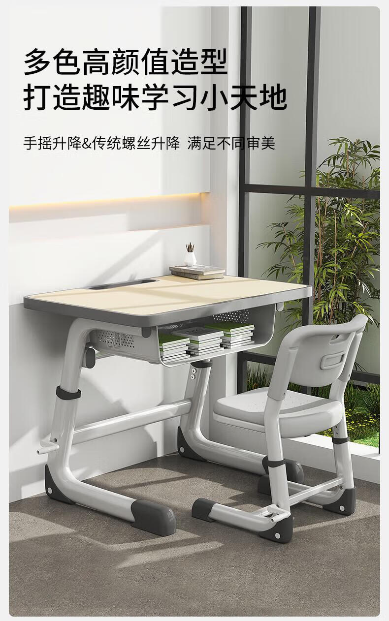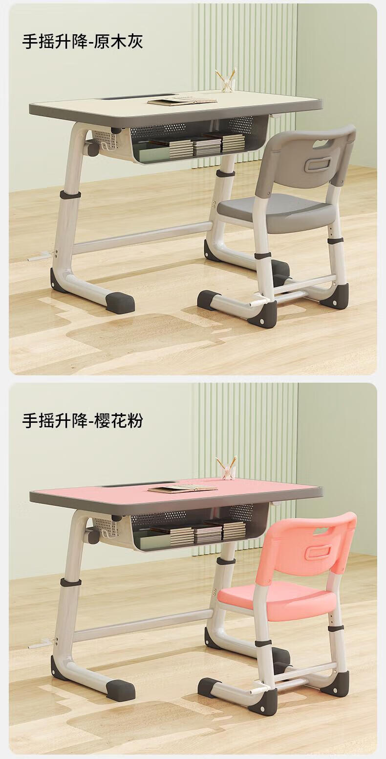 Full of Hope Children's Study Desk and Chair Set Home Liftable Desk 3-18 Primary and Secondary School Students Homework Writing Computer Desk and Chair No Installation/60*40/Hand Lift/Wood Grain Gray Writing Desk