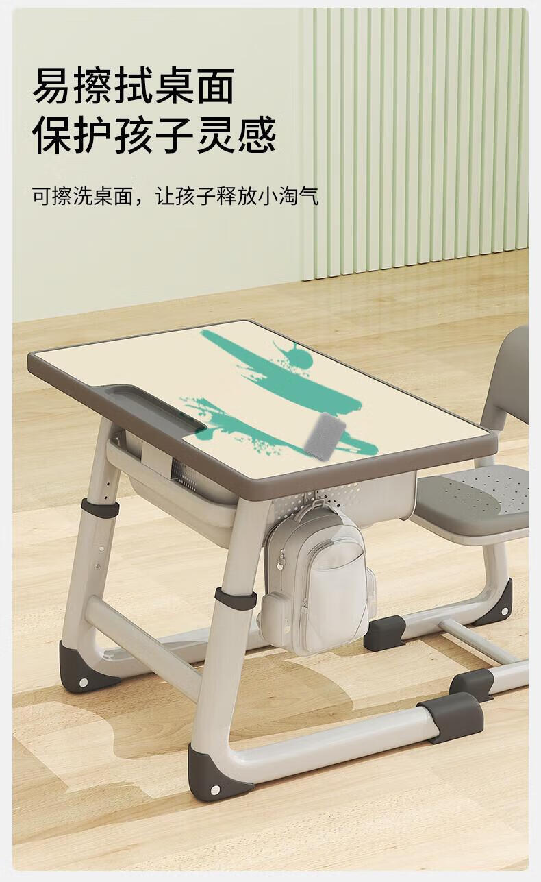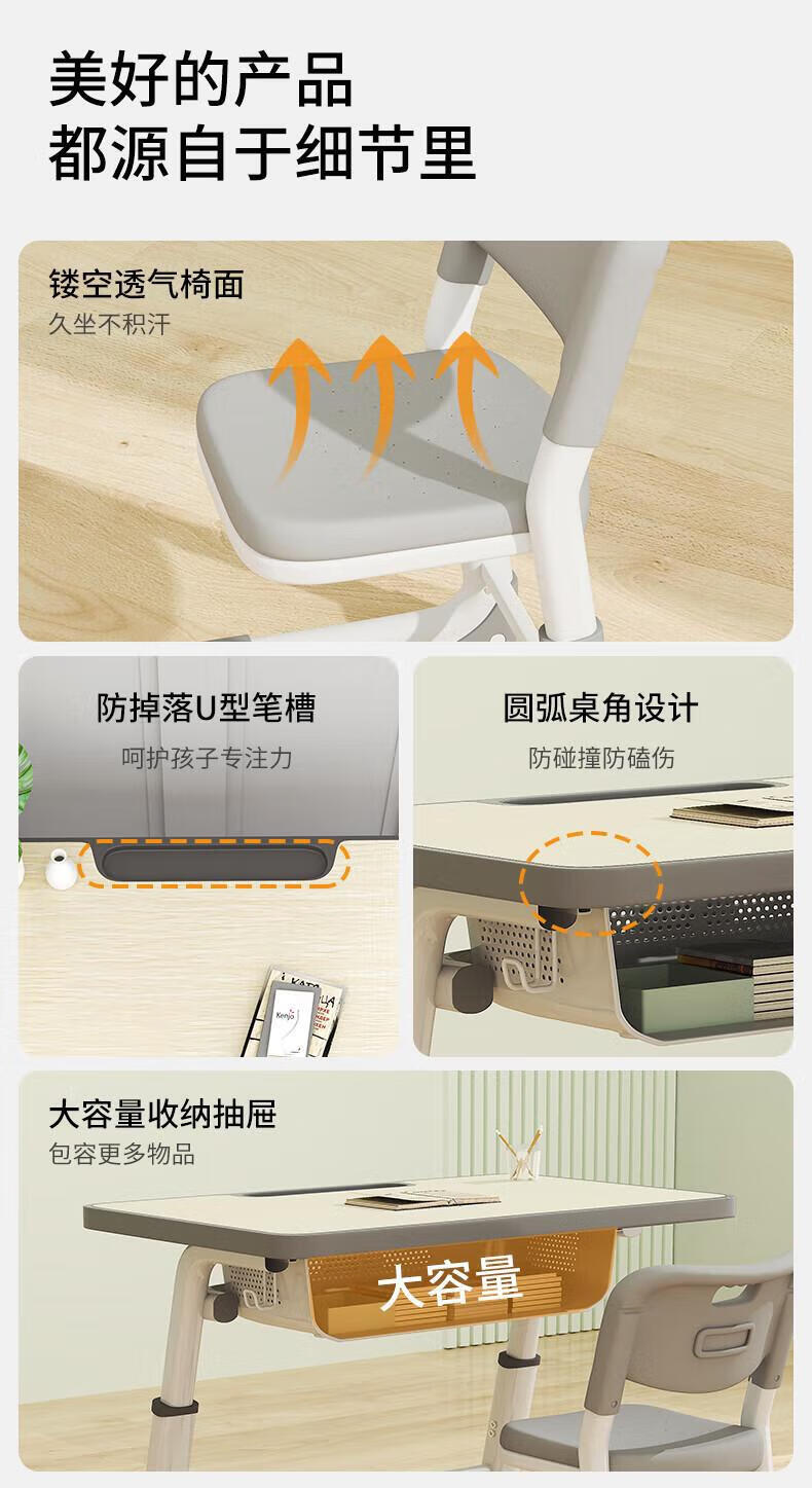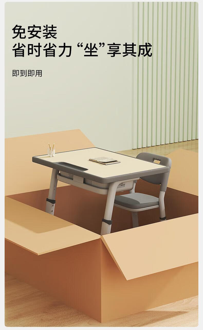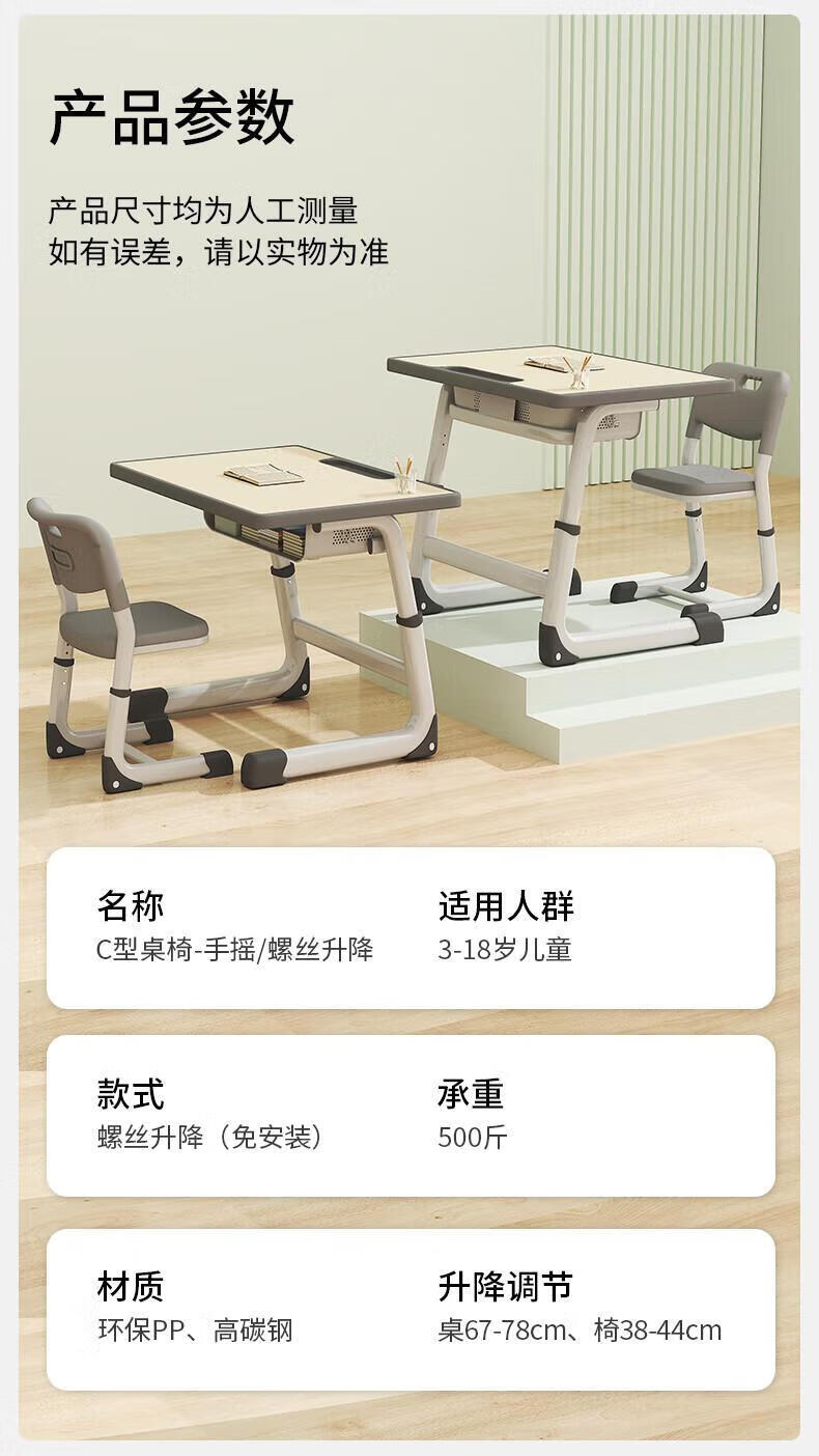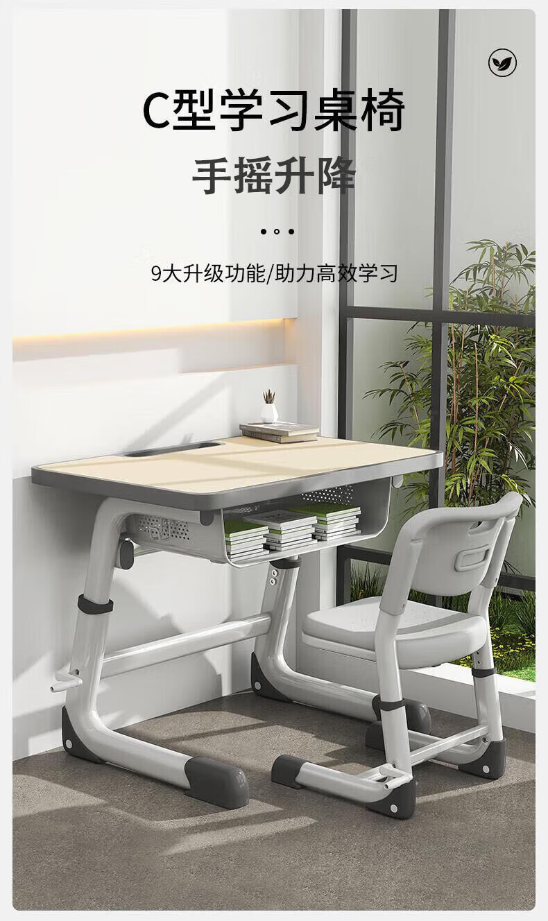 Full of Hope Children's Study Desk and Chair Set Home Liftable Desk 3-18 Primary and Secondary School Students Homework Writing Computer Desk and Chair No Installation/60*40/Hand Lift/Wood Grain Gray Writing Desk