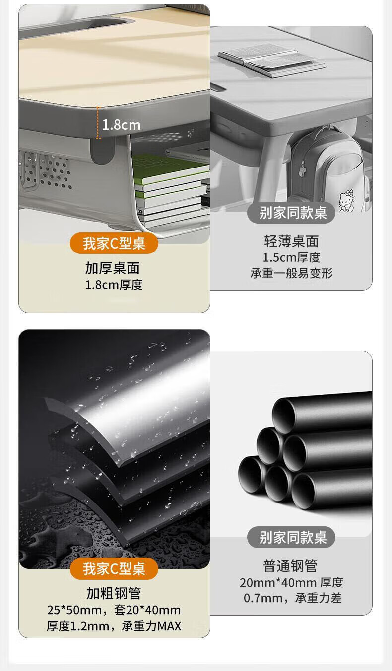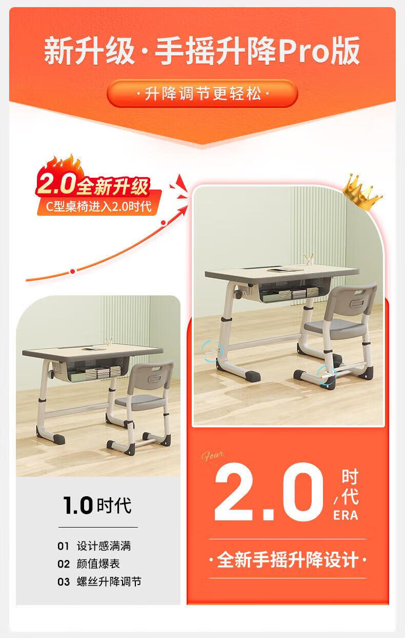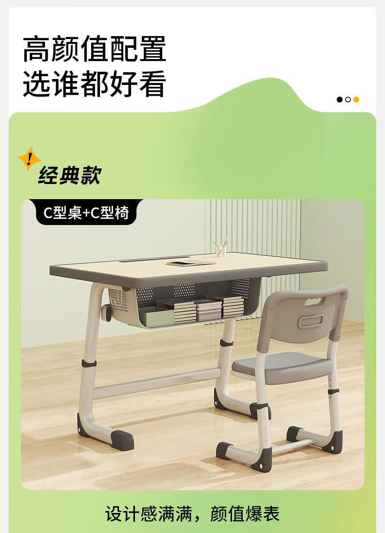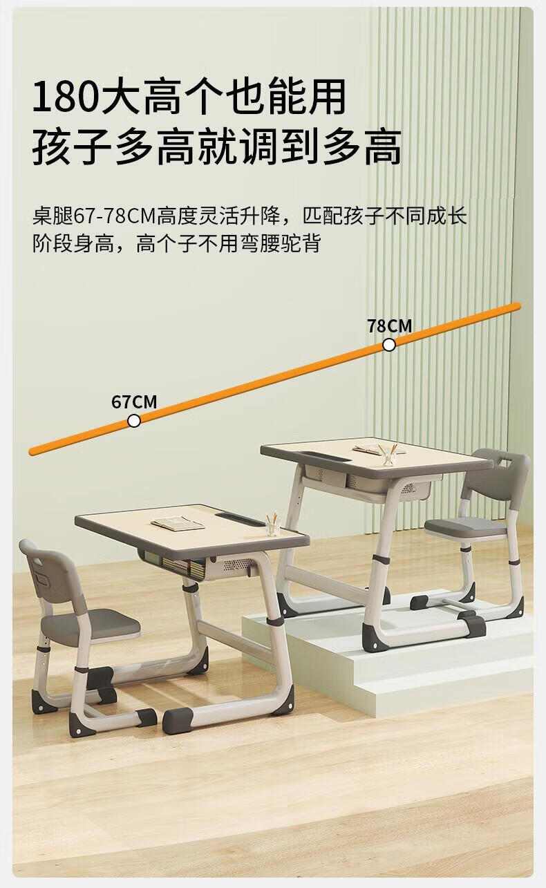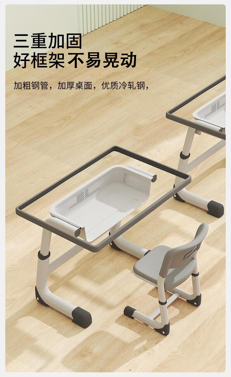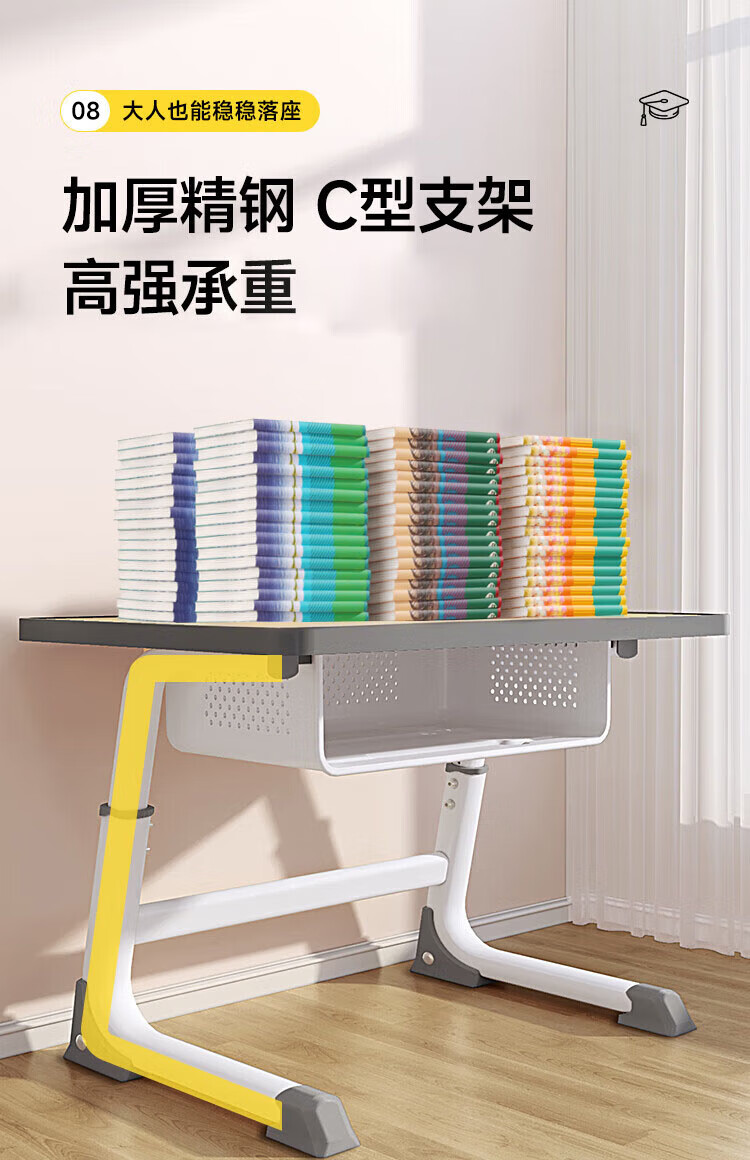 Full of Hope Children's Study Desk and Chair Set Home Liftable Desk 3-18 Primary and Secondary School Students Homework Writing Computer Desk and Chair No Installation/60*40/Hand Lift/Wood Grain Gray Writing Desk