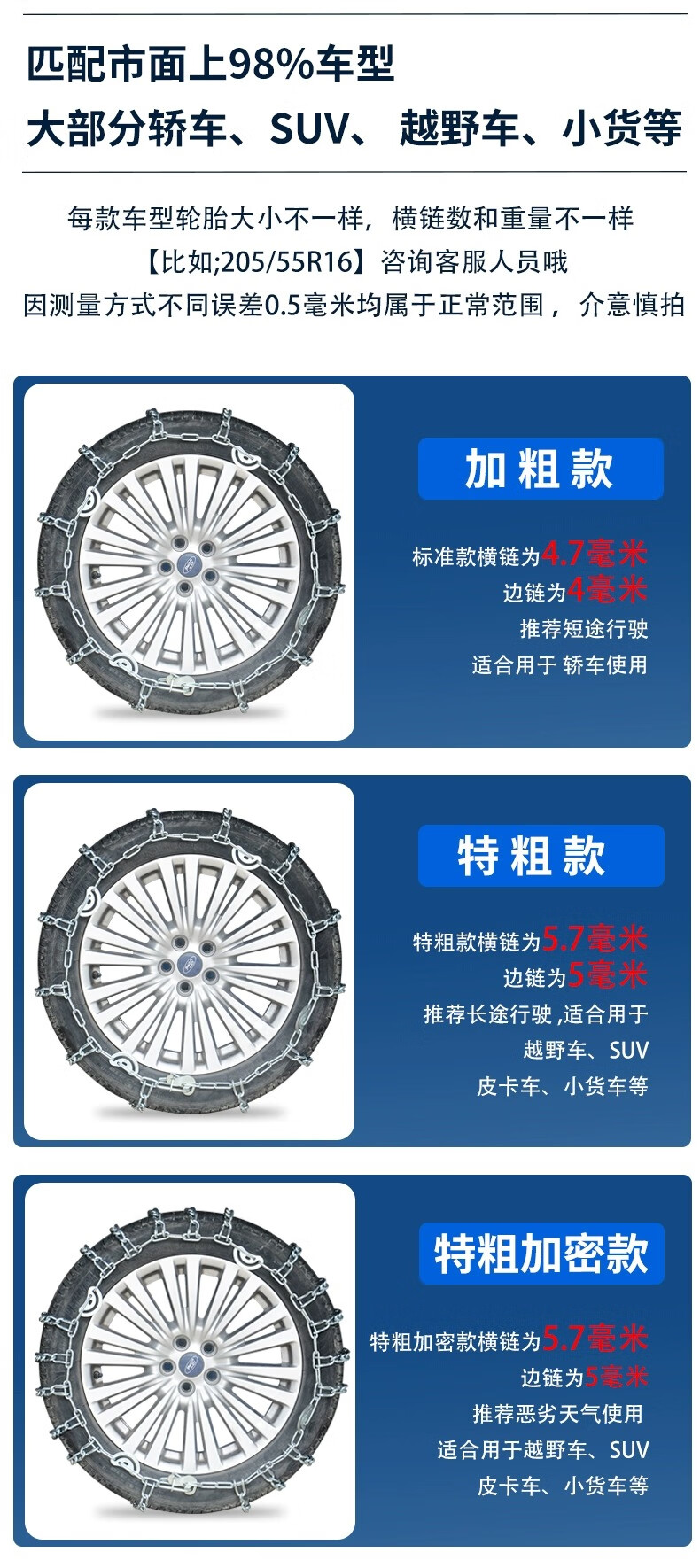 Shubaye automobile anti-skid chain extra thick off-road SUV pickup truck car van tire winter snow universal chain 175 two pieces extra thick / be sure to contact customer service to place an order Contact customer service before purchasing to recommend the corresponding size