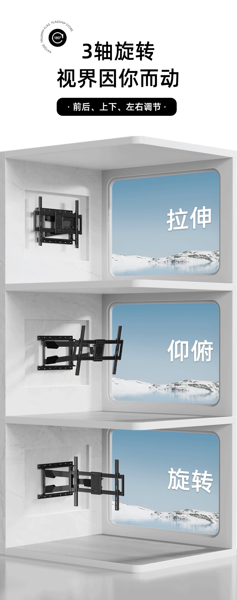 Beishi thickened universal TV rack rotating telescopic folding wall-mounted wall-mounted TV rack bracket universal TCL Thunderbird Hisense Skyworth TCL and other 556575 inches 40-100 inches 90 inches left and right 90 rotation