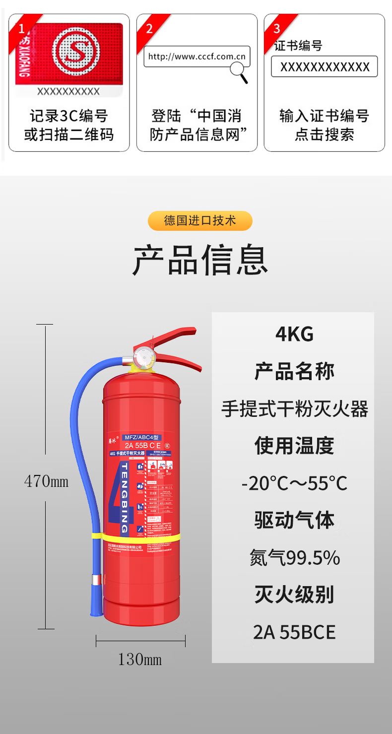 Tengbing fire extinguisher new national standard portable dry powder 1/2/3/4/5/6/8 kg commercial household vehicle national 3C fire protection certification MFZ/ABC4 4kg dry powder fire extinguisher home commercial