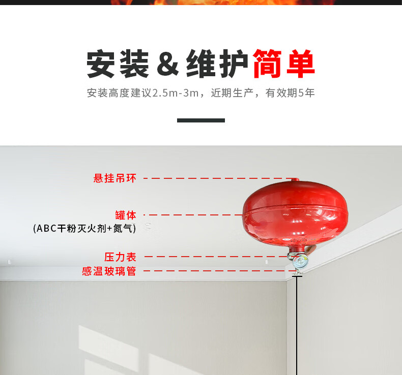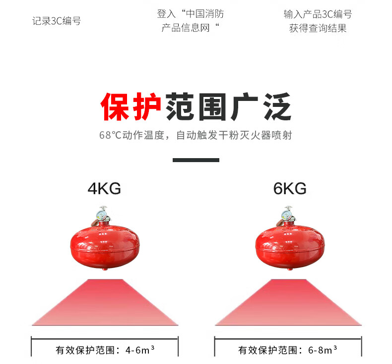 Ren'an hanging dry powder fire extinguisher 68 temperature sensing automatic fire extinguishing device commercial hoisting fire extinguisher fire equipment six kilogram hanging fire extinguisher 68 degrees