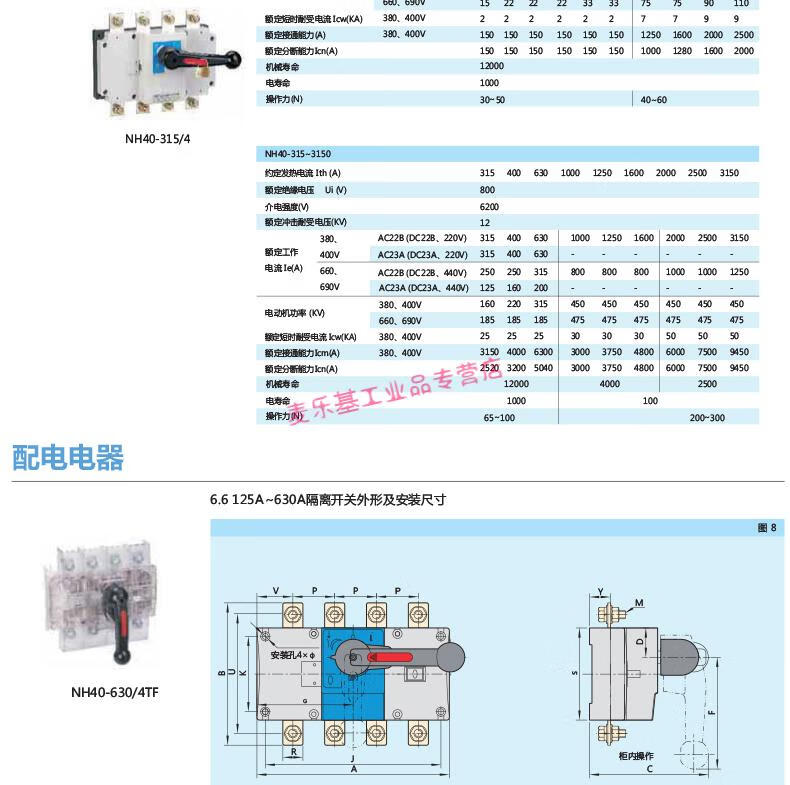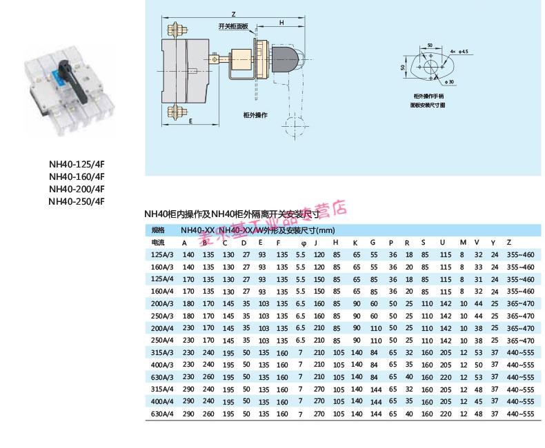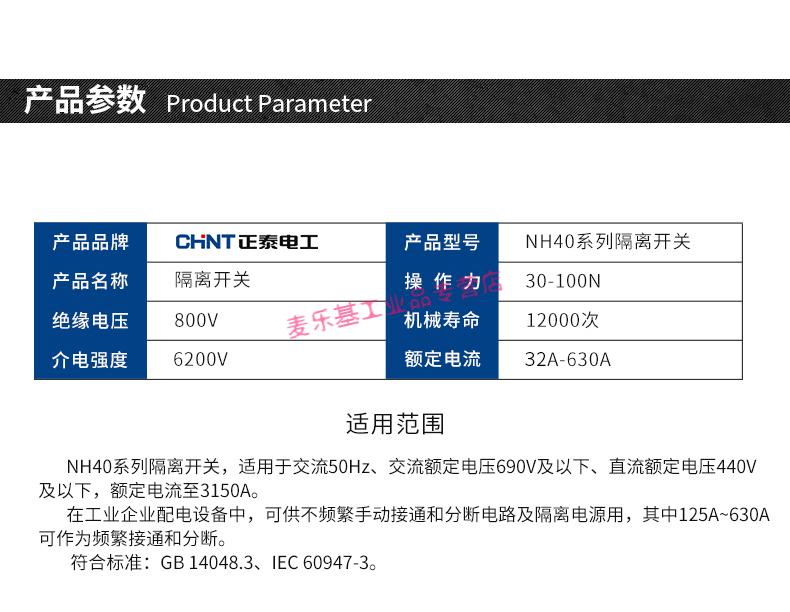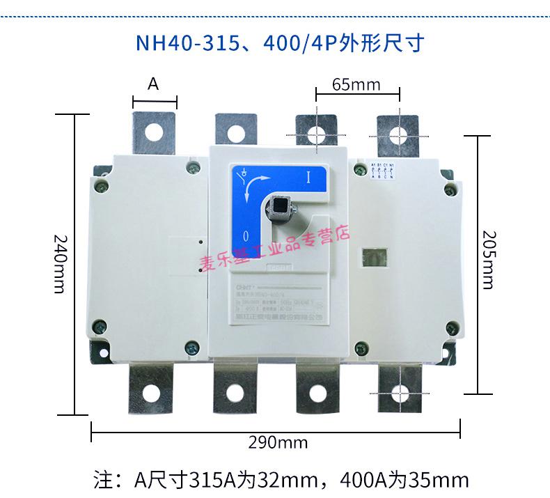Customized applicable isolation switch transfer switch single throw front operation 4P NH40 250A400A 3P 630A